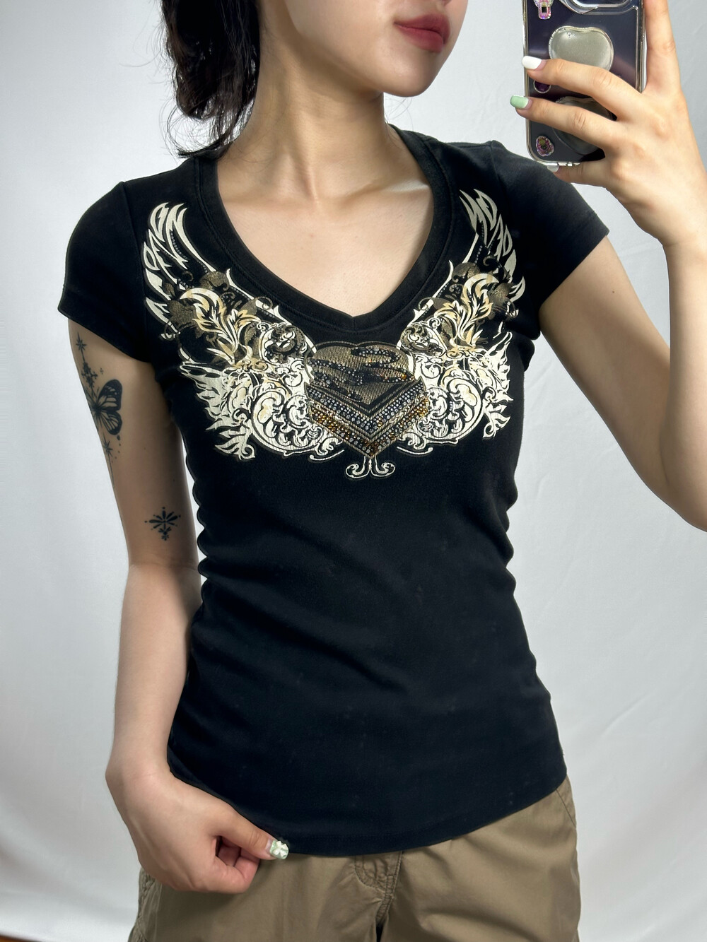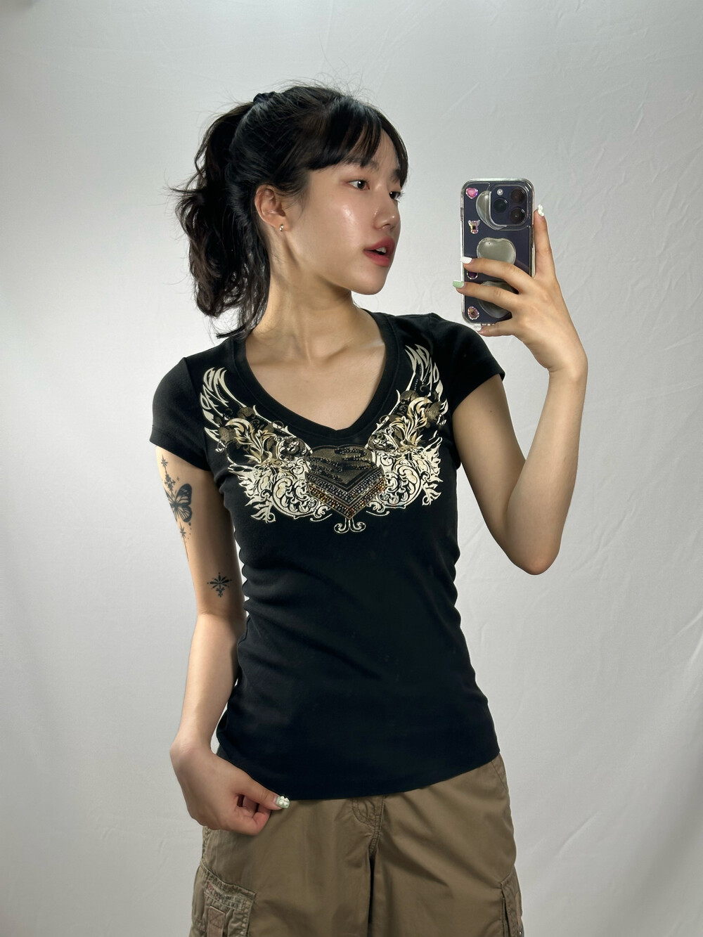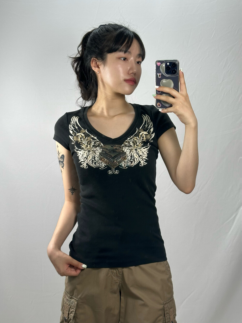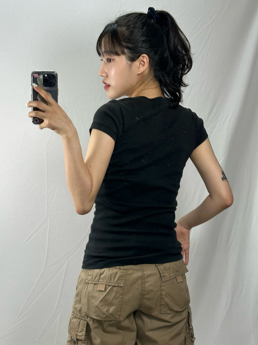 •쫀쫀한 원단감이 상체라인을 잡아줘서 더욱 슬림해보이고 짧은 소매가 키치하니 넘 예쁘죠! 완전 빈티지 자체🖤