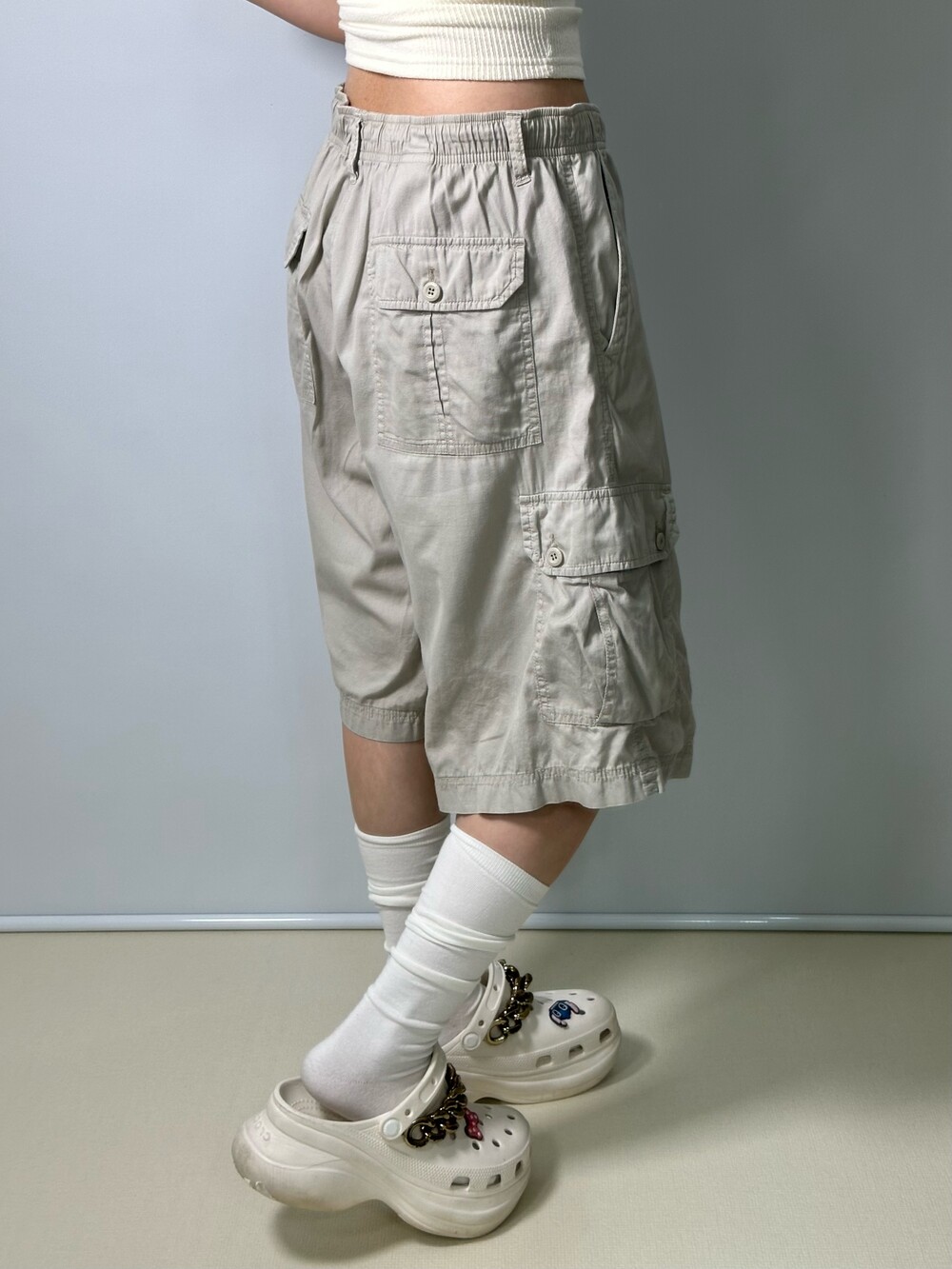 •베이지톤의 루즈핏 카고 반바지에요! 허리에 끈이 내장되어 있어 편안하게 착용가능하셔요ㅎㅎ 원단도 부드러워서 손도 엄청 자주갈거에요? ㅎㅎ!