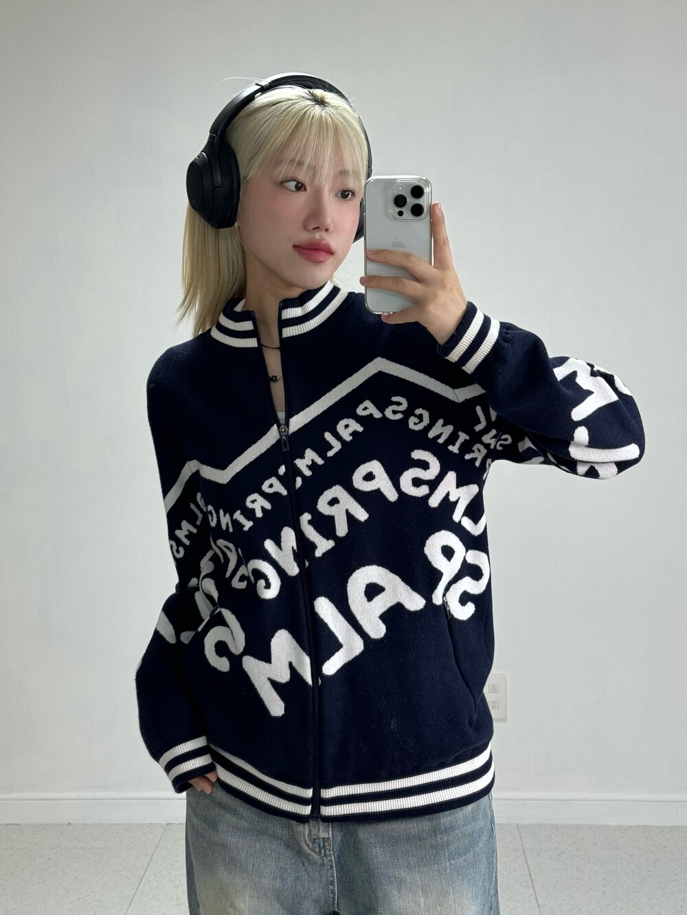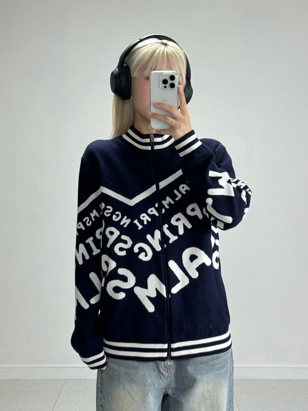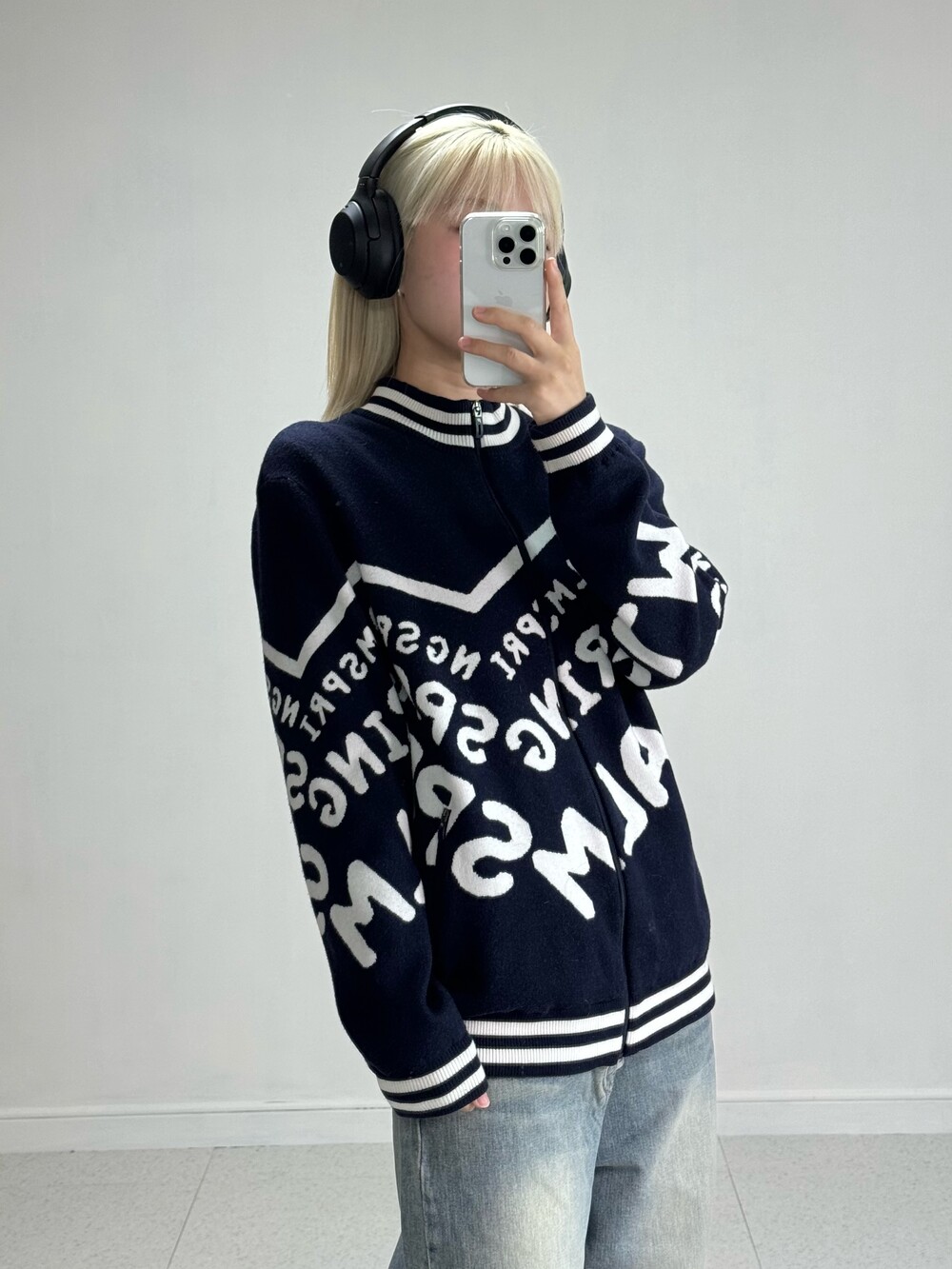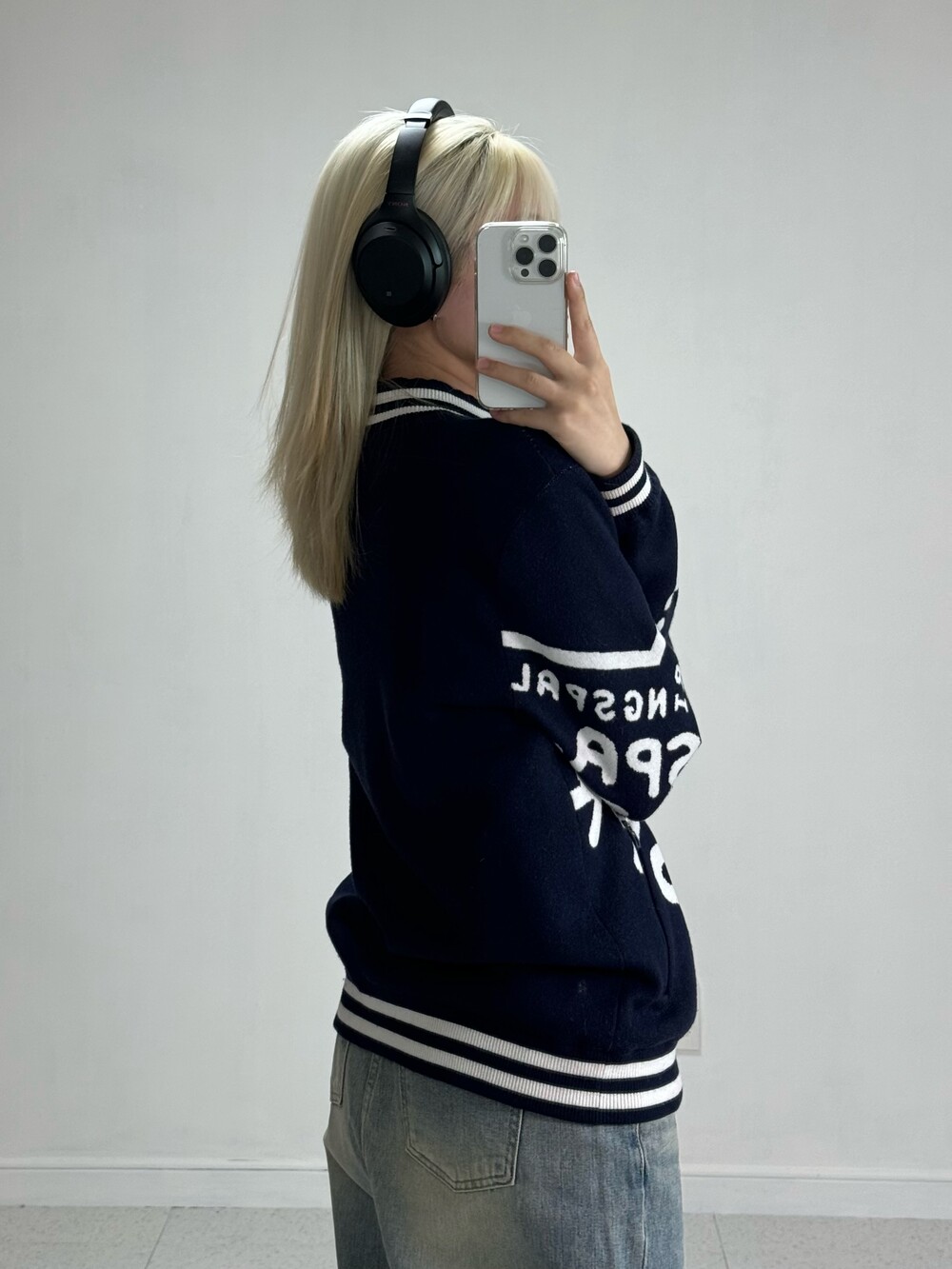 •이건 판매 안되면 제가 입으려구요.. 그만큼 제 사심 담아 가지고 온 아이템입니다ㅎㅎ 네이비 컬러에 알파벳 디자인이 들어가서 너무 귀여운거있죠ㅠㅠ 살짝 열어서 입어도 예쁘구 끝까지 올려 입으면 더 예쁜 제품🖤