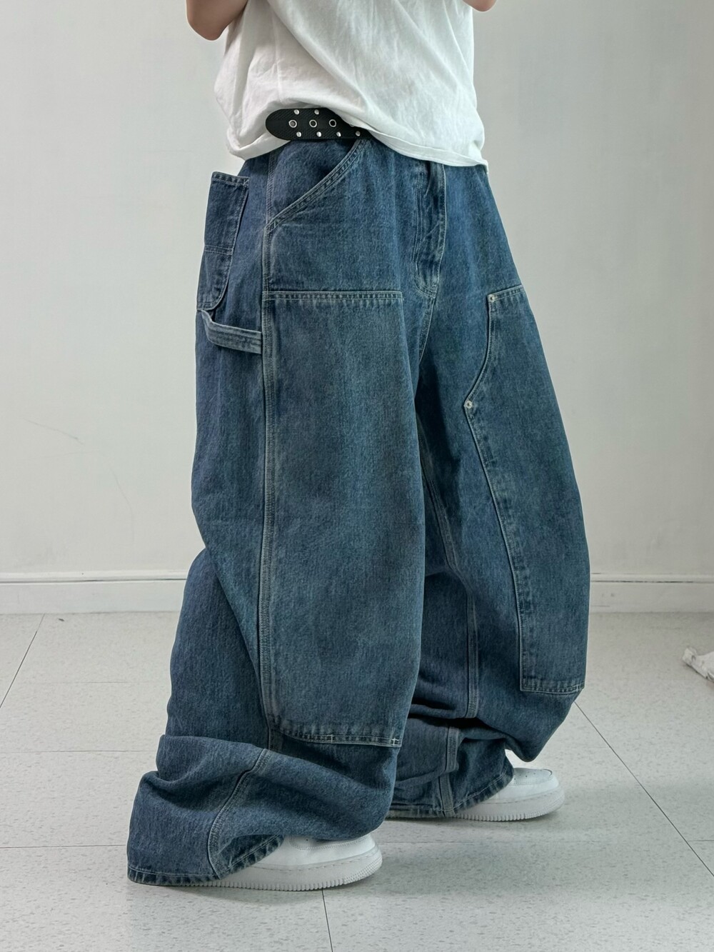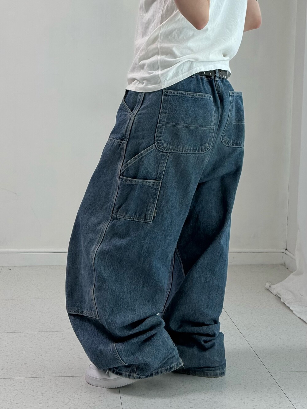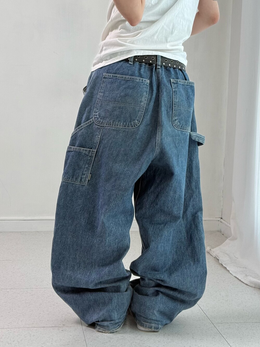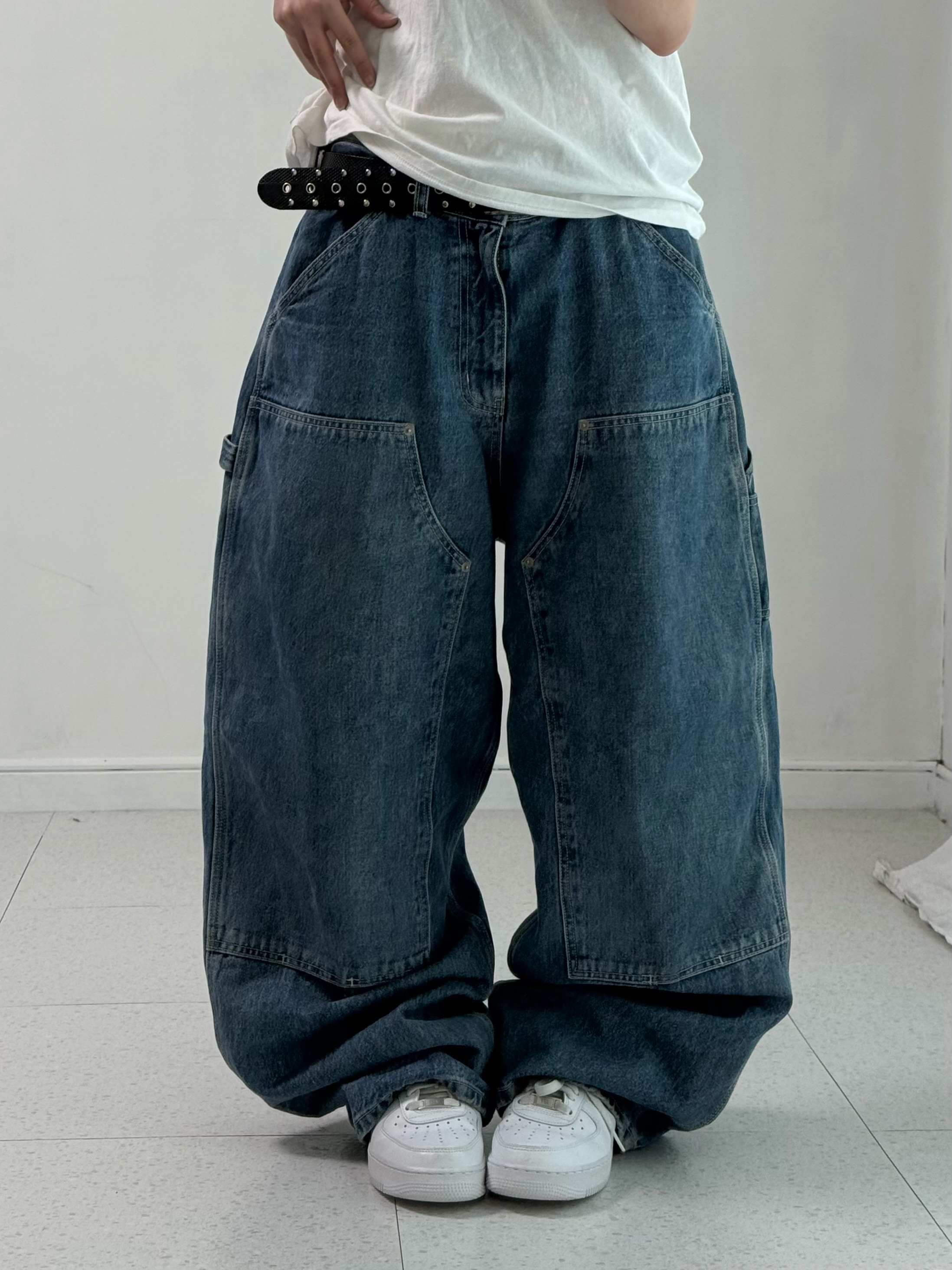 •묵직하게 떨어지는 실루엣이 멋드러지는 더블니 카펜터 입니다. 골반에 툭 걸쳐 입었을때 완전 굿💖