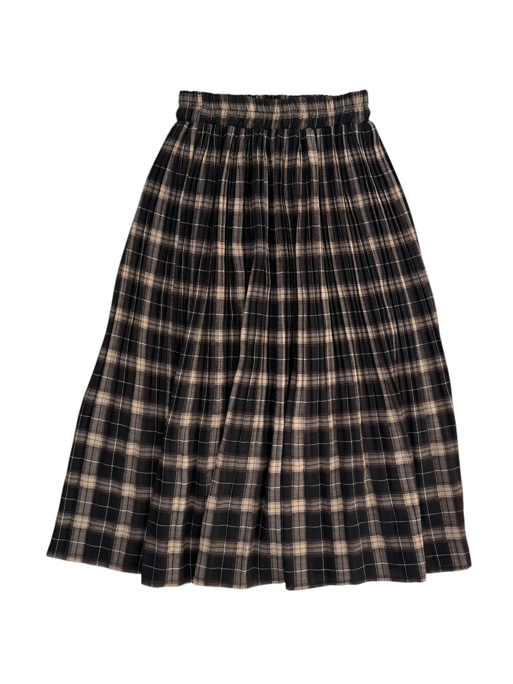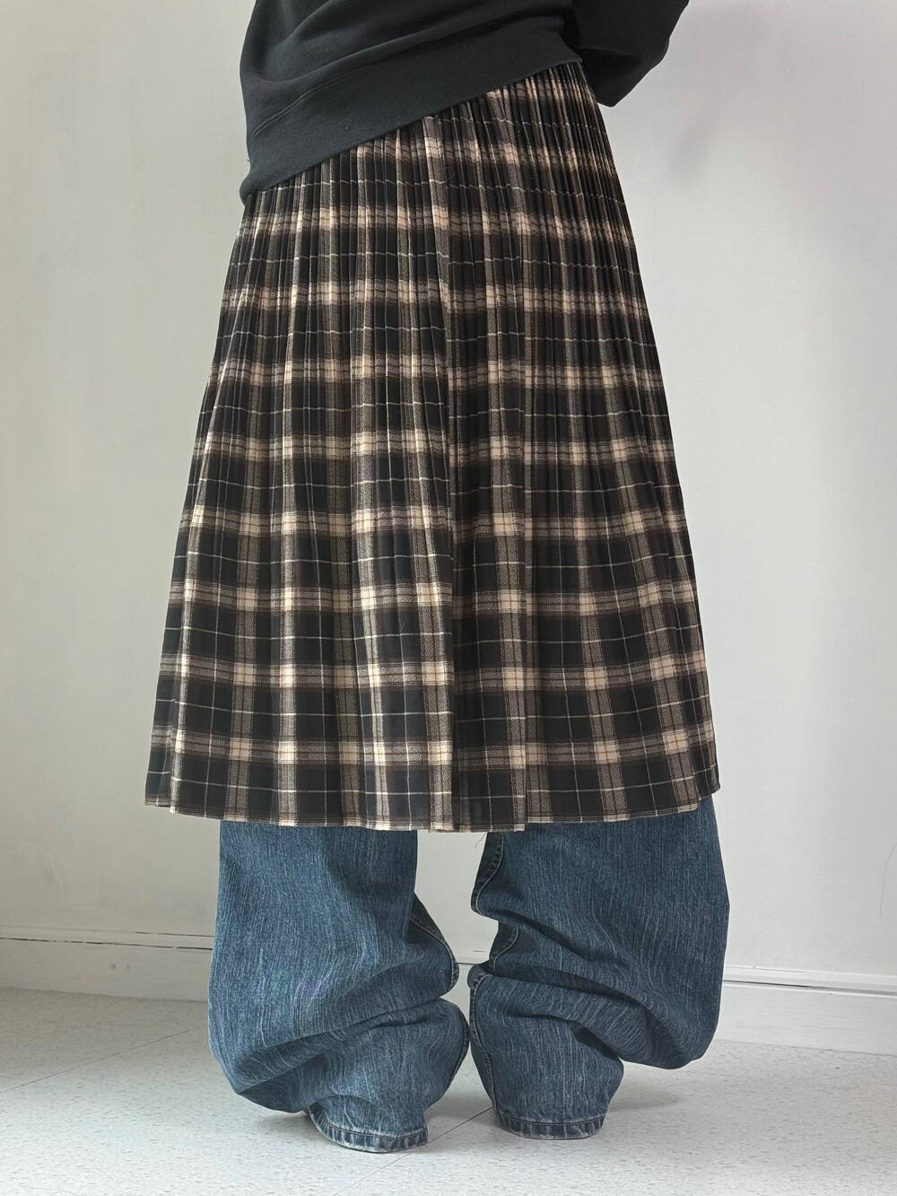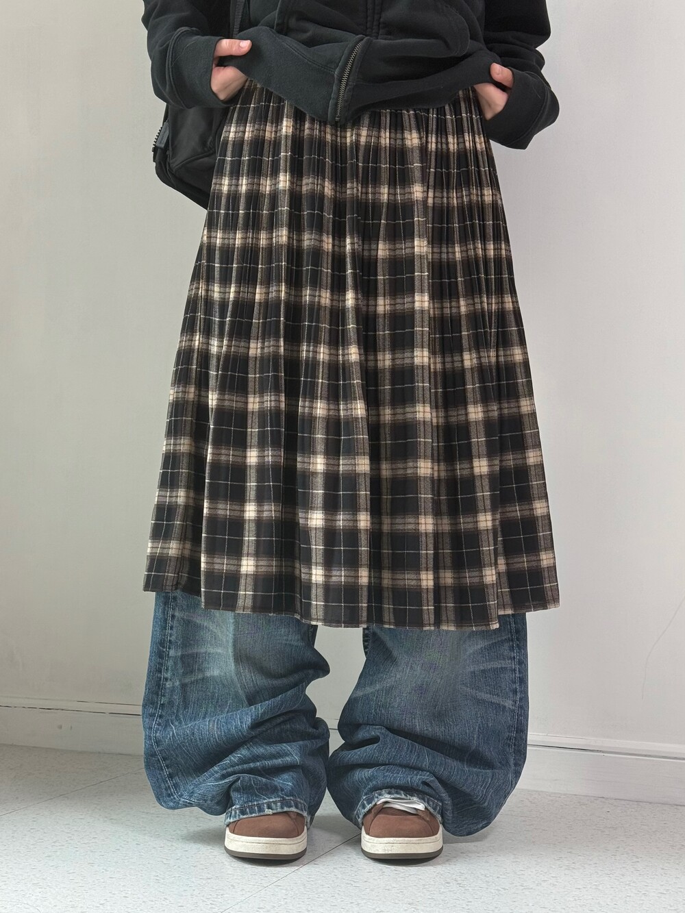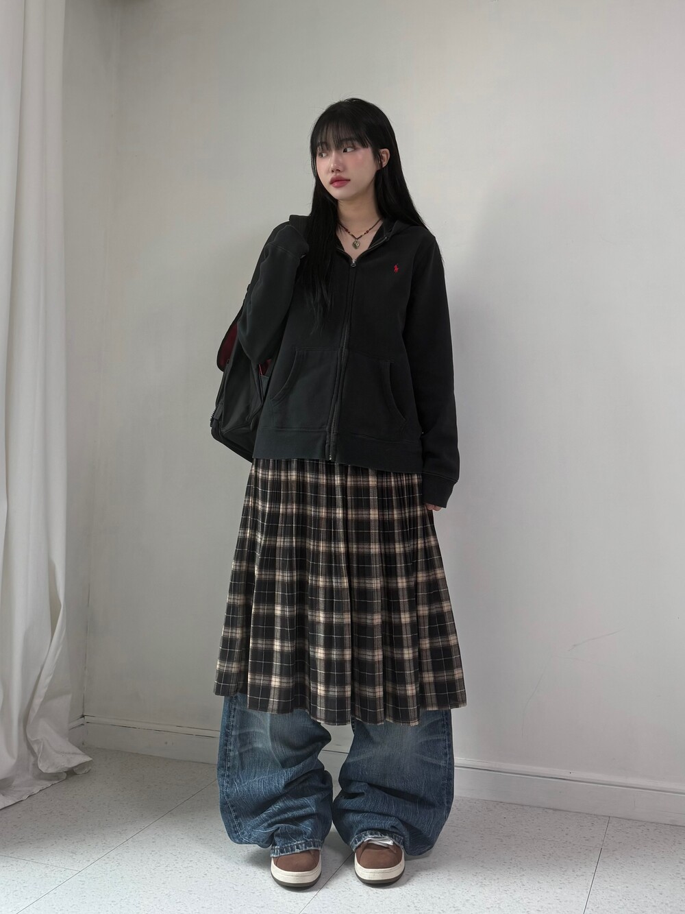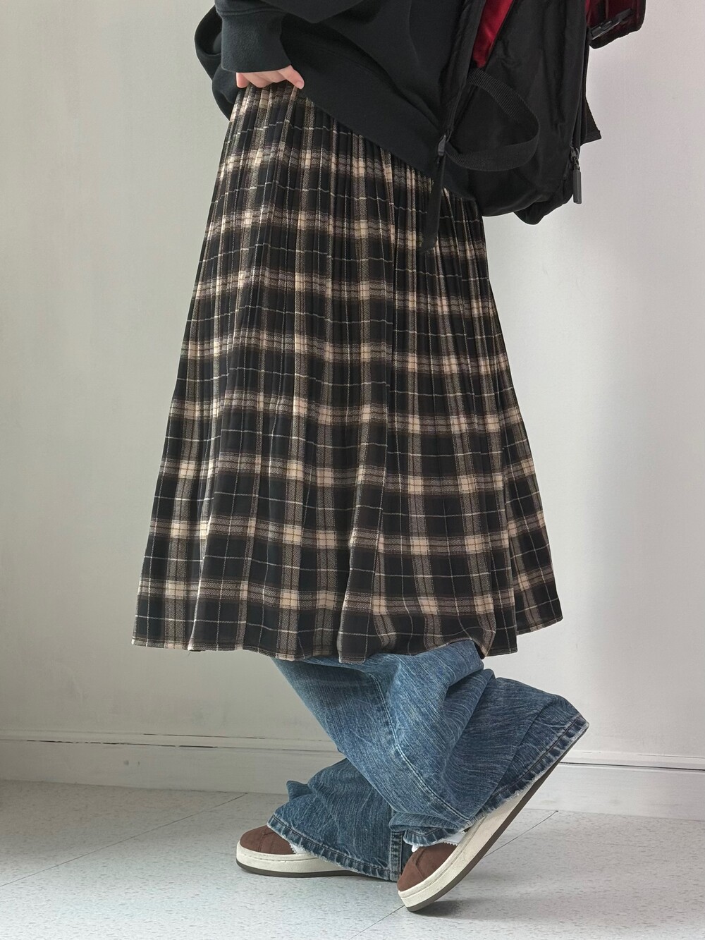 •전체적으로 브라운과 네이비 톤이 어우러져있는 체크 스커트에요! 허리가 밴딩이라 굉장히 편안하고 추울때는 레이어드로 입어주시고 여름에는 단독으로 입어주시기 좋은 아이템이에요🖤