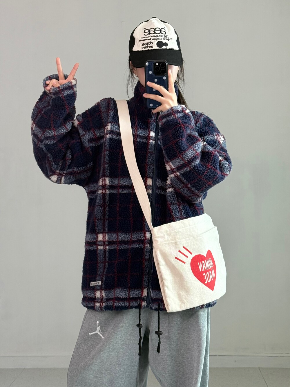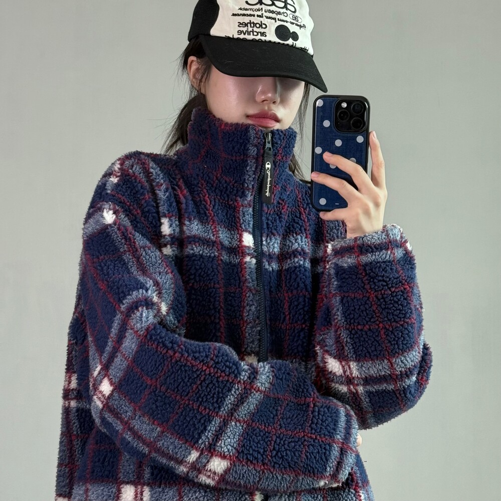 •네이비 체크패턴 챔피온 후리스 입니다! 아방하게 귀엽게 입어주시기 좋아요ㅎㅎ 안감이 누빔이라 완전 따수워버려