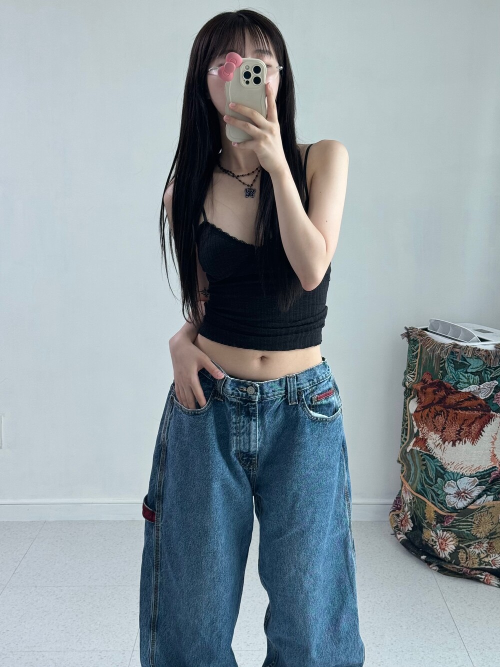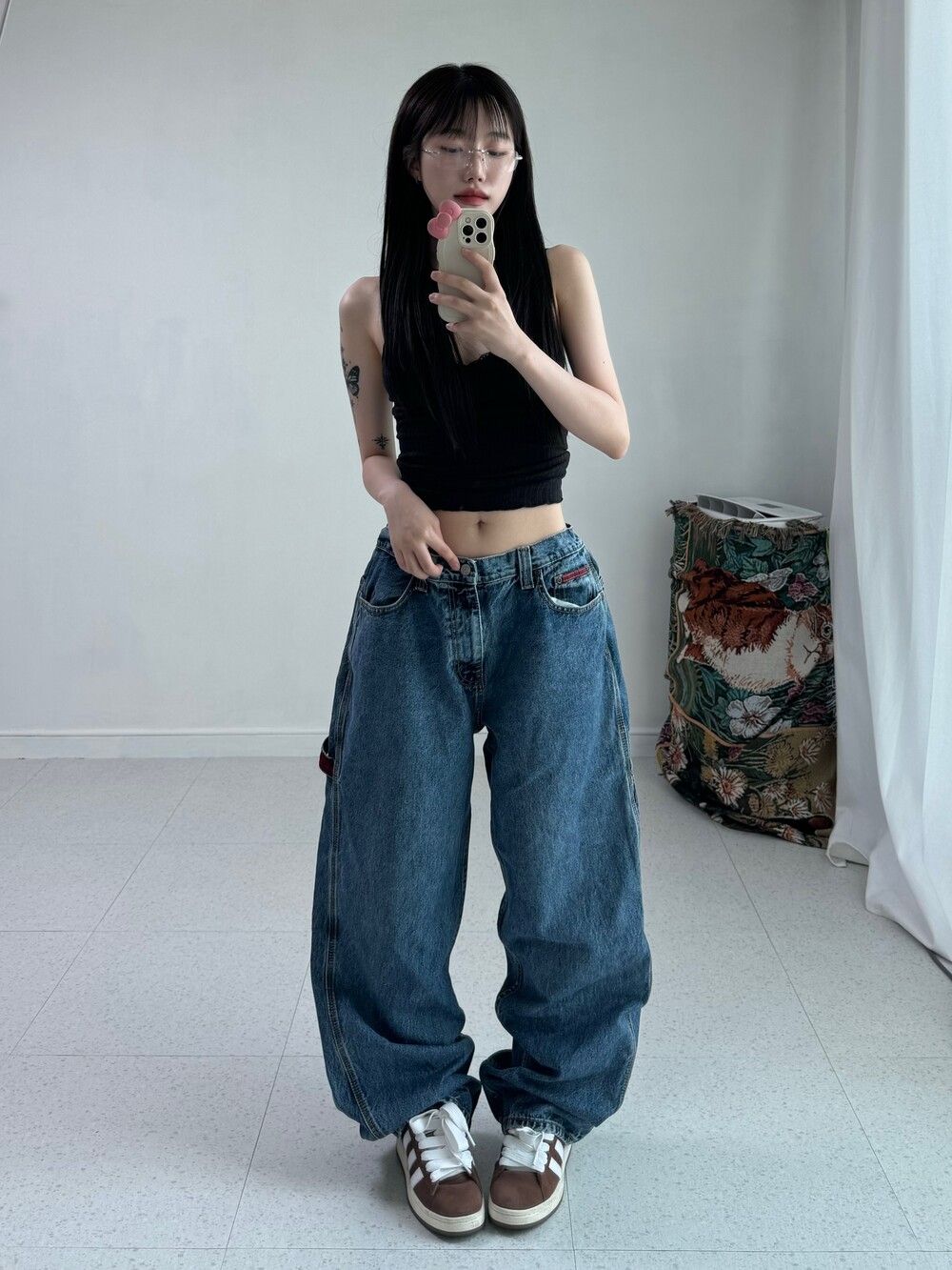 •입자마자 댄싱머신이되.. 전체적으로 아방묵직한 핏에 밑단이 넓지 않아 신발위에 스윽 안착되어 더 마음에 들었던 팬츠에요! 특히 카펜터 디자인과 엉덩이 디자인이 넘 귀엽지요❤️