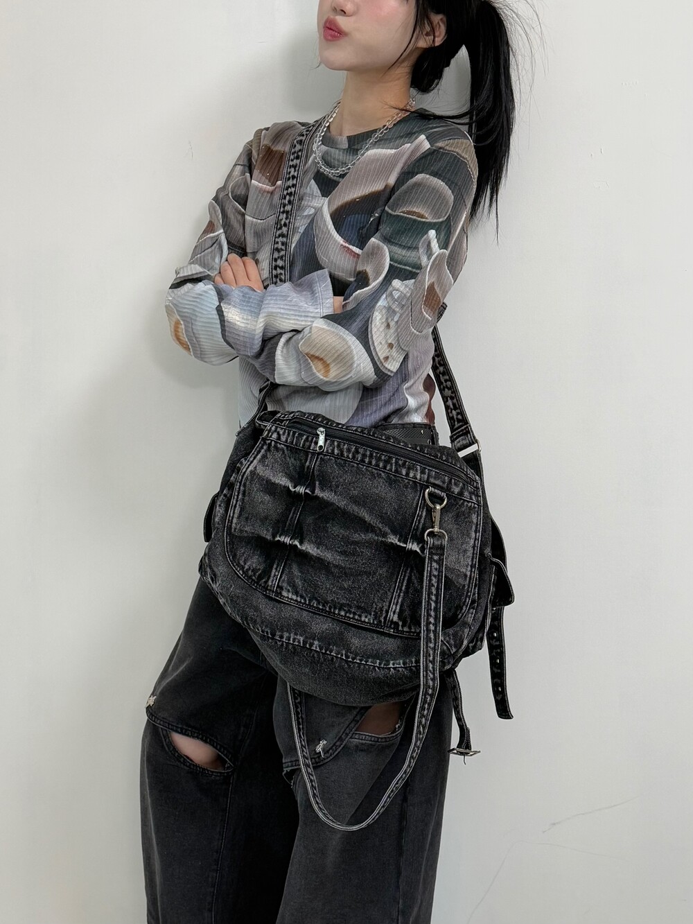 문의 정말 많았던 릴스 속 크로스백! 상태는 완전 A급 이구요, 힙하게 착용해주시면 간zi작살 ㅋㅋ 아시져 막이래