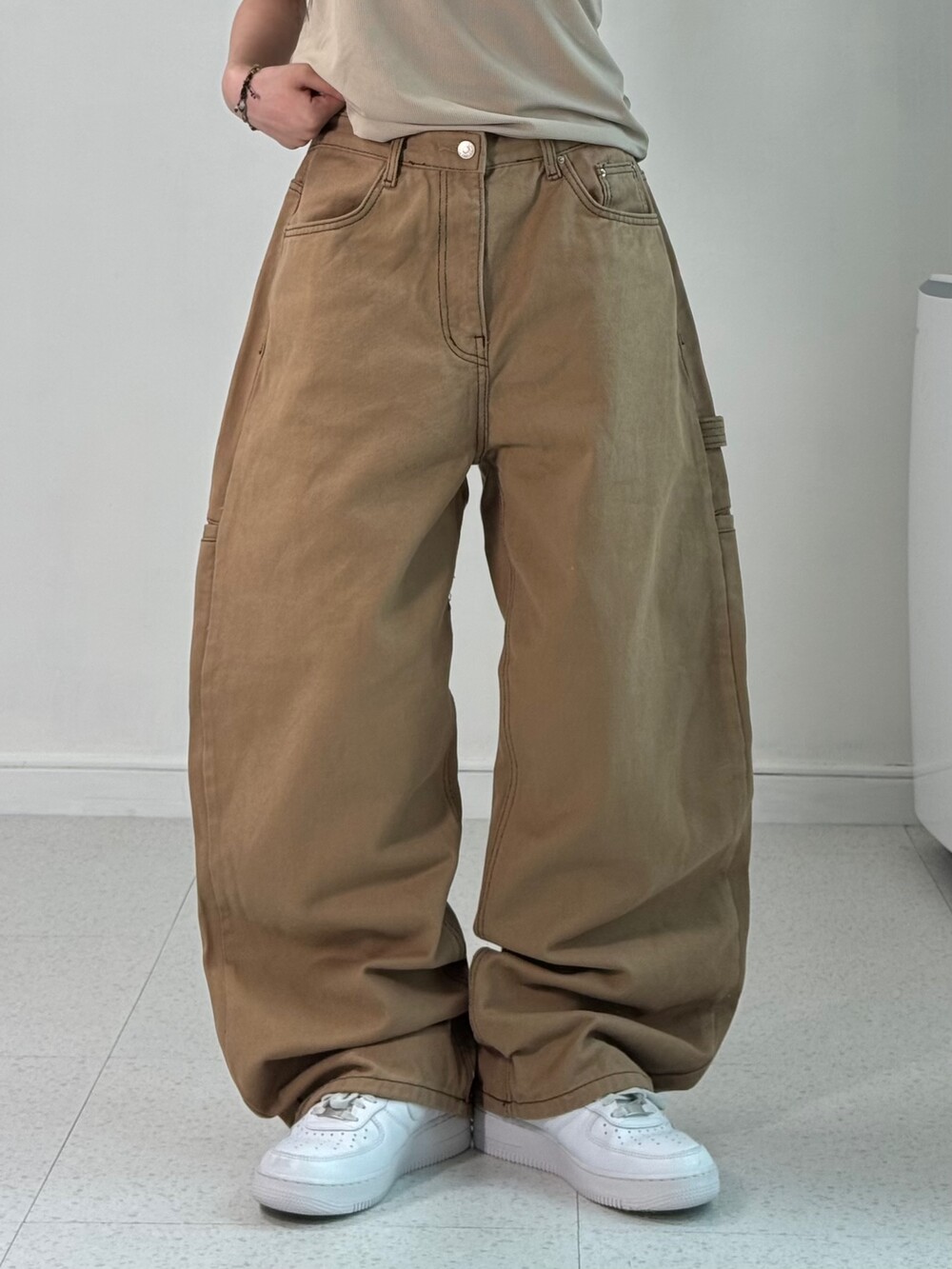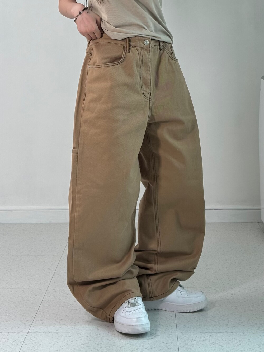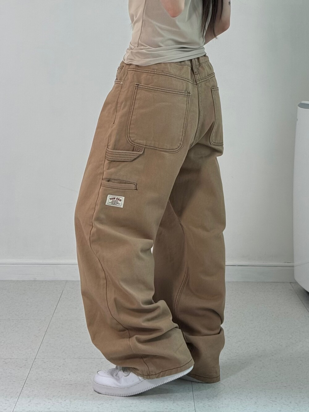 •와이드 루즈 묵직핏! 저희가 제일 좋아하는핏 아닌가요>,< 앞에는 무난한듯 심심해보이지만 카펜터 디테일이 짜란 ㅎㅎ 사계절 내내 입어주시기 좋은 고런 만능템 이랍니다!
