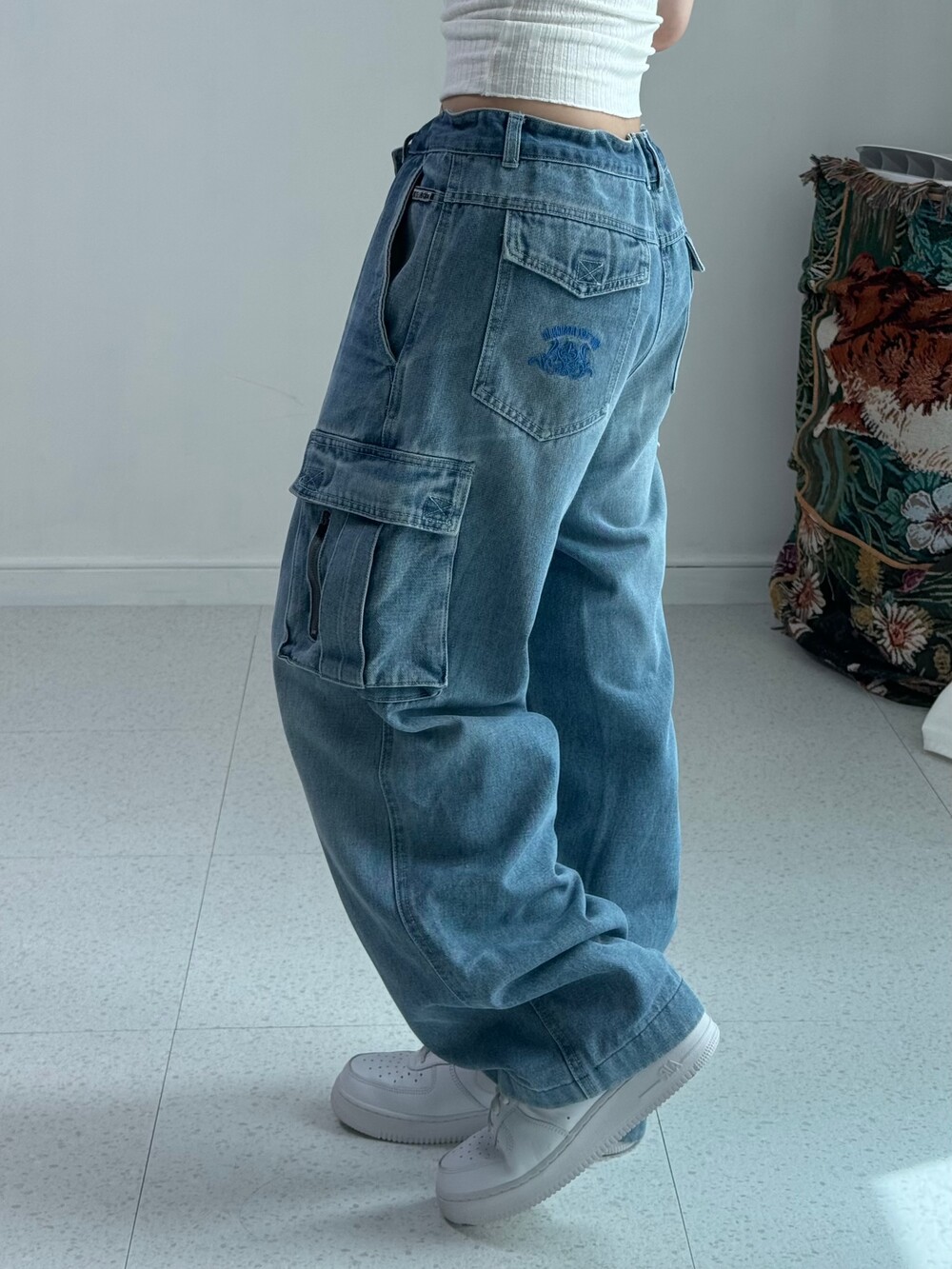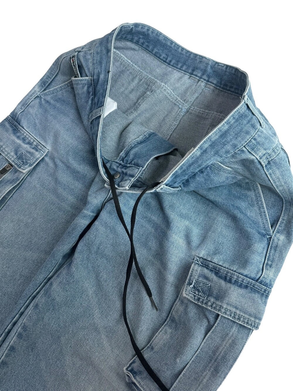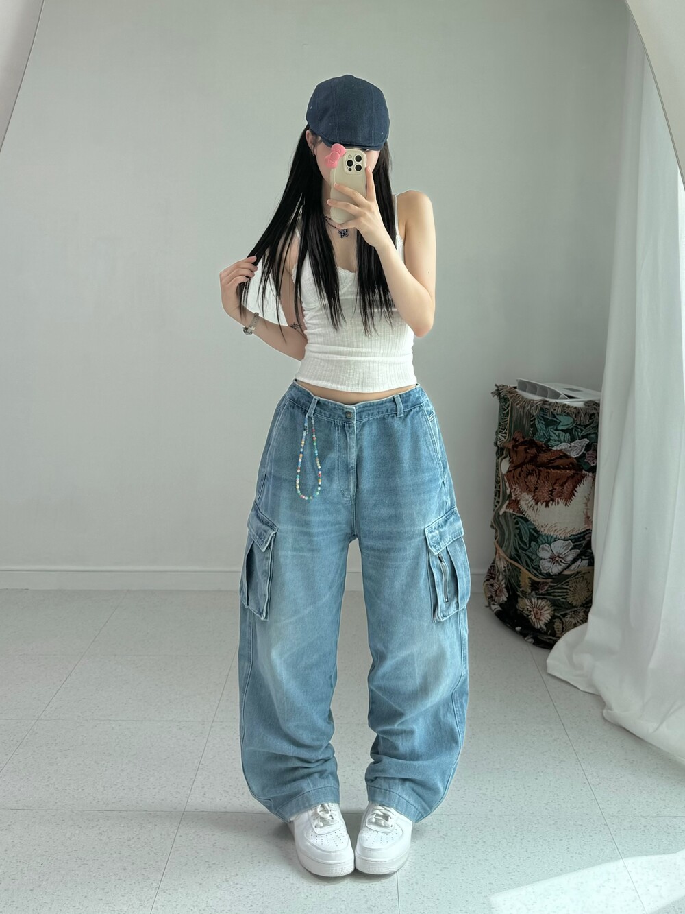 •시원한 연청 컬러의 카고! 루즈묵직한 핏감이라 더 예쁘다구요>,< 사계절 내내 즐겨입어주시기 좋은 두께감이라 걱정마셔요! 제가 센스있게 허리끈도 넣어놨어요😎✌🏻