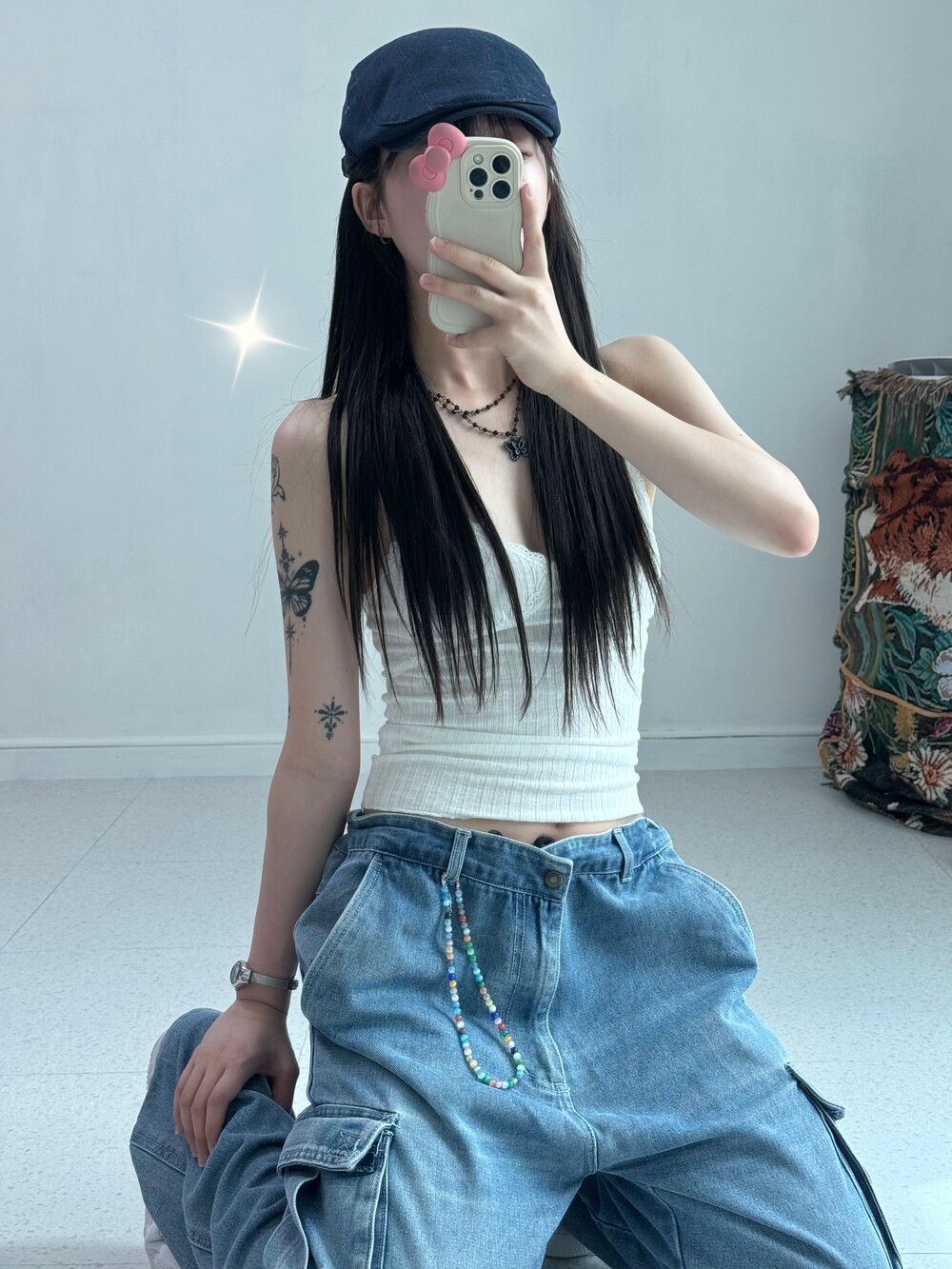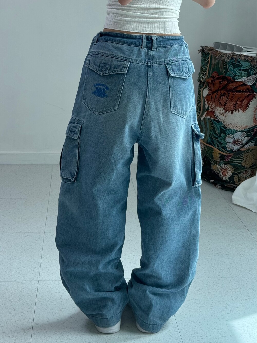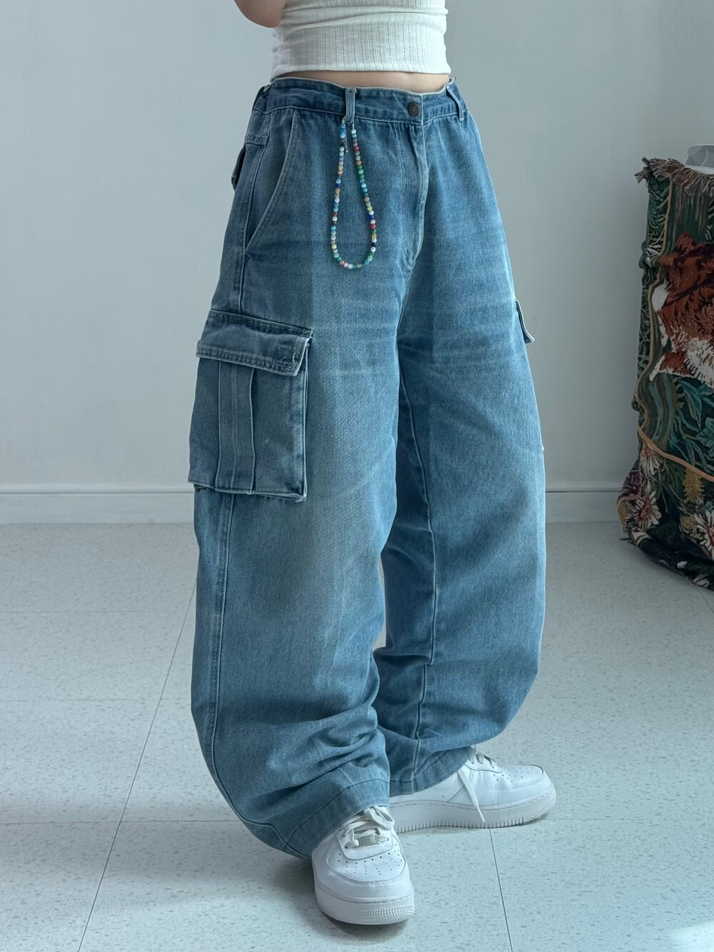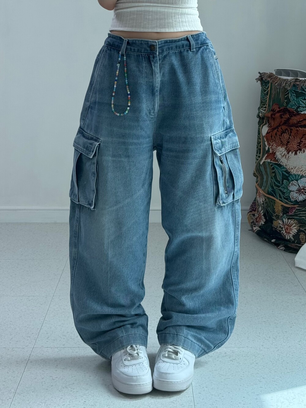 •시원한 연청 컬러의 카고! 루즈묵직한 핏감이라 더 예쁘다구요>,< 사계절 내내 즐겨입어주시기 좋은 두께감이라 걱정마셔요! 제가 센스있게 허리끈도 넣어놨어요😎✌🏻