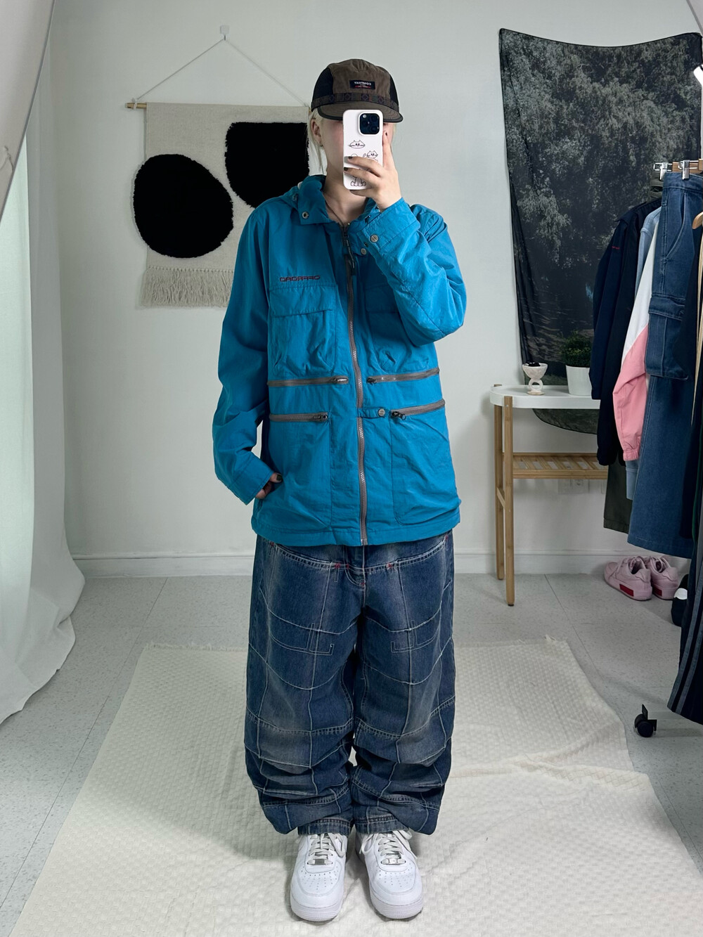 •블루컬러의 귀염짱짱 아우터~~멀티포켓 디자인과 중간중간 지퍼 디테일이 굉장히 멋스러운 제품입니다! 핏감도 아방폭닥하니 예쁘고 디자인도 독특해서 친구랑 겹칠 일이 절대 없다는거.. 얼굴도 하얘보이구 강추 입니다!!!