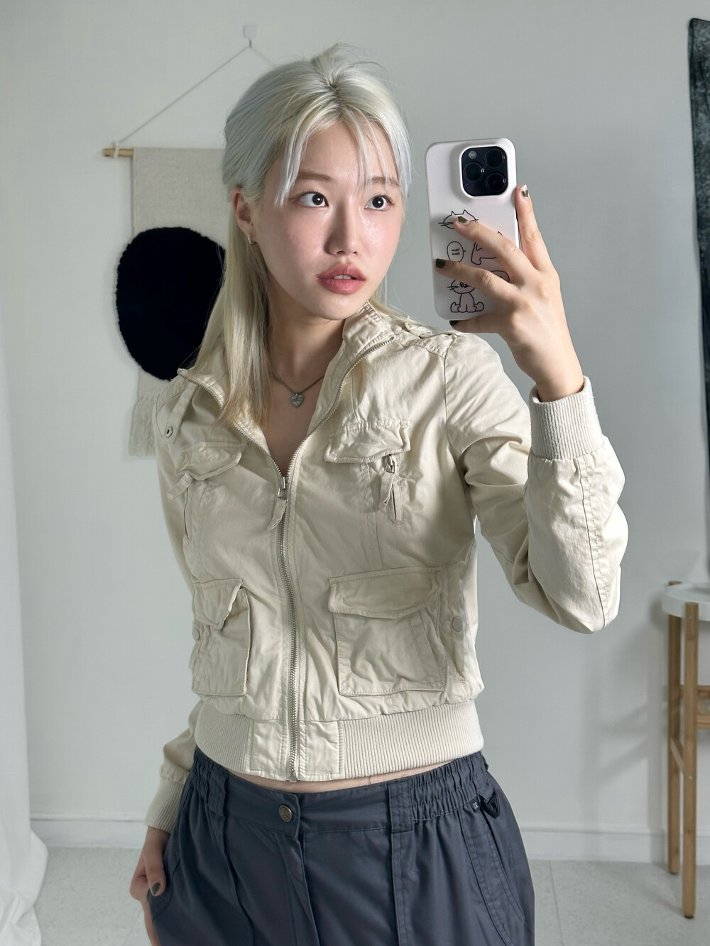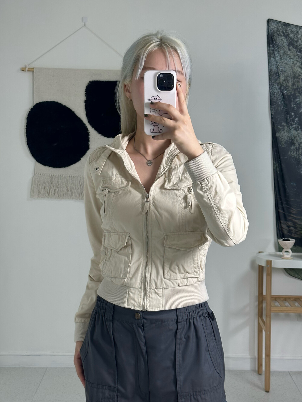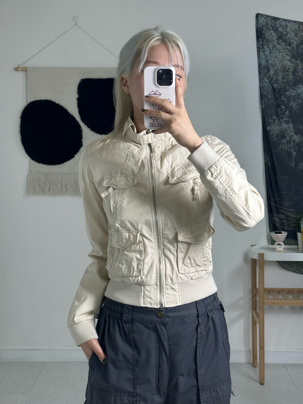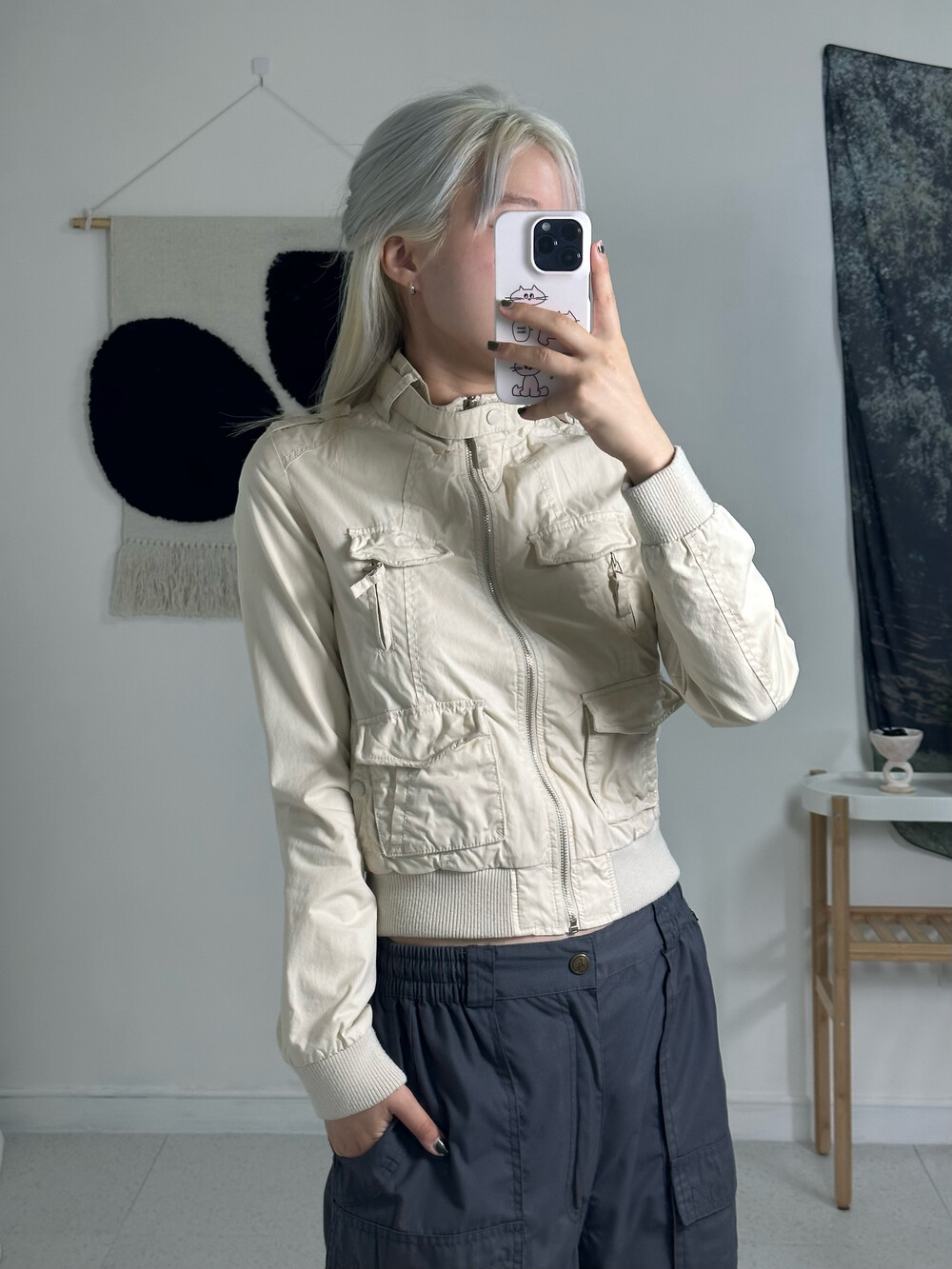 •진짜 너무 예쁘거든요!! 멀티포켓 디자인과 핏하게 떨어지는 실루엣이라 간지나는 말라걸이 될 수 있는 제품이랍니다ㅎㅎ 빈티지 제품이지만 상태도 좋고 받아보시면 이거 정말 자주입겠다 싶으실거에요 키키->,<밑단 시보리도 적당히 짱짱해서 딱 예쁘다구요!