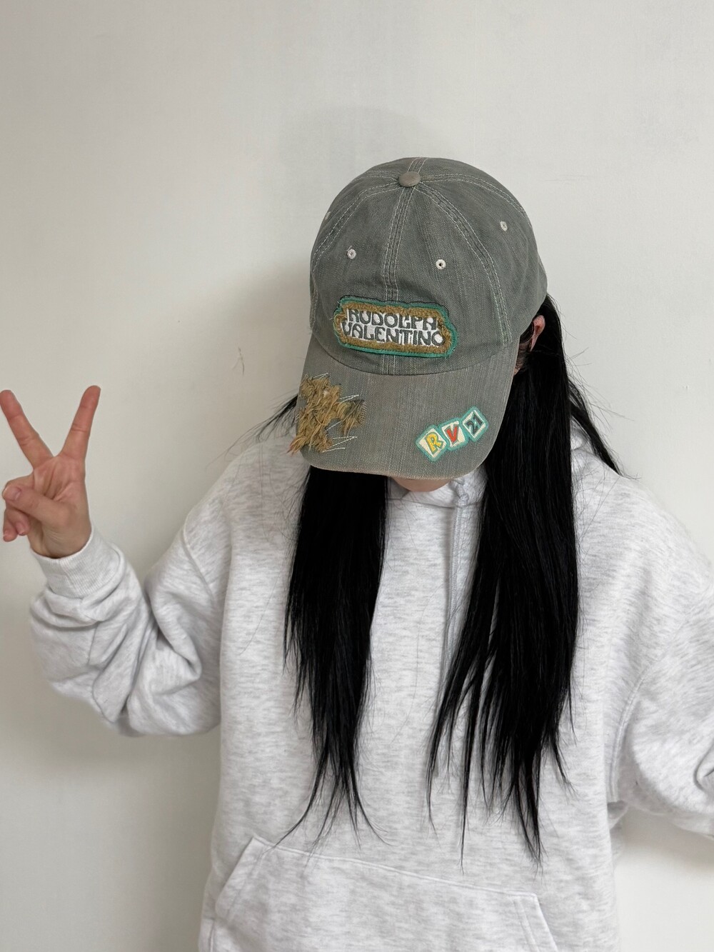 너무 귀여운 발렌티노 볼캡이에요!🖤 데미지 디자인과 패치 디자인 가죽 스트랩까지 퀄리티 높은 귀여운 아이템이랍니다ㅎㅎ