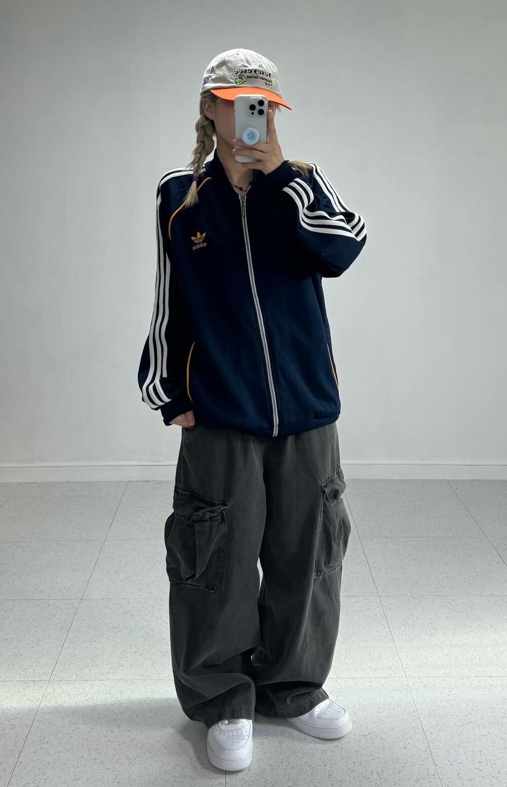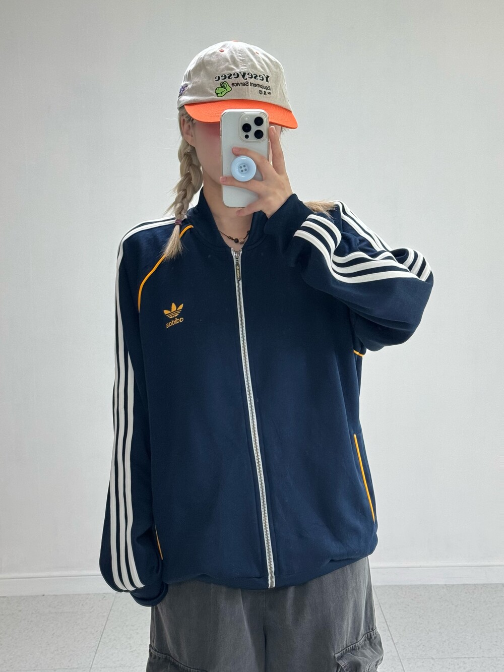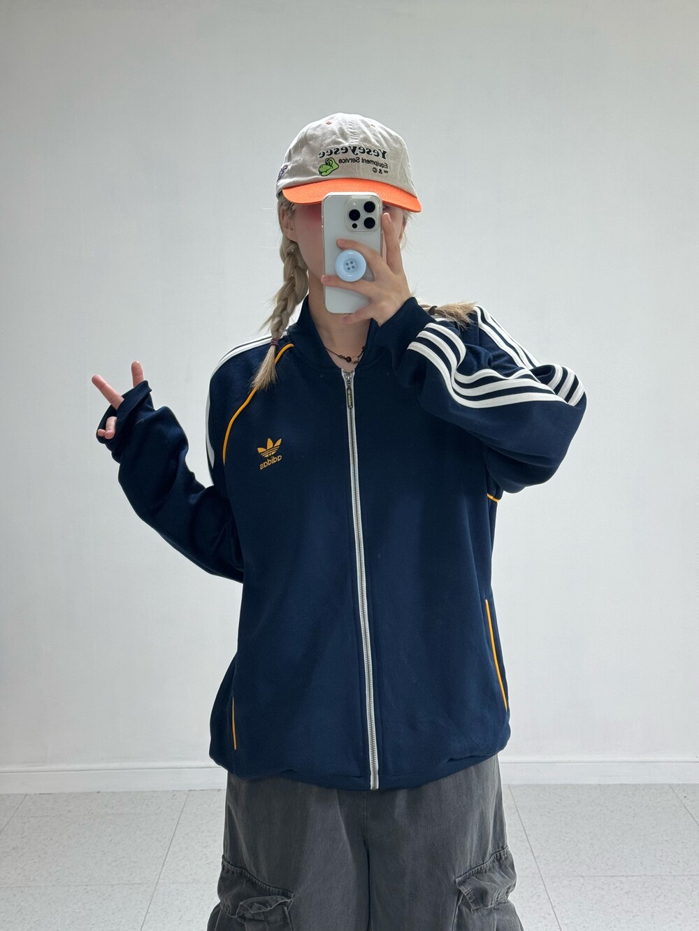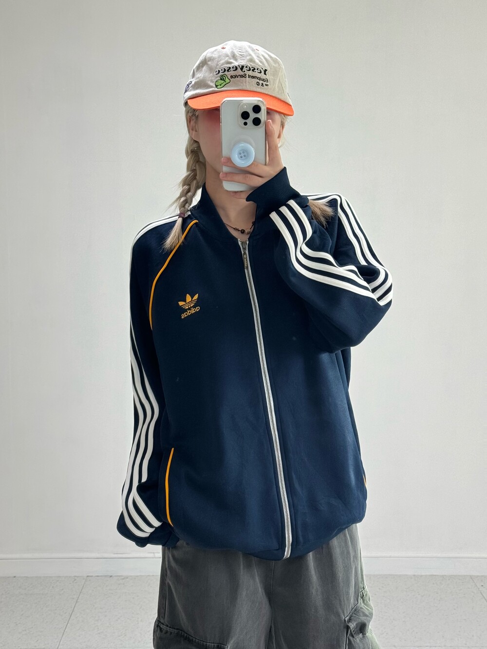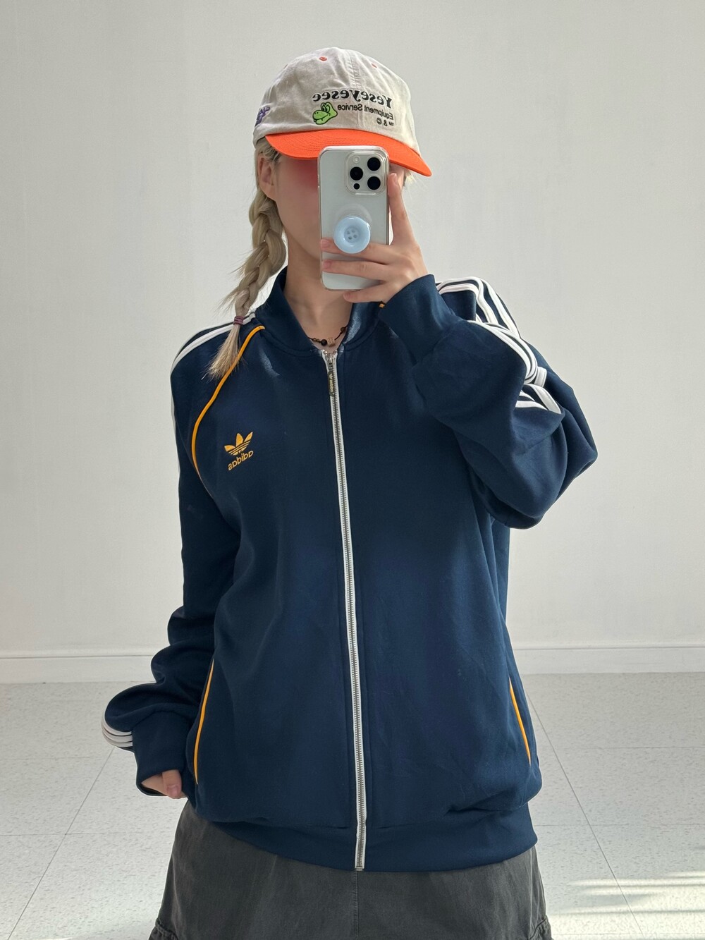 •살짝 묵직하게 떨어지는 루즈핏에 네이비와 오렌지컬러 조합이 너무 사랑스러운 져지에요ㅎㅎ 심지어 파이어버드 디자인까지 완벽하지 않나요.. 지퍼디테일까지 끗