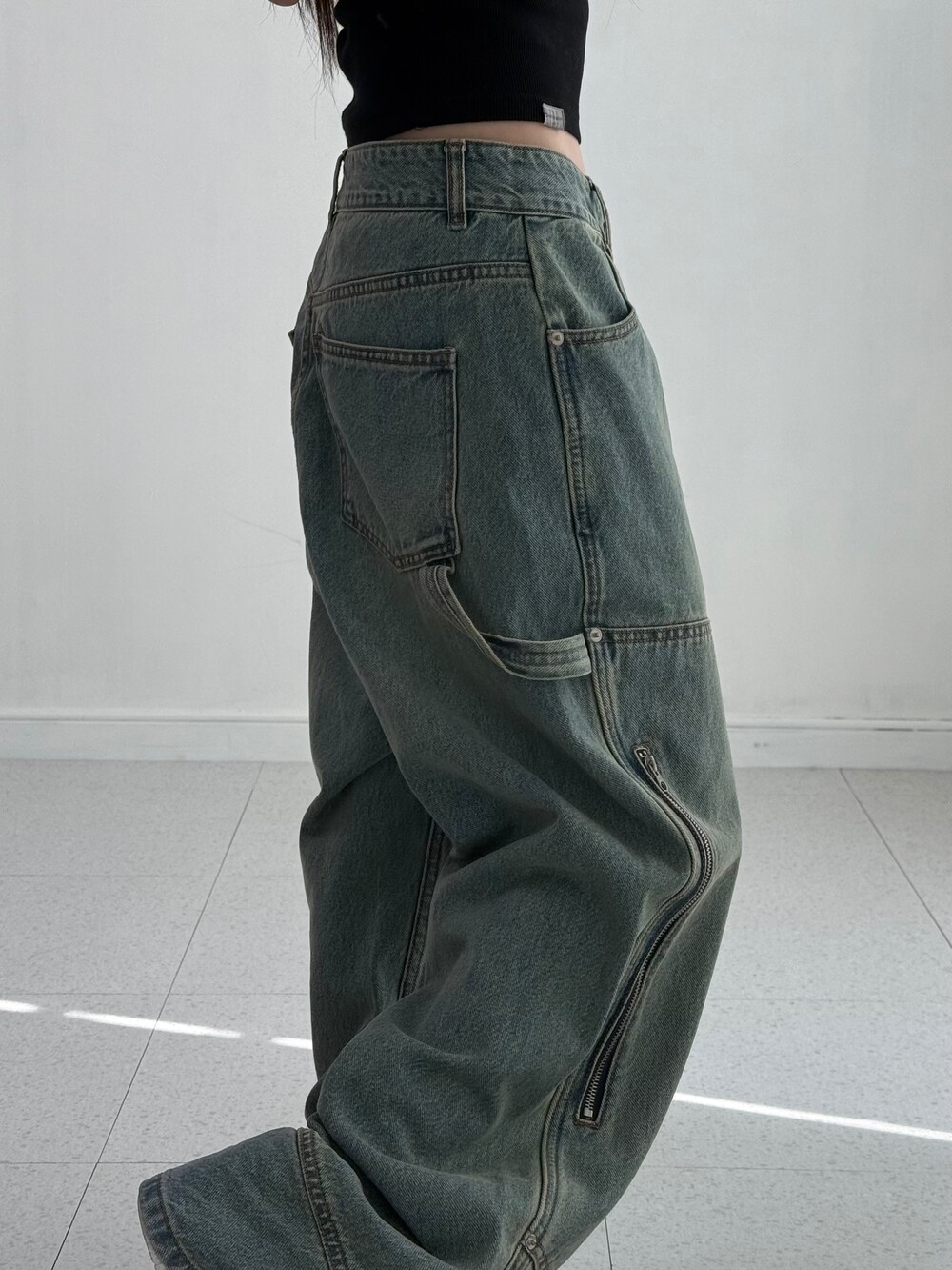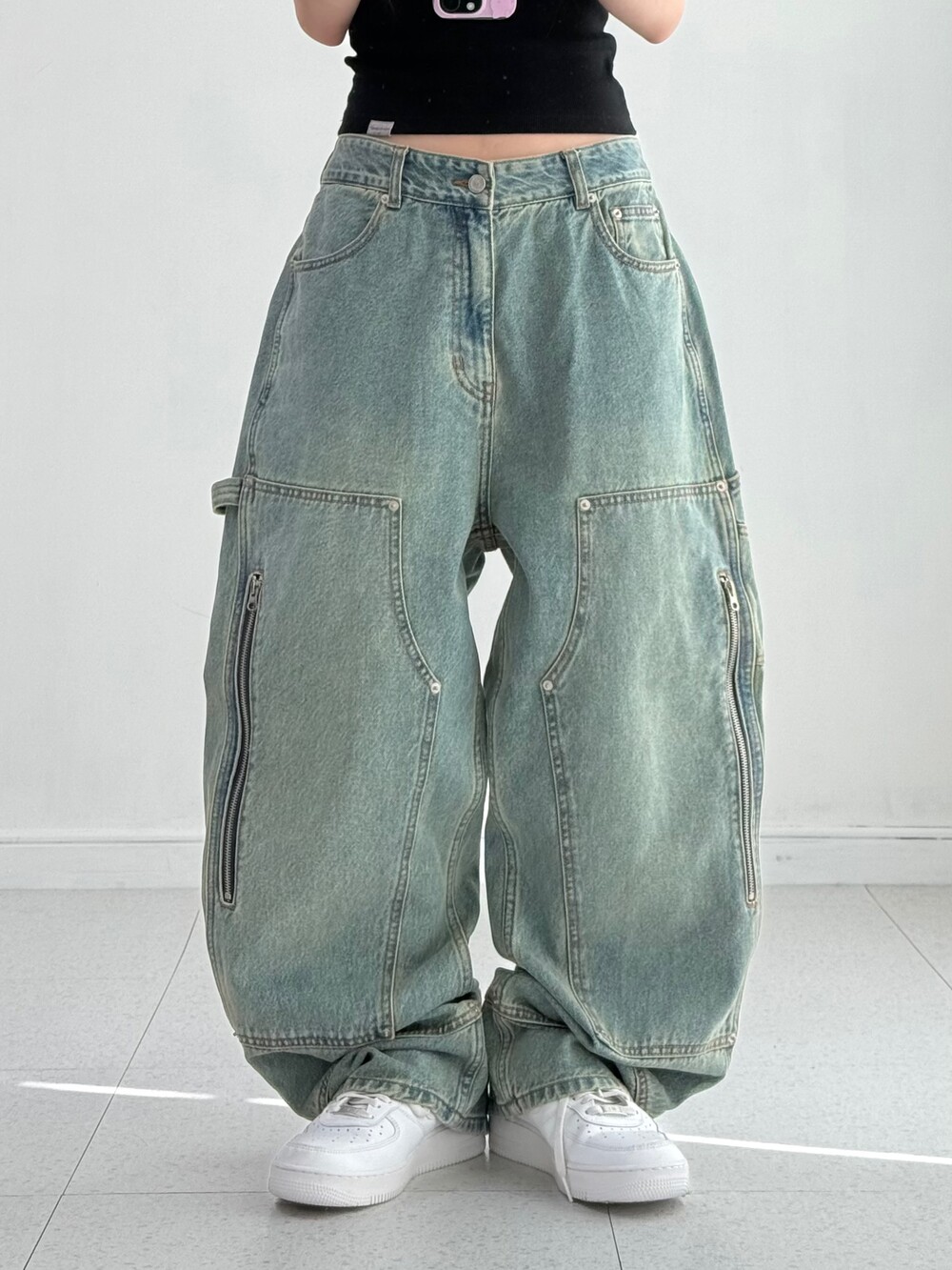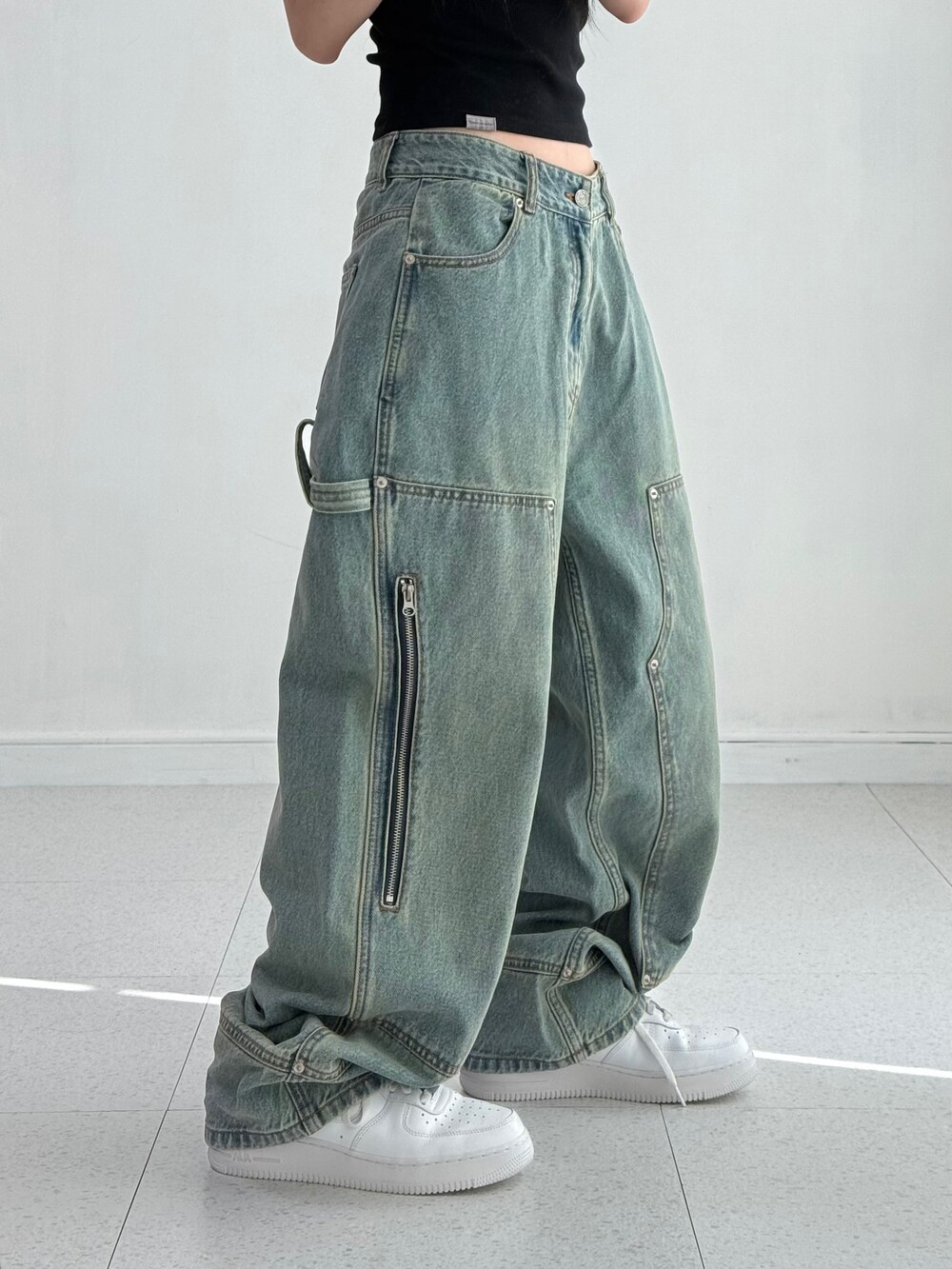 •예쁜거 다 때려박은 데님팬츠에요 ㅋㅋㅋ 더블니 디자인에 지퍼+카펜터 .. 말해뭐해 너무 멋스러워요<3 강강추-