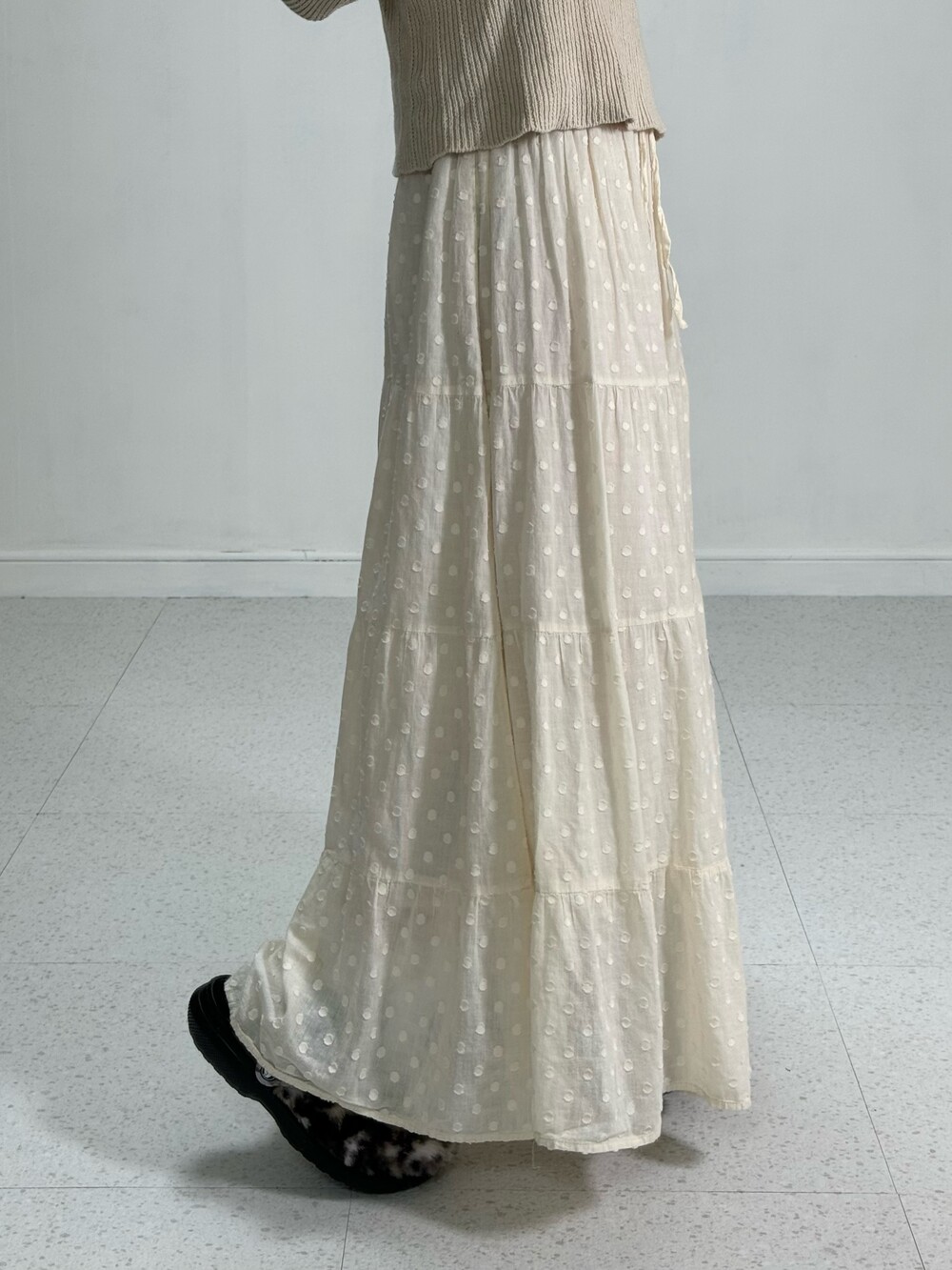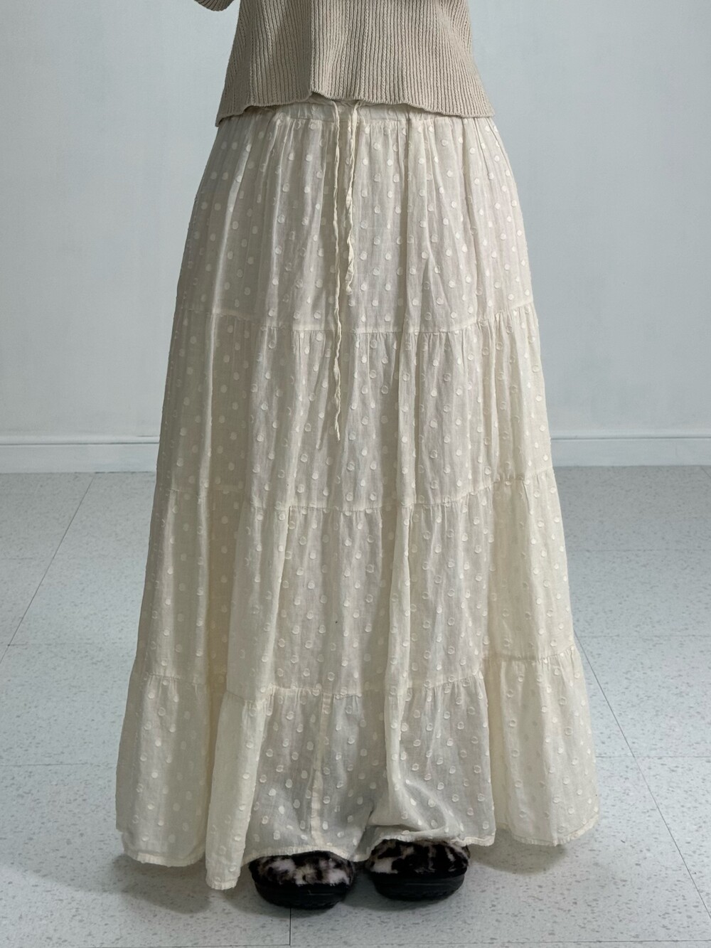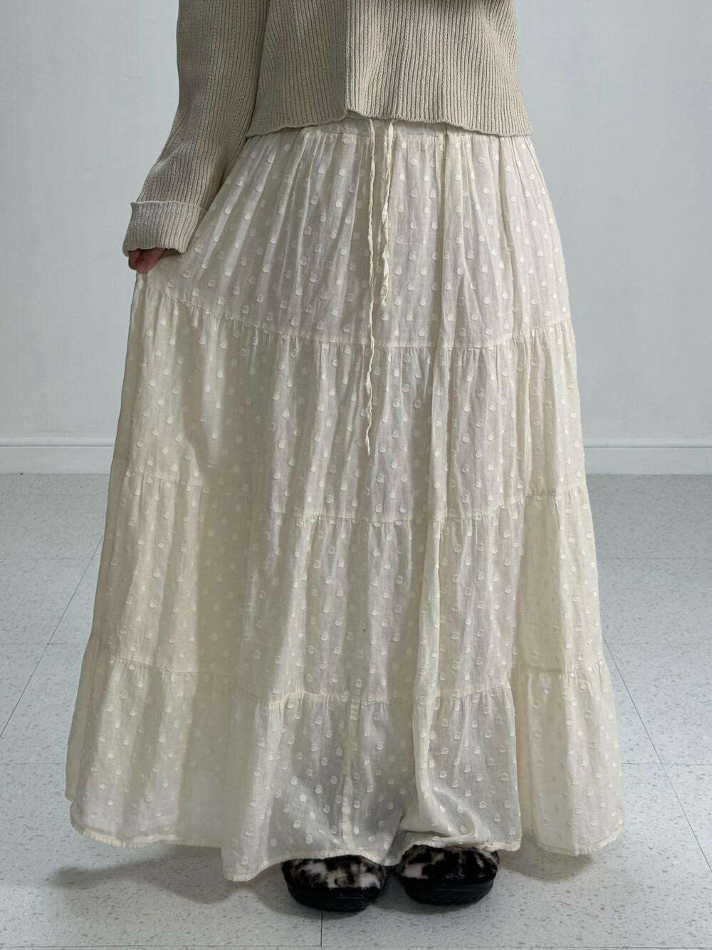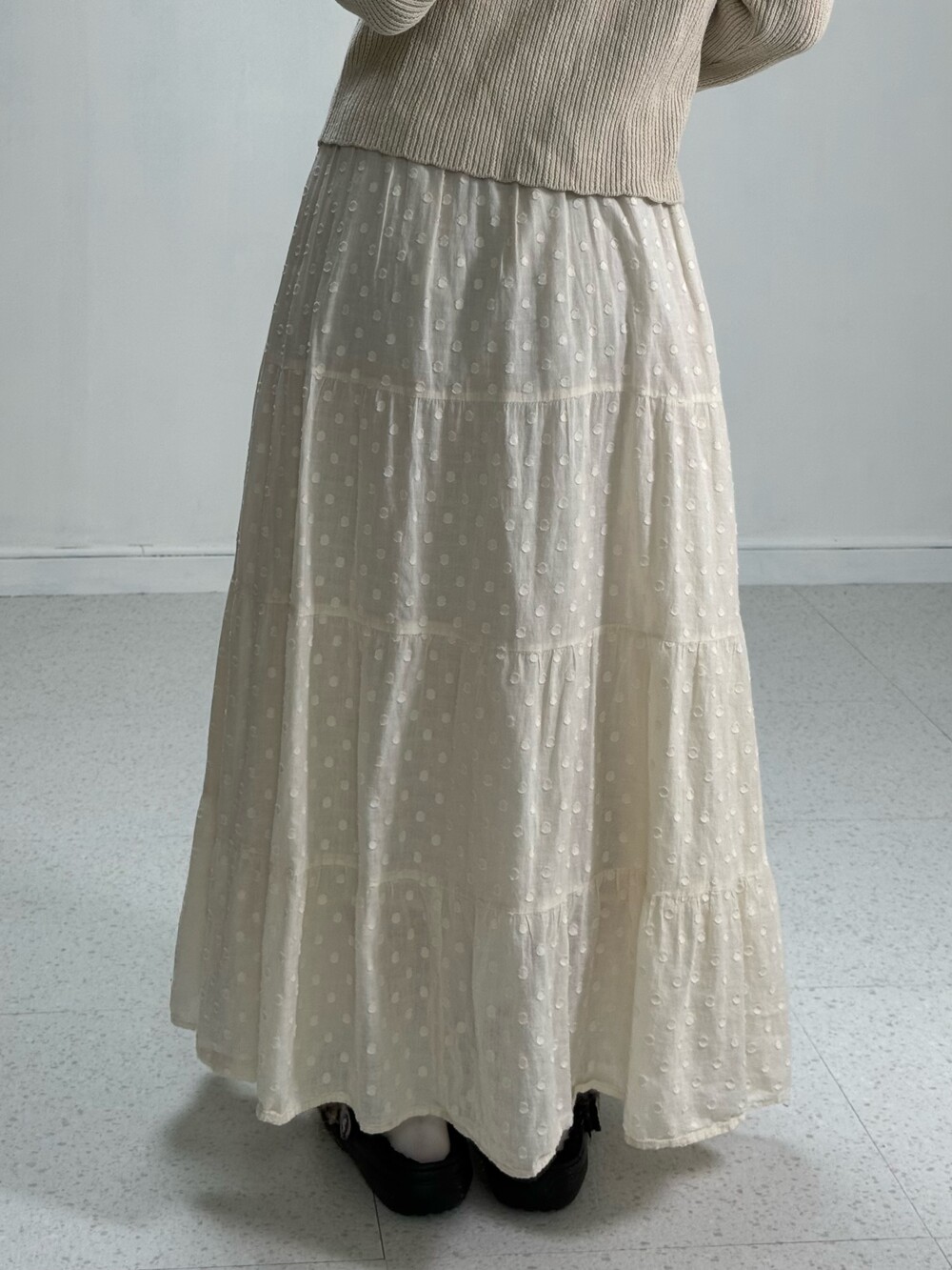 Ivory dots long skirt