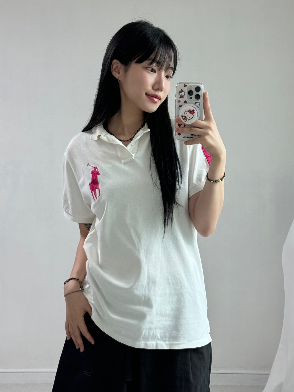 •화이트에 핫핑크 빅포니 피케이 티 라니요..!!!>,< 깔꼼하게 입어주시기 좋은 초희귀 매물 이랍니다💕