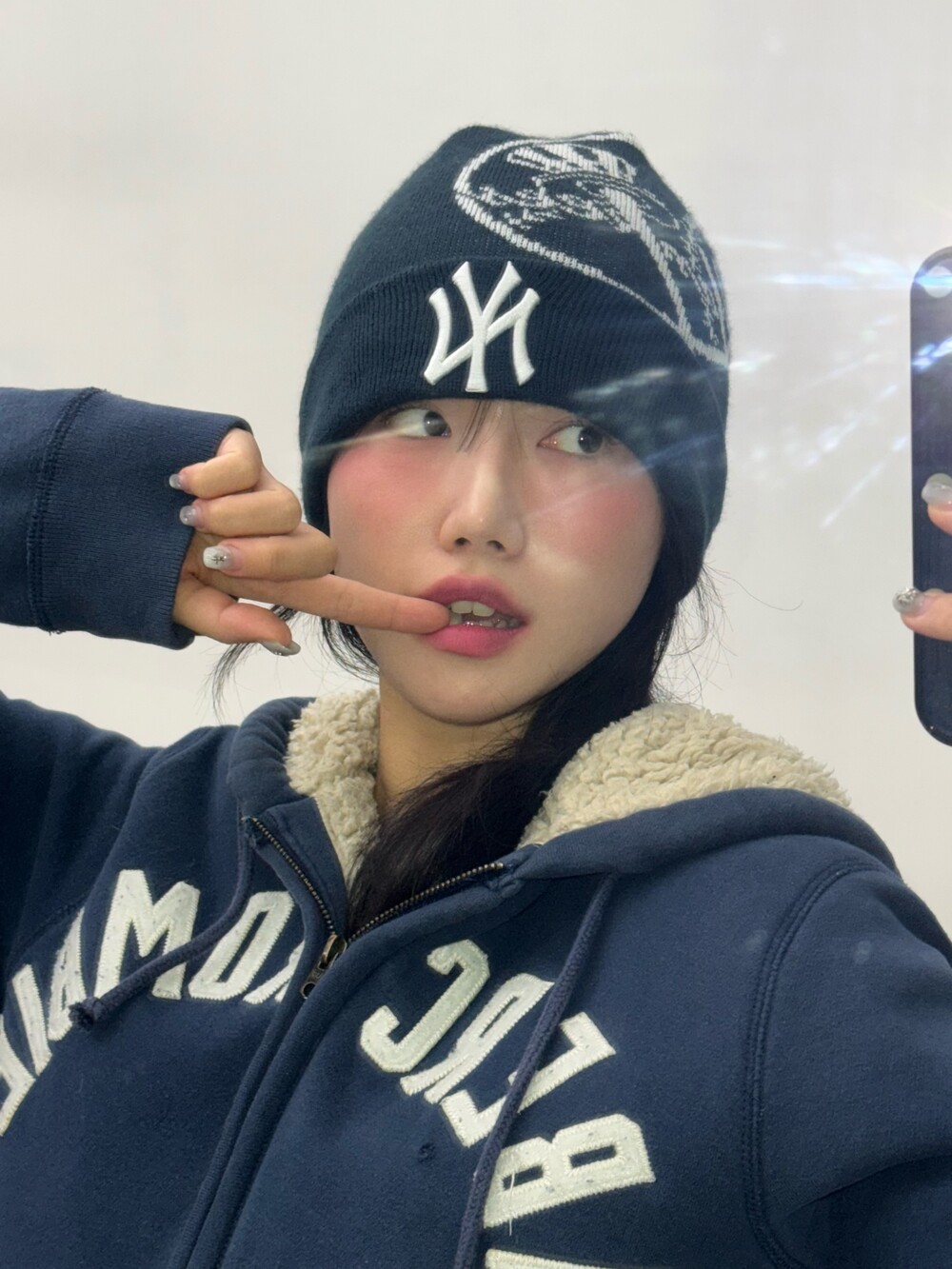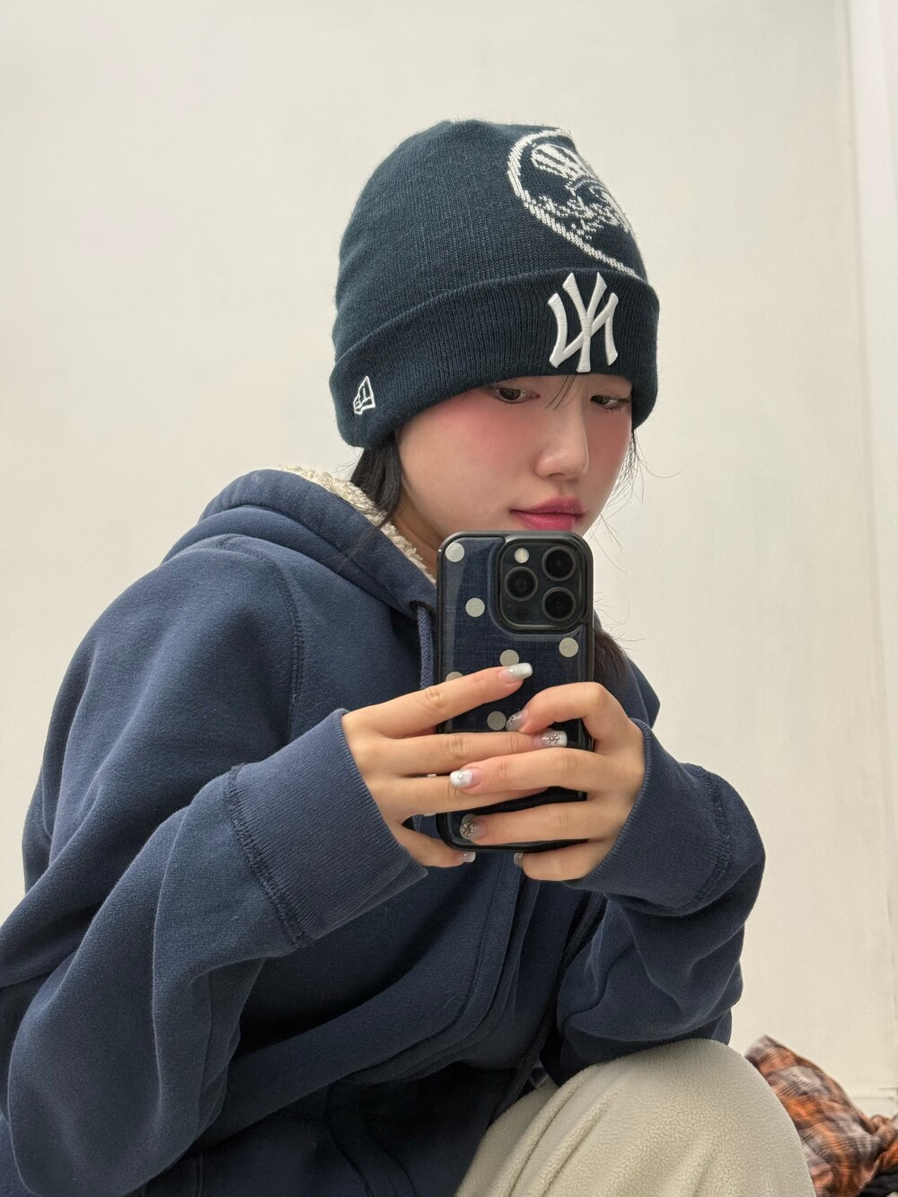 뉴에라 엠엘비 네이비 비니 입니다. 포인트 디자인이 들어가있어 더욱 귀여워요!