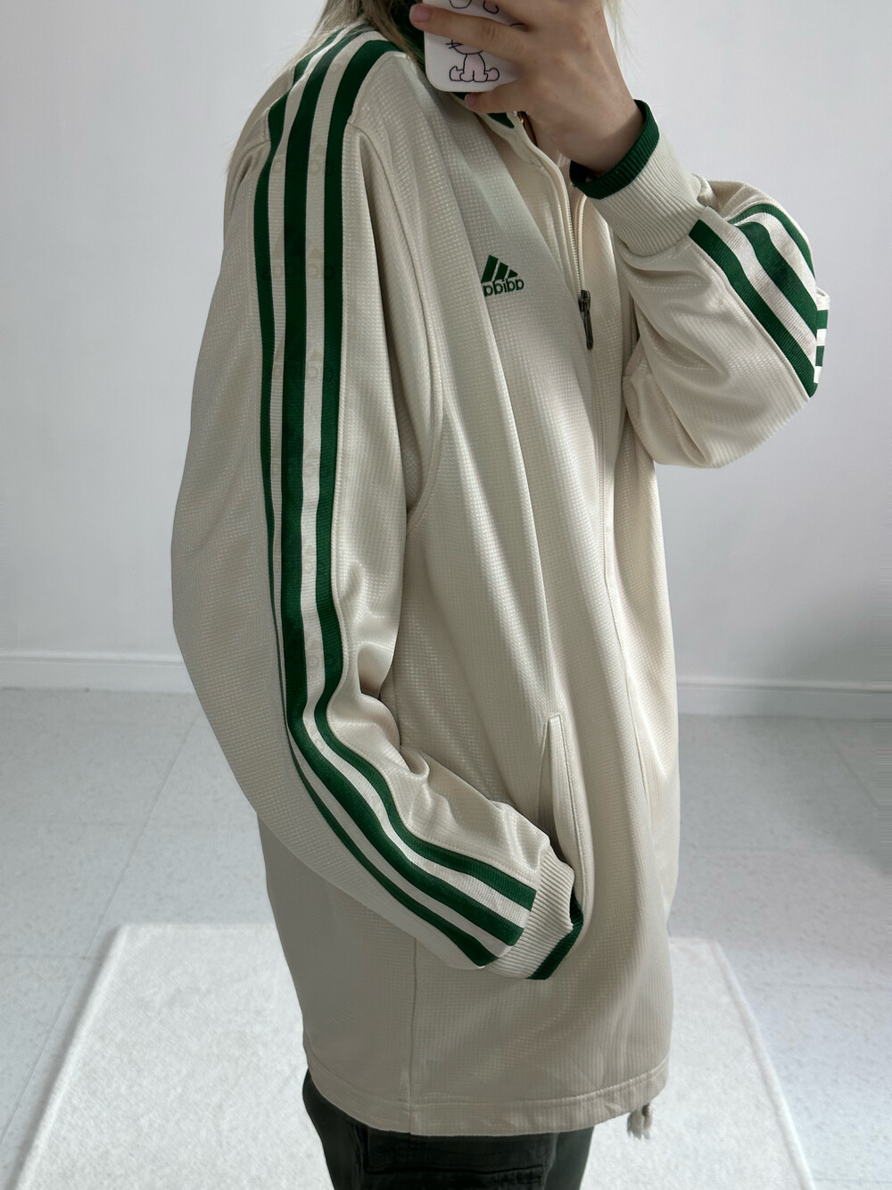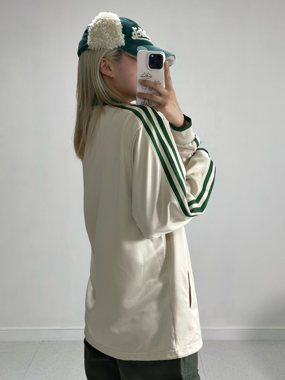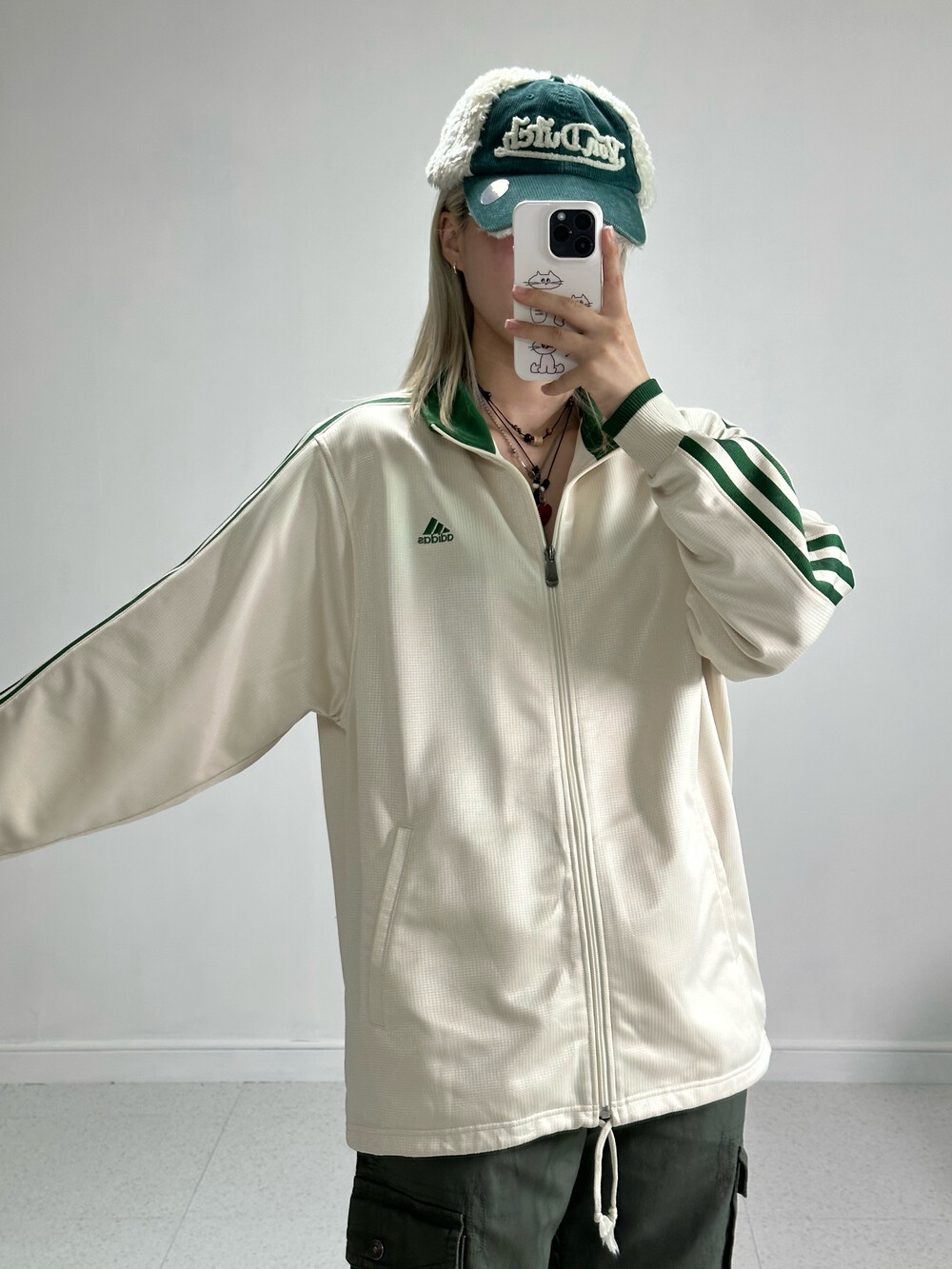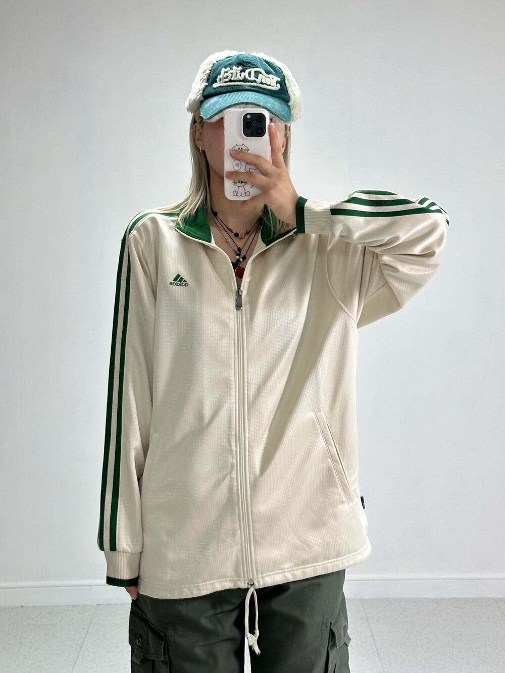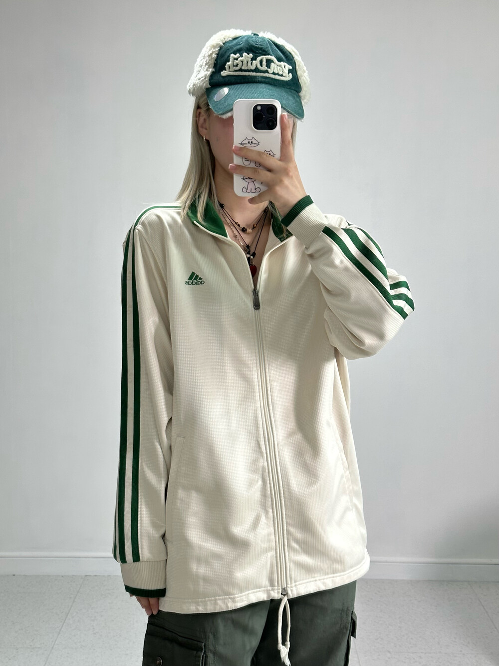 •정말 대대장급 아디다스 에센셜 져지구요! 아이보리(살짝 요구르트 느낌나는 낭낭폭닥컬러) 딥한 그린 컬러의 조합 입니다.. 밑단을 줄일 수 있게 스트랩도 내장되어 있구용 사이드 트랙 디자인이 들어가 있어 구하고 싶어도 못구하는 희귀제품 입니다! 자신있게 추천드릴 수 있어요!!!!