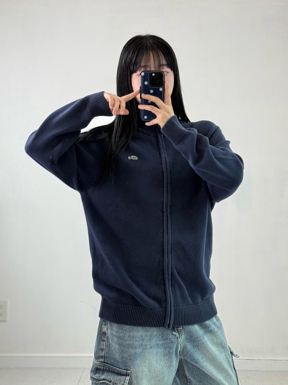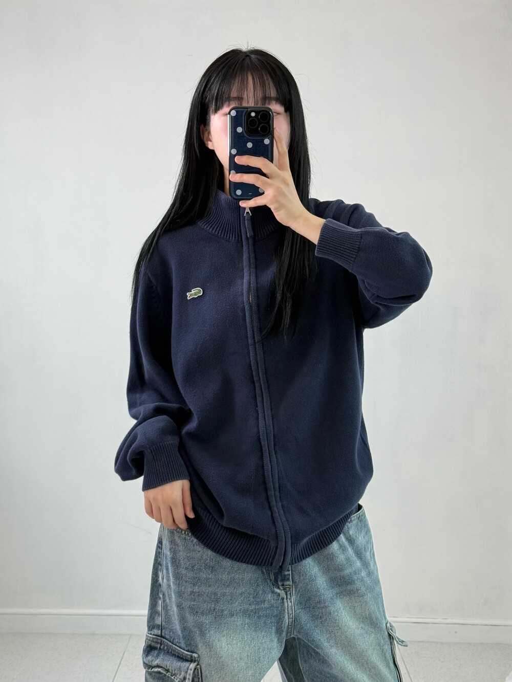 •제가 좋아하는 라코스테의 니트 집업! 특유의 묵직루즈함이 매력적인 아이에요. 데일리템으로 주구장창 입어주셔요❤️