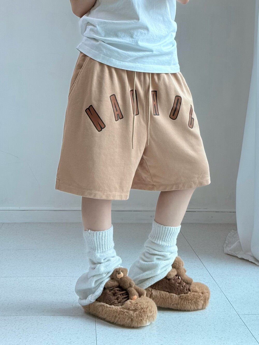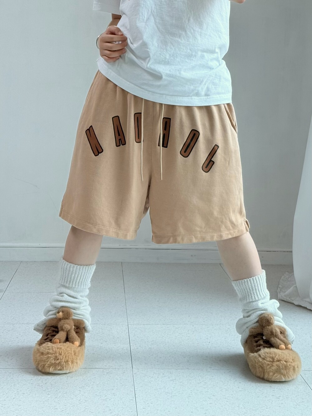•아 귀여워!!! 보자마자 반한 조던 베이지 반바지에요,, 색감은 착용샷과 유사합니다ㅎㅎ