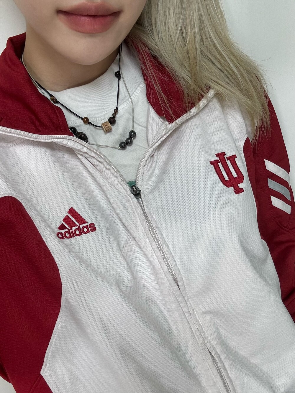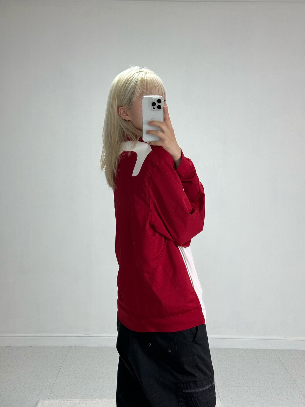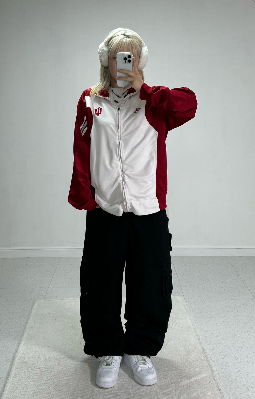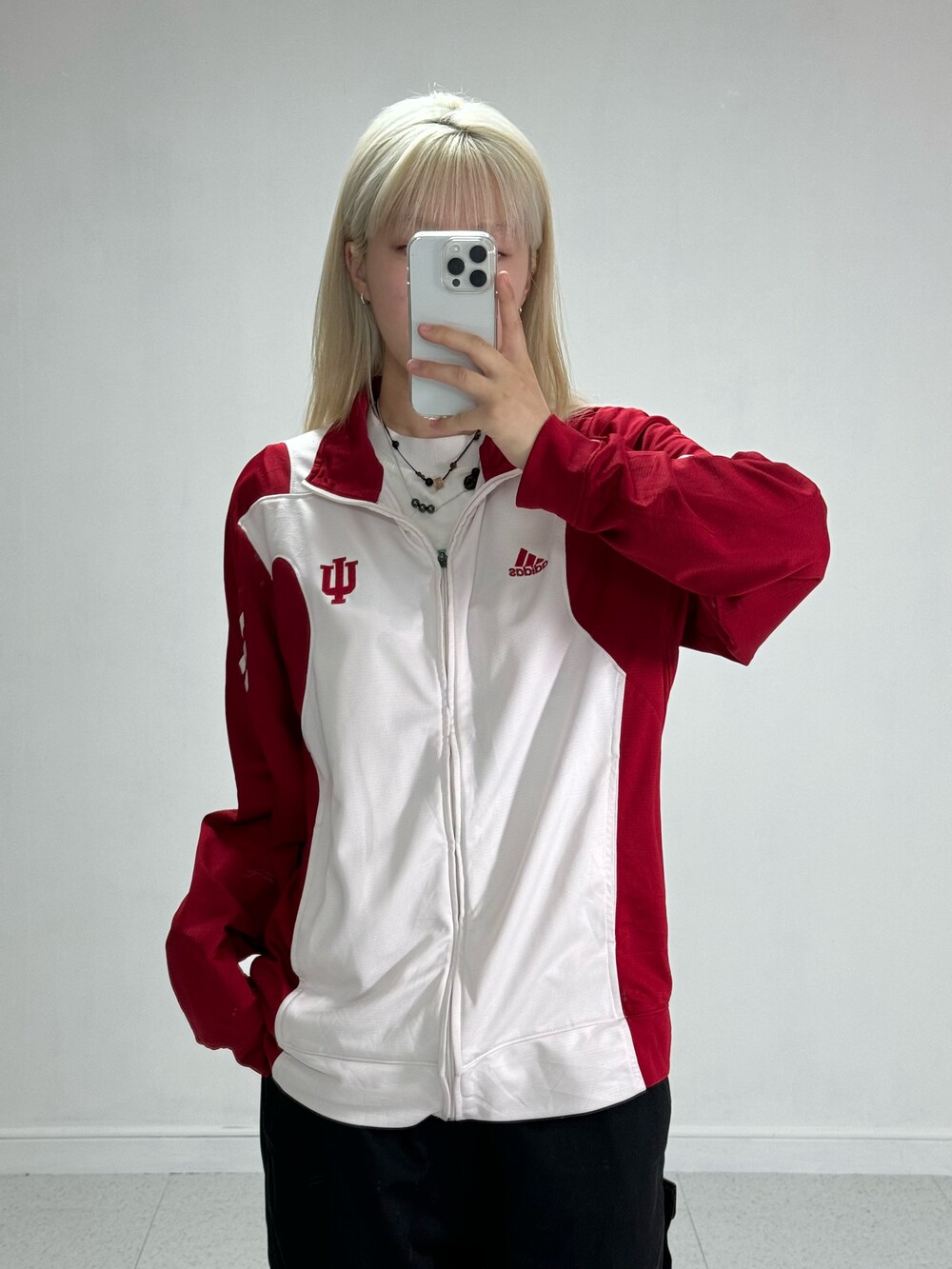 •레드와 화이트 조합으로 되어있는 져지에요ㅎㅎ 아방루즈핏으로 떨어지는 귀여운 제품입니다! 레드로 포인트가 들어가있지만 전체적으로 화이트 배경이라 부담스럽지 않고 좋아요 !