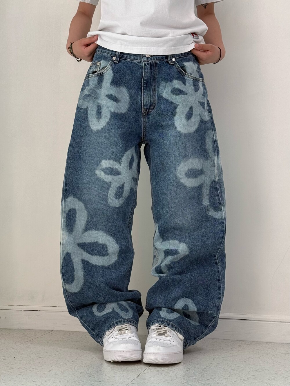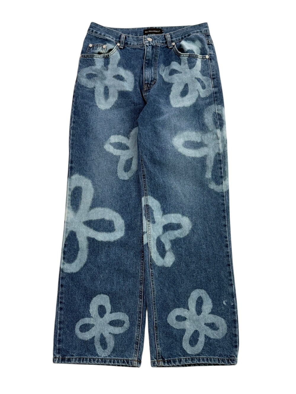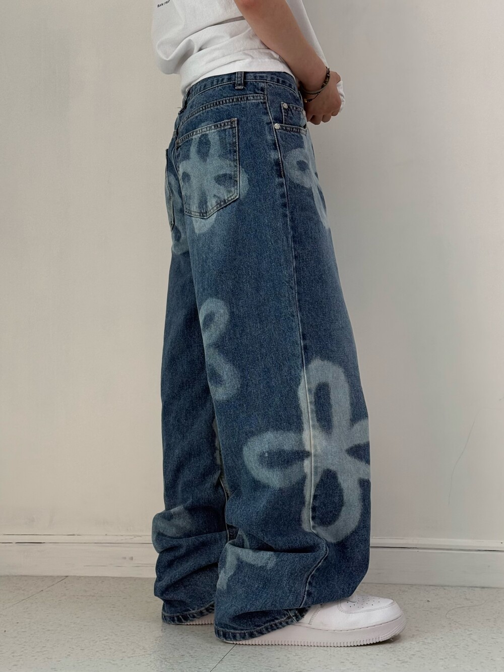 •약 20만원대에 판매중인 써저리 클로버 데님팬츠 입니다! 전체적으로 클로버 모양의 페인팅이 특징이며, 빈티지한 느낌을 주는 워싱감이 들어가있어 멋스럽게 착용하시기 좋습니다.