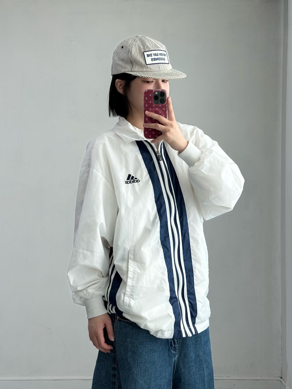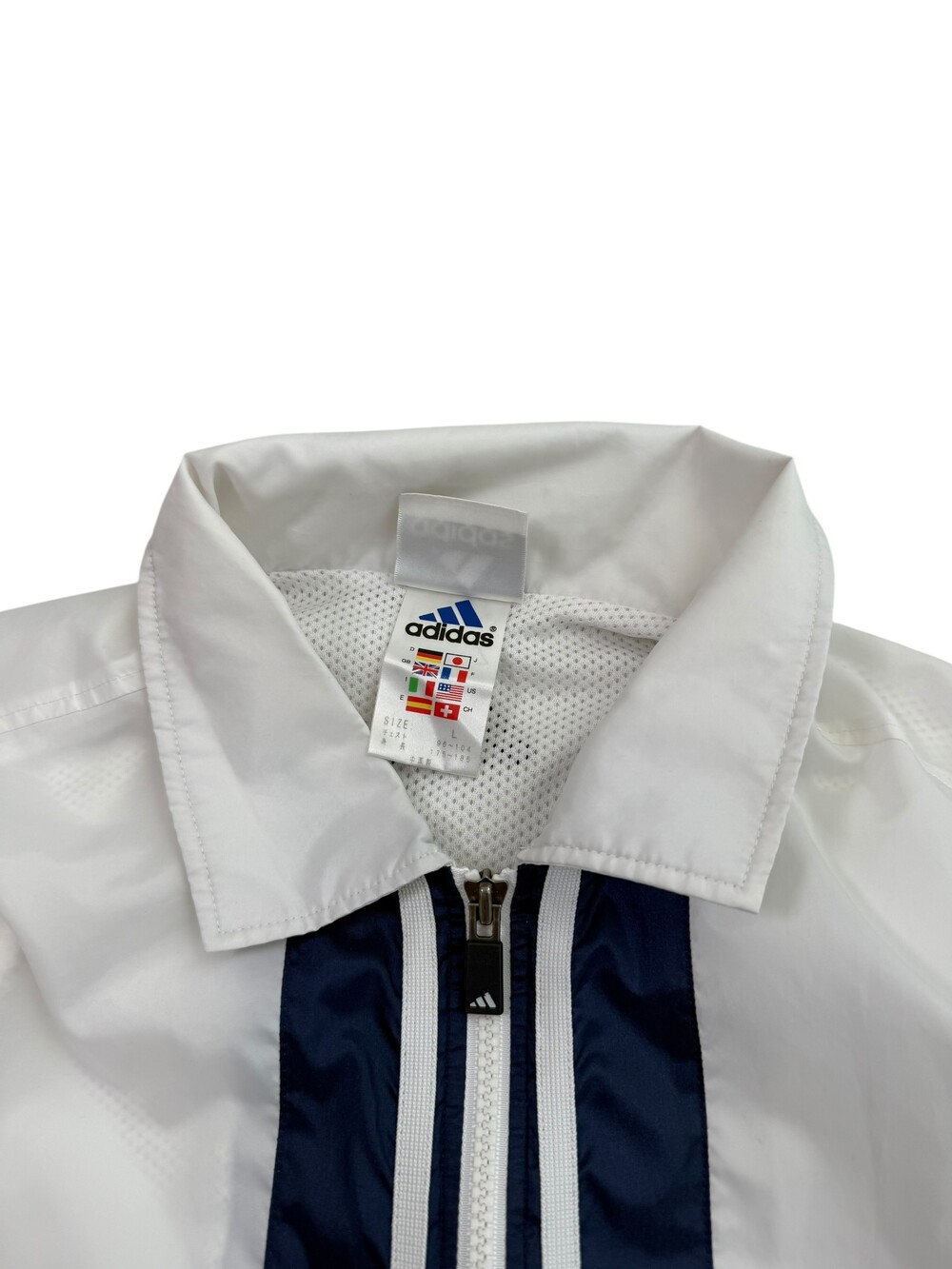 •아디다스 일본 올드스쿨 바람막이 입니다! 화이트+네이비 조합이라 데일리로 입어주시기 좋고 특히 저 카라 부분이 일본미 낭낭하니 넘 예뻐요🤍☁️