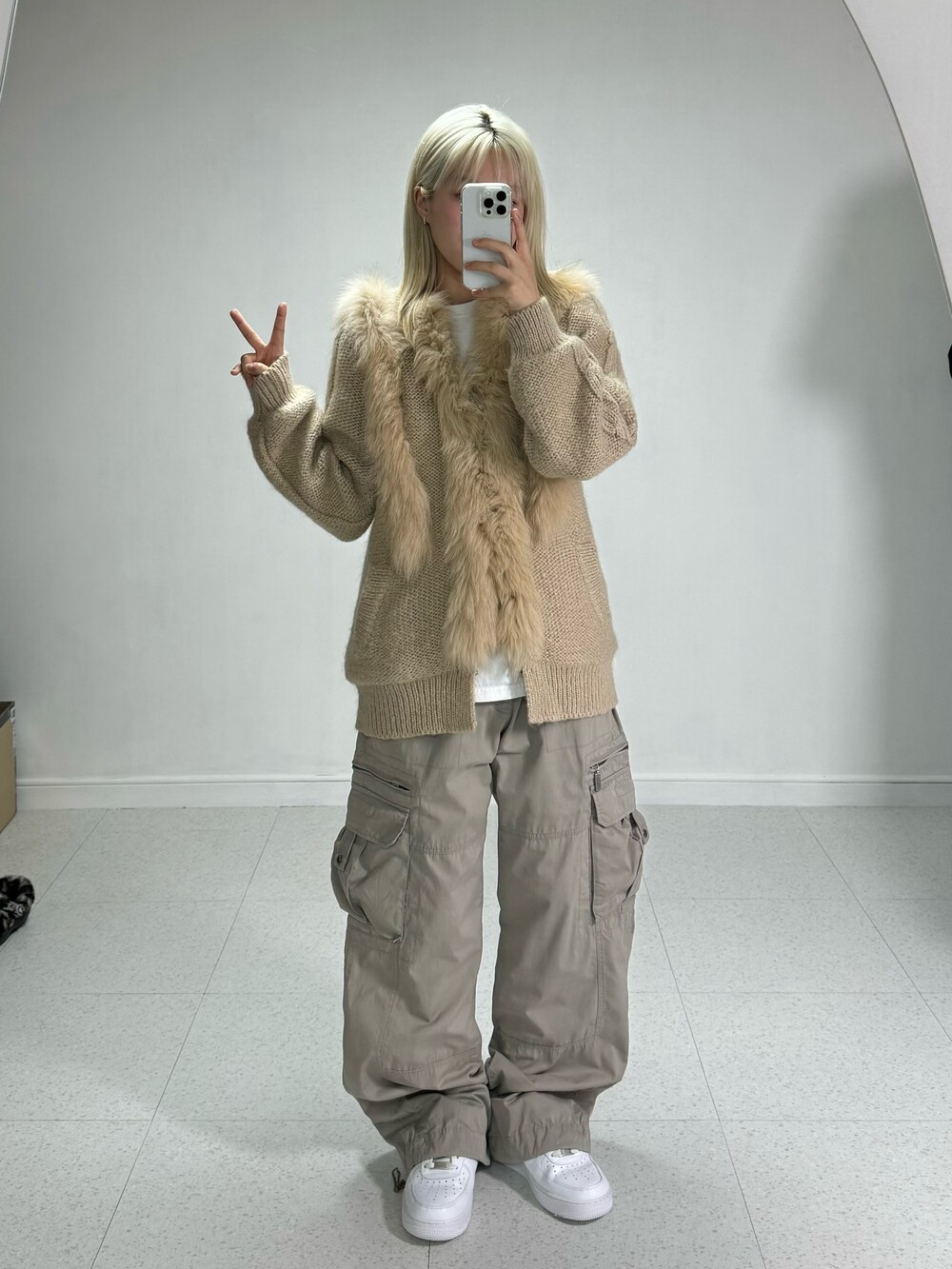 •와이드 루즈핏과 지퍼 디테일과 포켓 디자인이 멋스럽게 들어가있는 카고팬츠에요! 개인적으로 정말 제가 좋아하는 핏이랍니다..🖤 입기만해도 멋스러움이 뚝뚝✌🏻