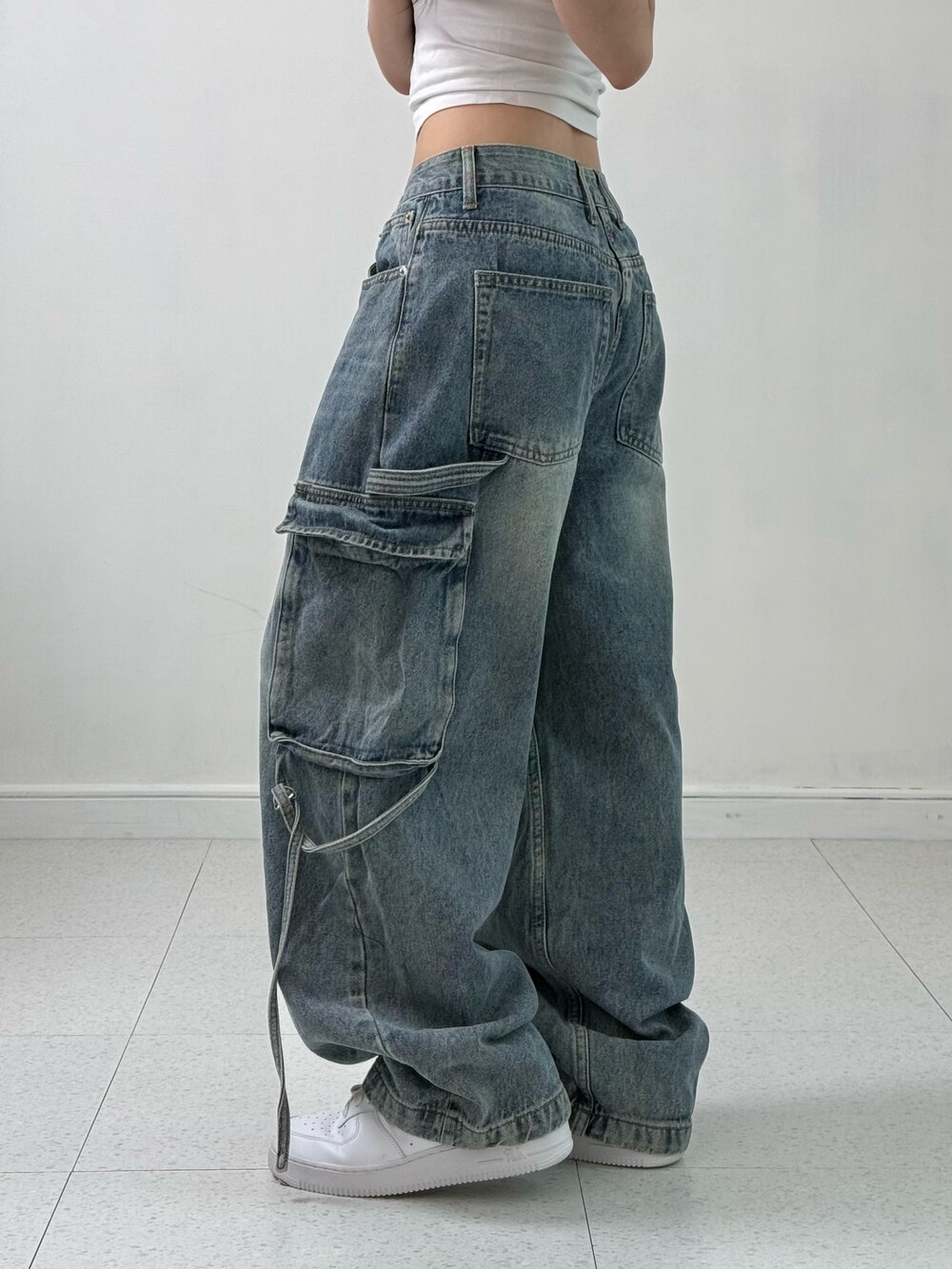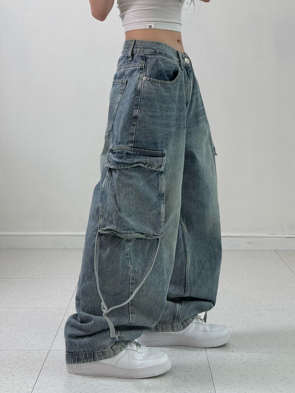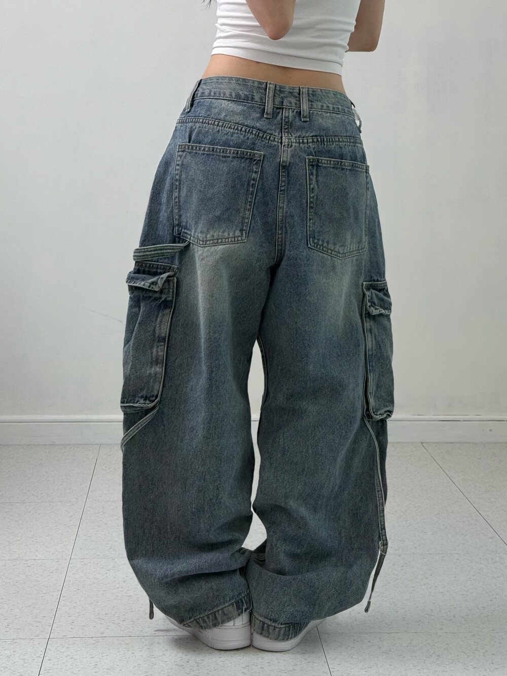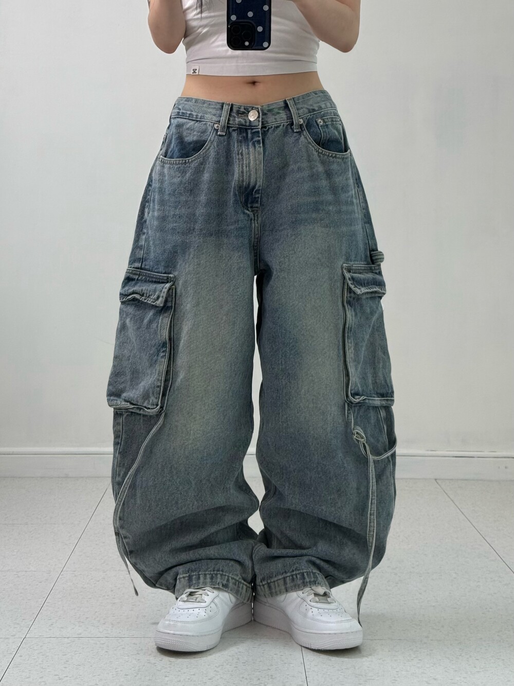 •허리는 삭 잡아주면서 와이드한 핏으로 하체를 보완해주는 멋쟁이 데일리 데님카고 에요!