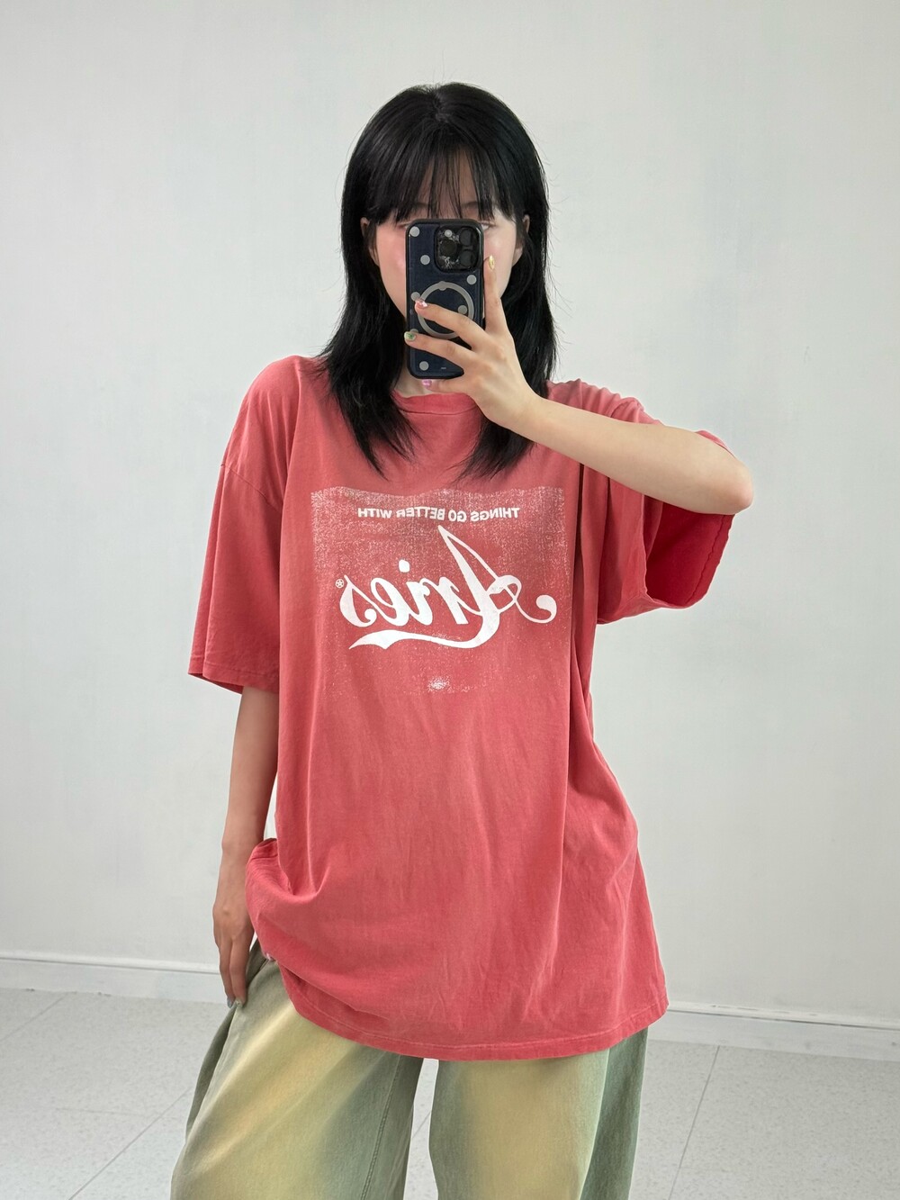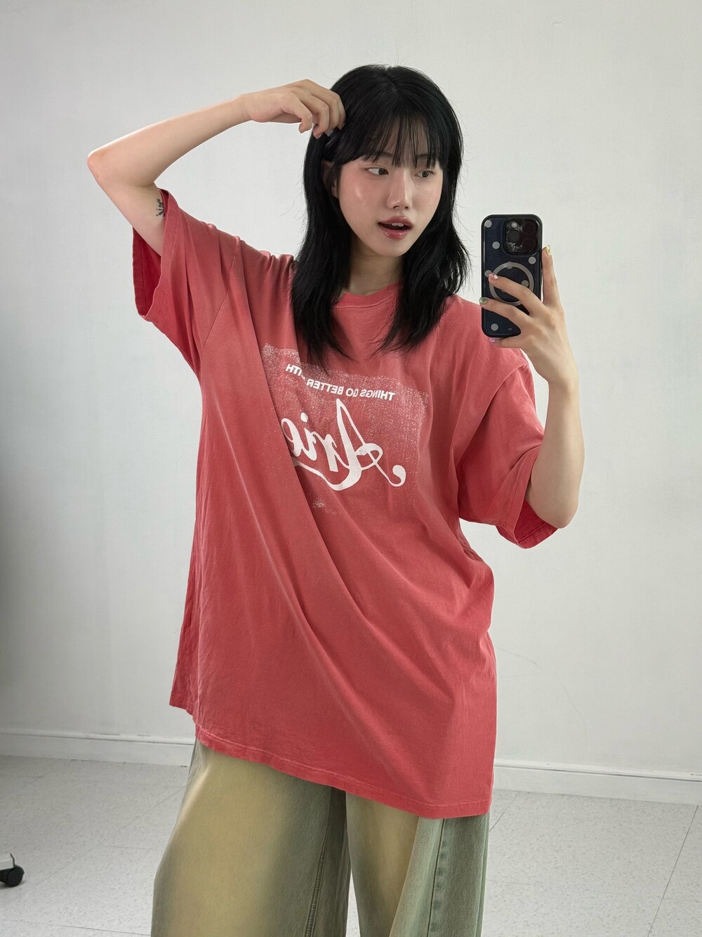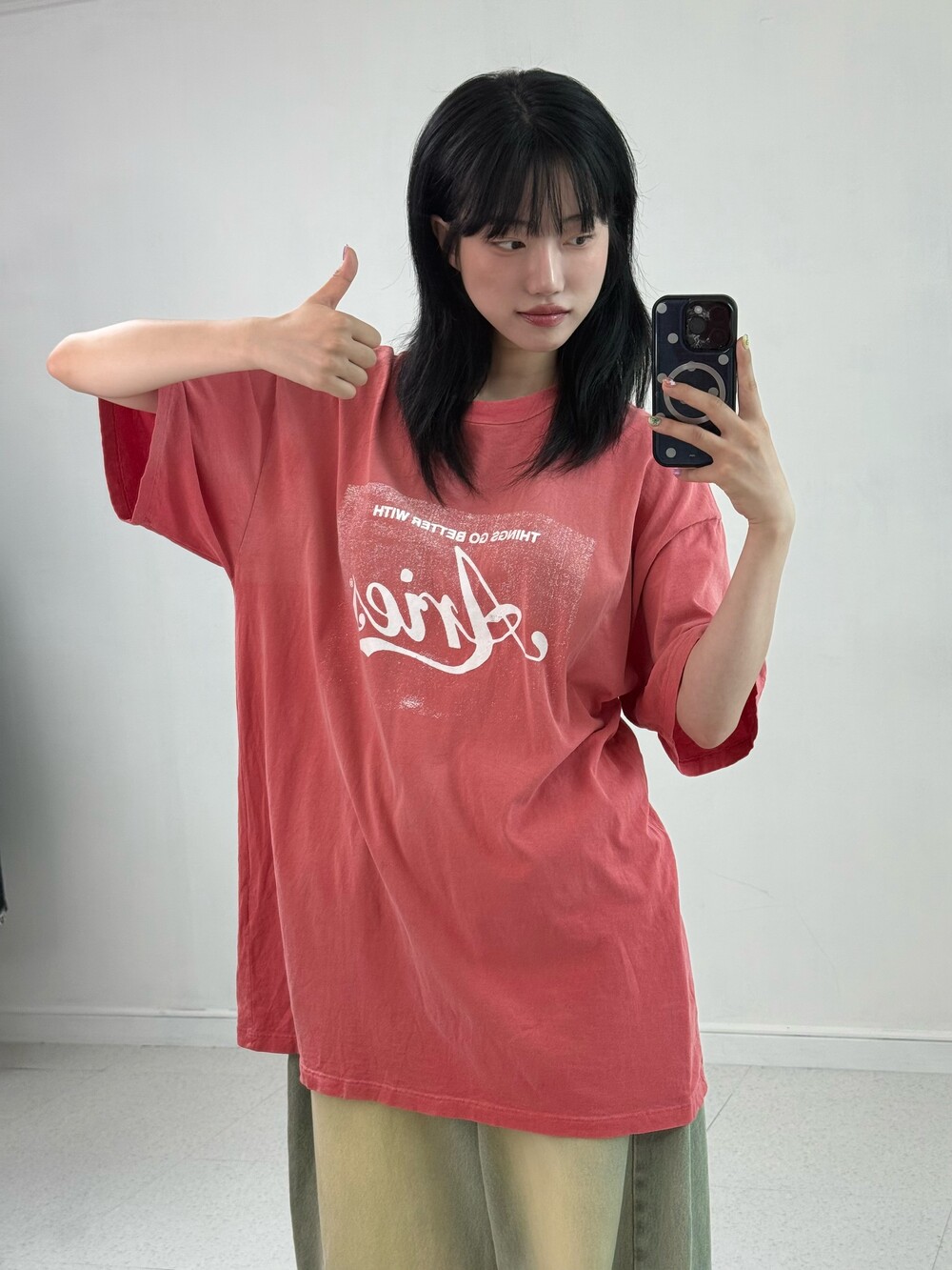 •에리즈의 워싱 핑크 반팔티셔츠 입니다! 남녀공용 오버핏으로 착용가능한 아이템이에요!