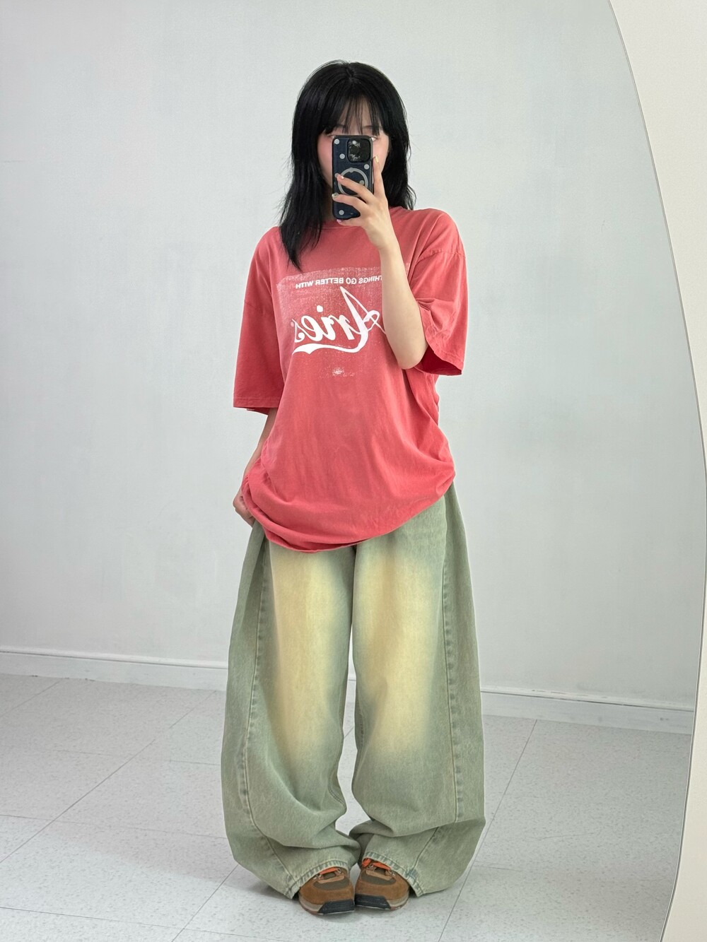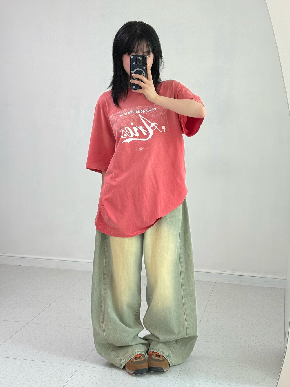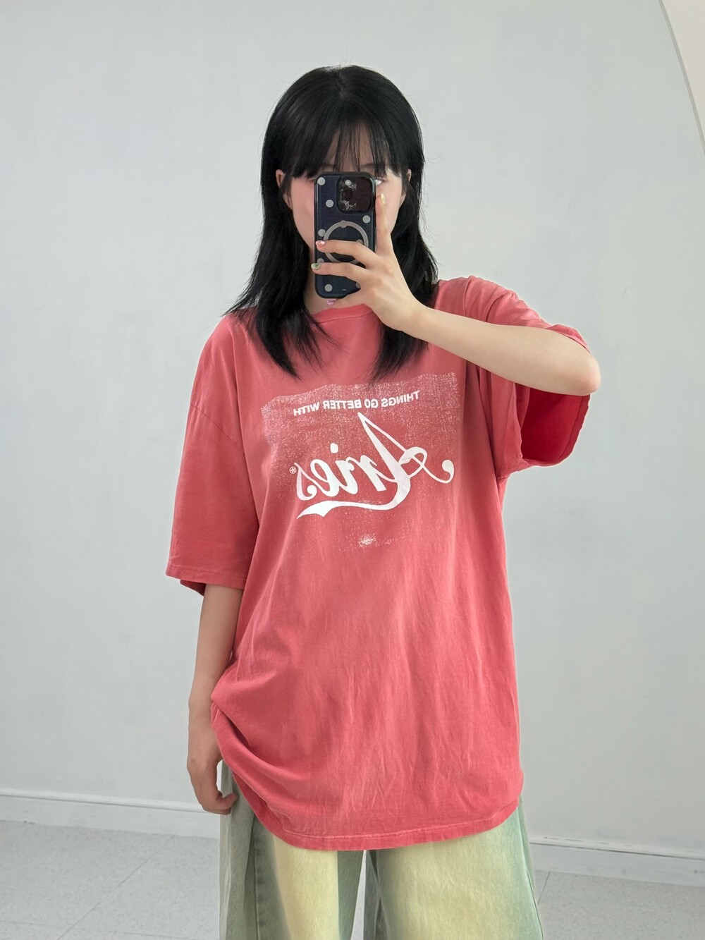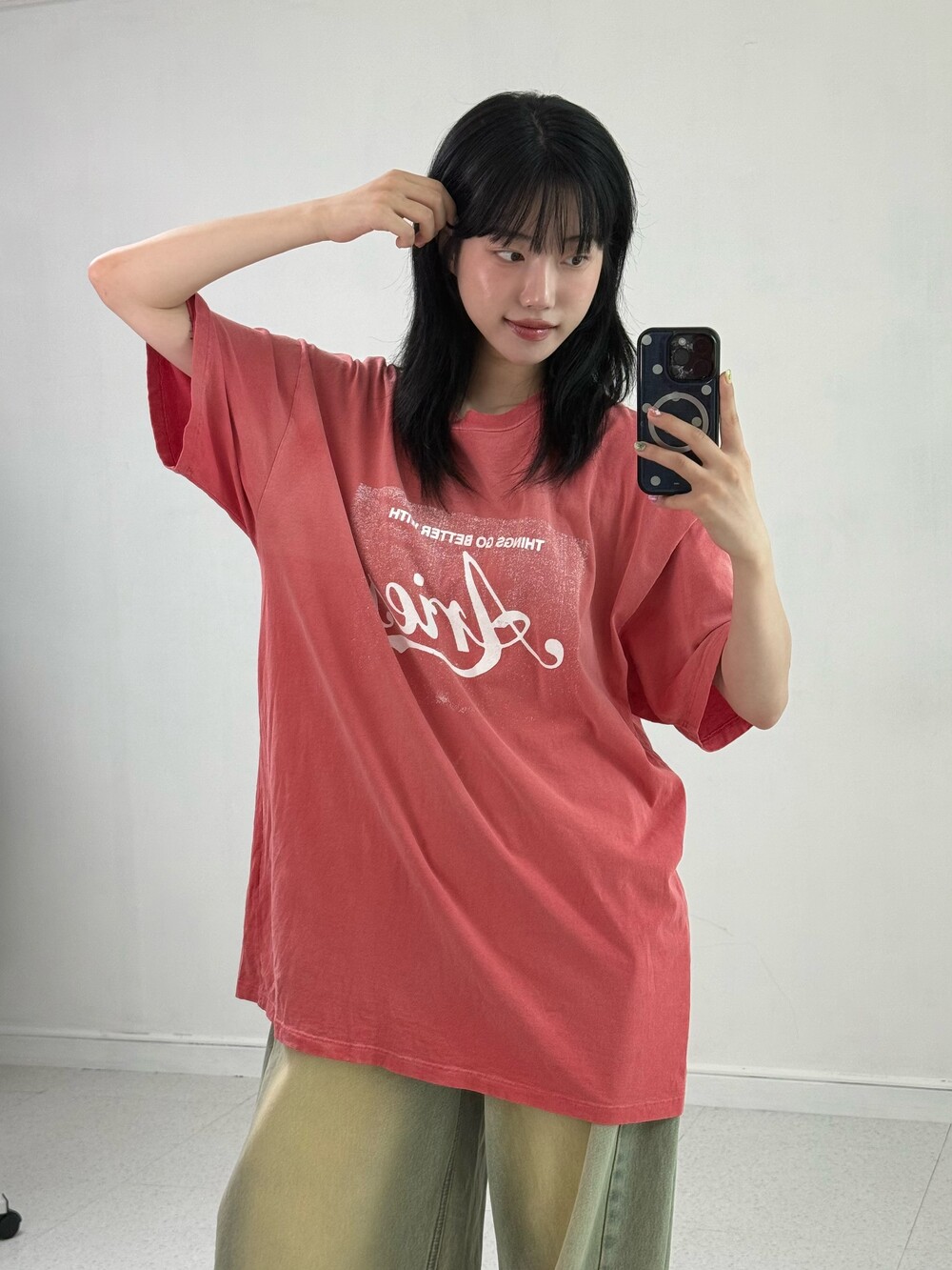 •에리즈의 워싱 핑크 반팔티셔츠 입니다! 남녀공용 오버핏으로 착용가능한 아이템이에요!