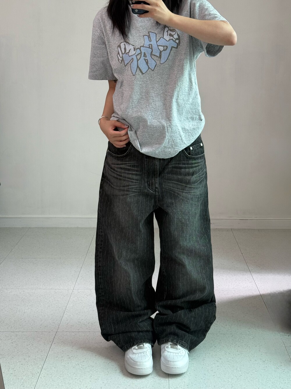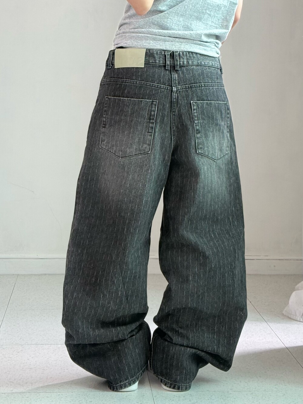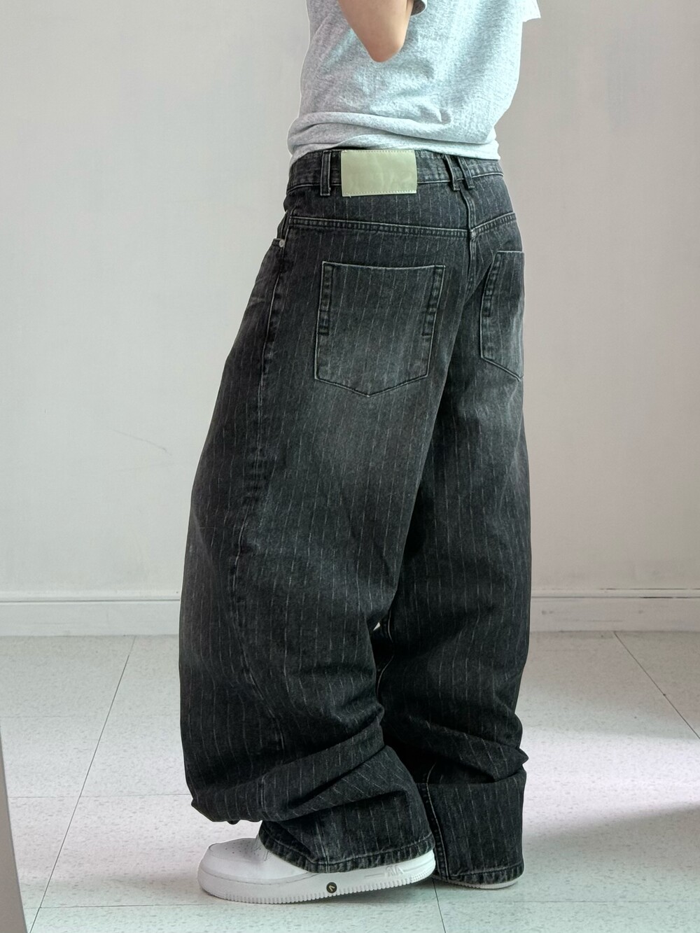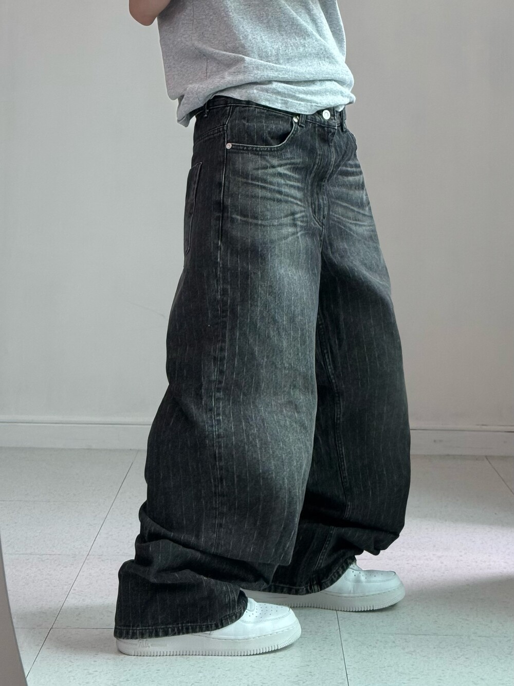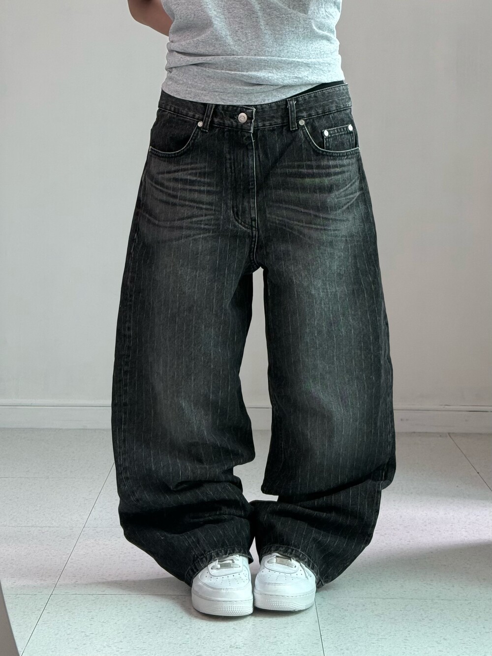 •Satur의 스트라이프 데님팬츠 입니다! 와이드루즈핏+묵직한 아웃핏이 넘 예뻐요 ㅎ.ㅎ