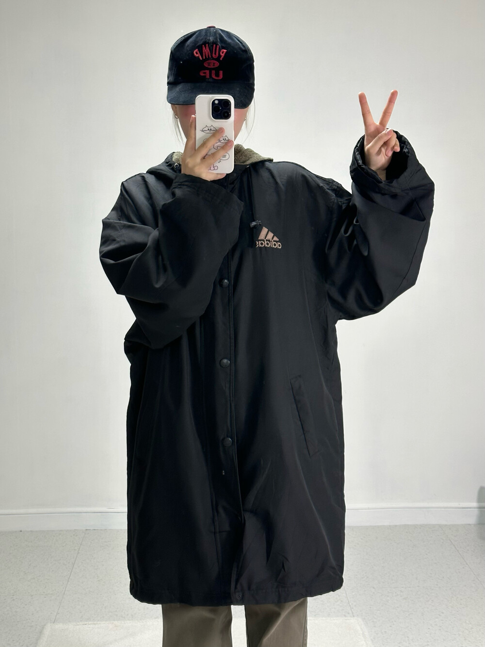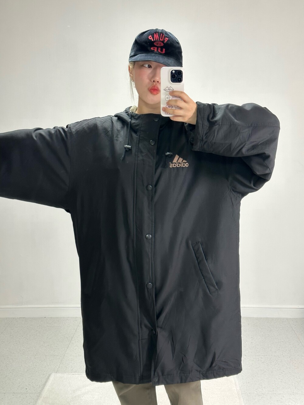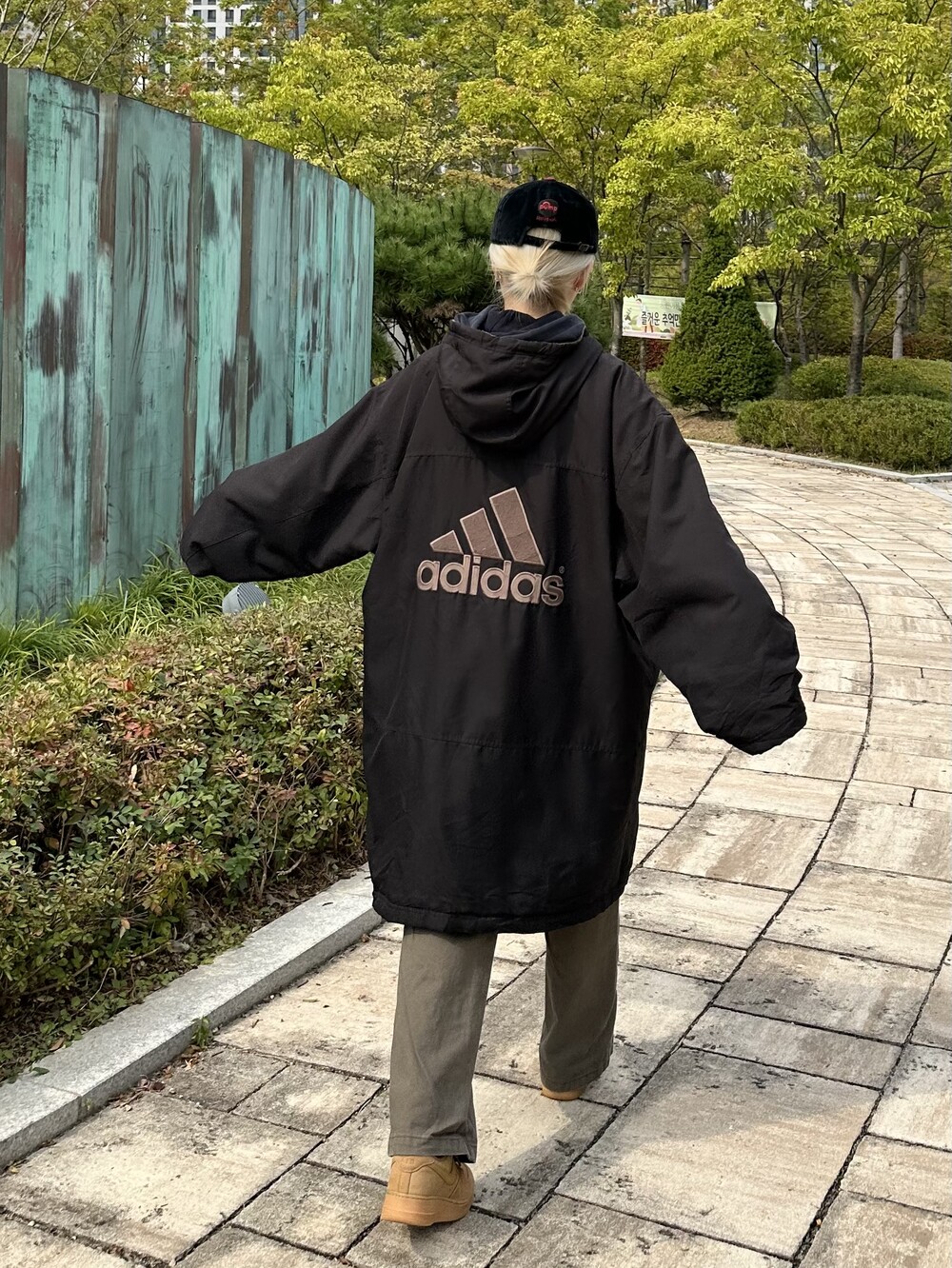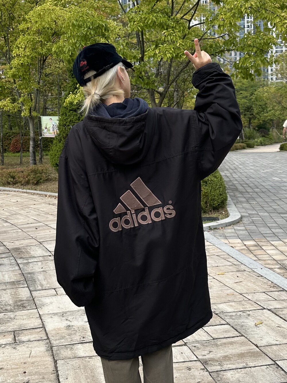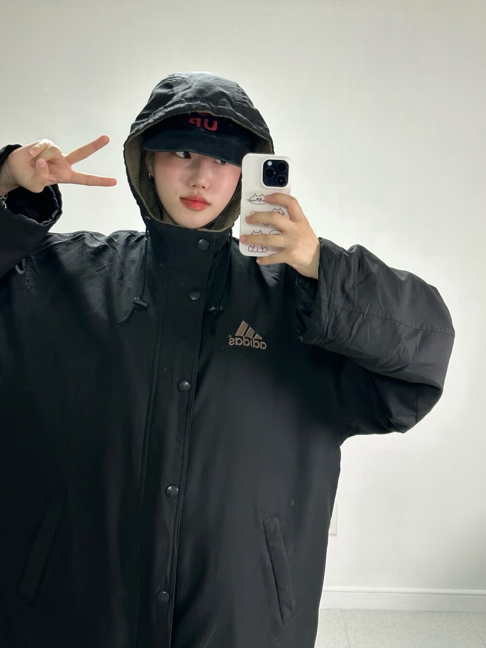 •대대장 아디다스 빅로고 돕바 입니다! 블랙에 브라운 로고 조합이 넘 예쁘더라구요..ㅜㅜ 핏도 아방폭닥하게 떨어지고 정말 사랑스럽게 착용하기 좋은 제품입니다 ㅎㅎ 심지어 투웨이에요!
