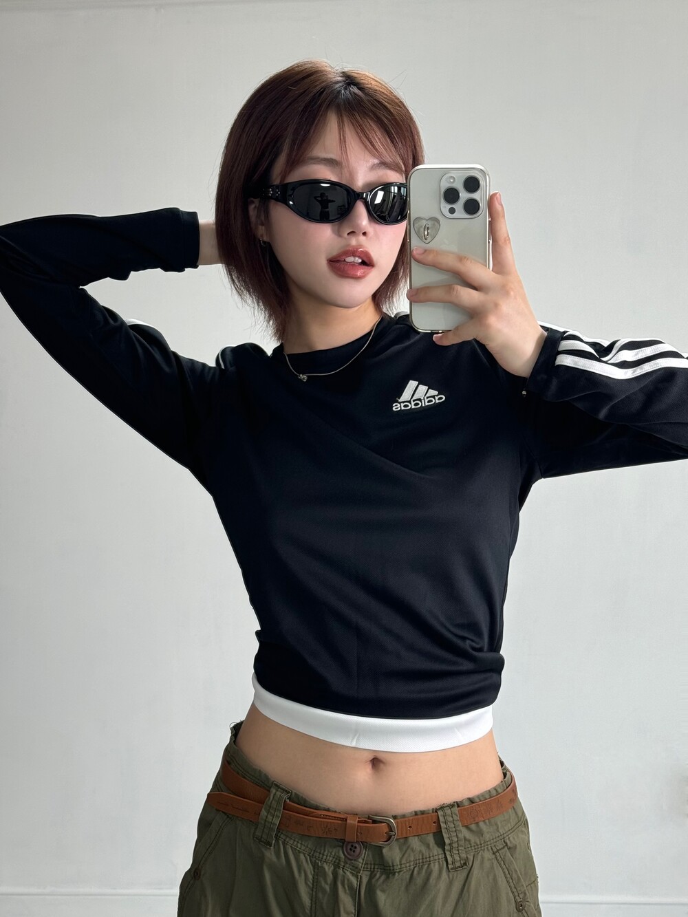 •식구님들께서 보자마자 제니깔 아니냐며~~ 하셨던 데일리템이에요ㅎㅎ 기능성 원단이라 땀흡수,통기성도 아주 굿 입니다! 저처럼 살짝 말아 올려서 입으면 더 예쁜듯해요 !