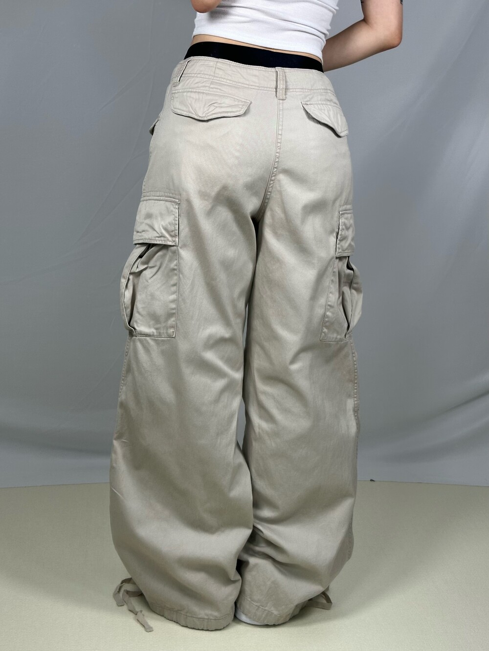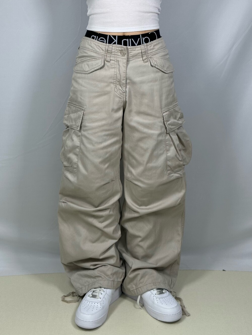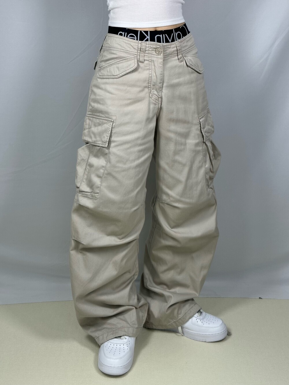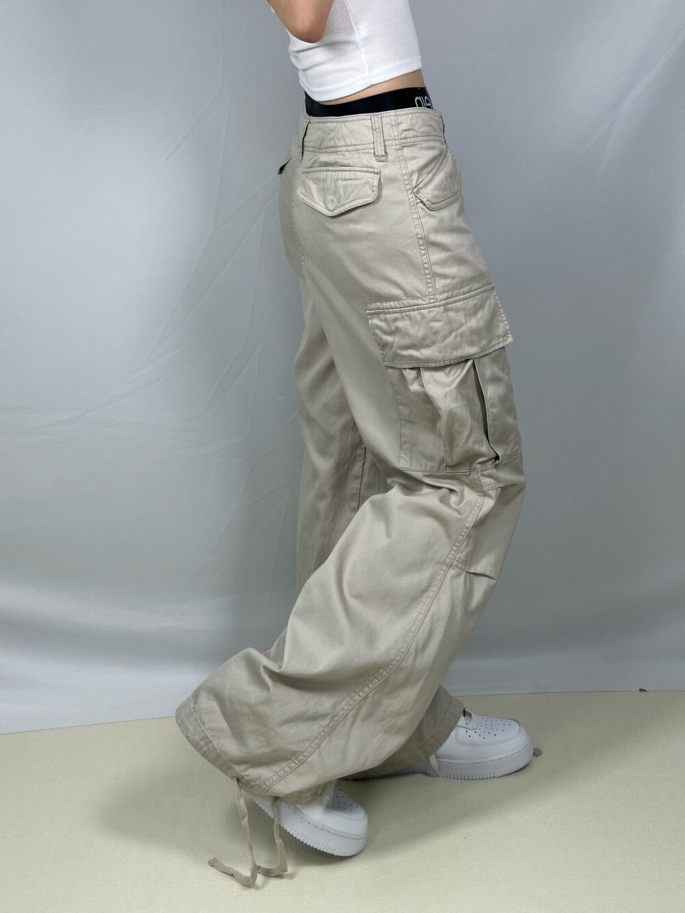 •아이보리 컬러의 와이드 루즈핏 카고팬츠에요! 입자마자 넘 예쁘다는게 느껴지더라구요!!!!무릎 핀턱 디자인이 들어가 루즈한 느낌이 멋스럽게 연출되어 강추 드리고싶은 제품이에요:)