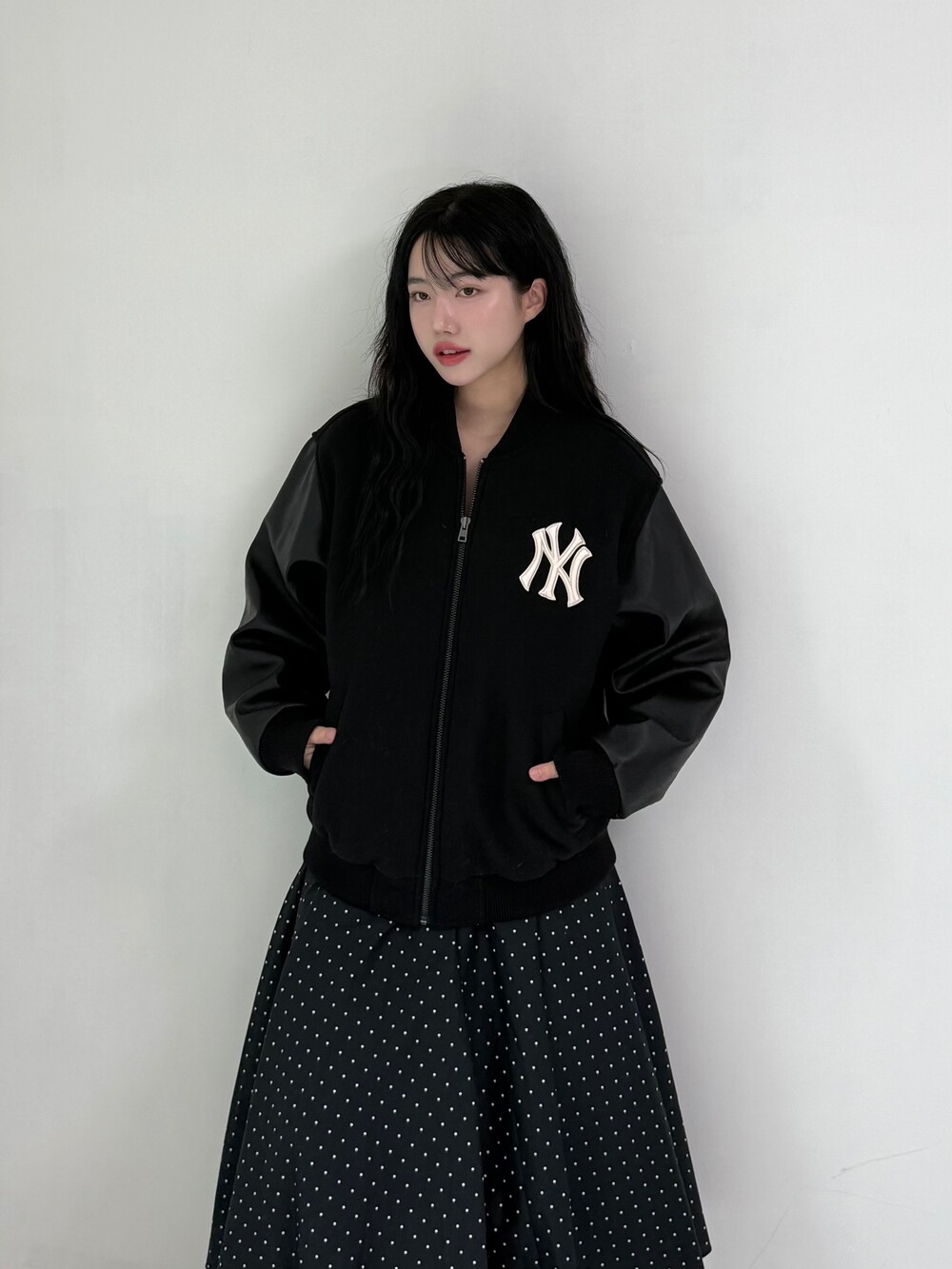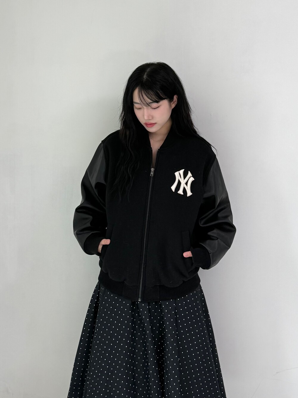 •엠엘비 뉴욕 양키즈 모노 프리미엄 바시티 자켓 입니다! 레더와 울 소재가 믹스되어 굉장히 따뜻하고 생각보다 무겁지 않아서 더 좋았어요! 그리구 소매 디테일 넘 좋죠..🖤 (현재 25만원에 판매중인 제품 입니다)
