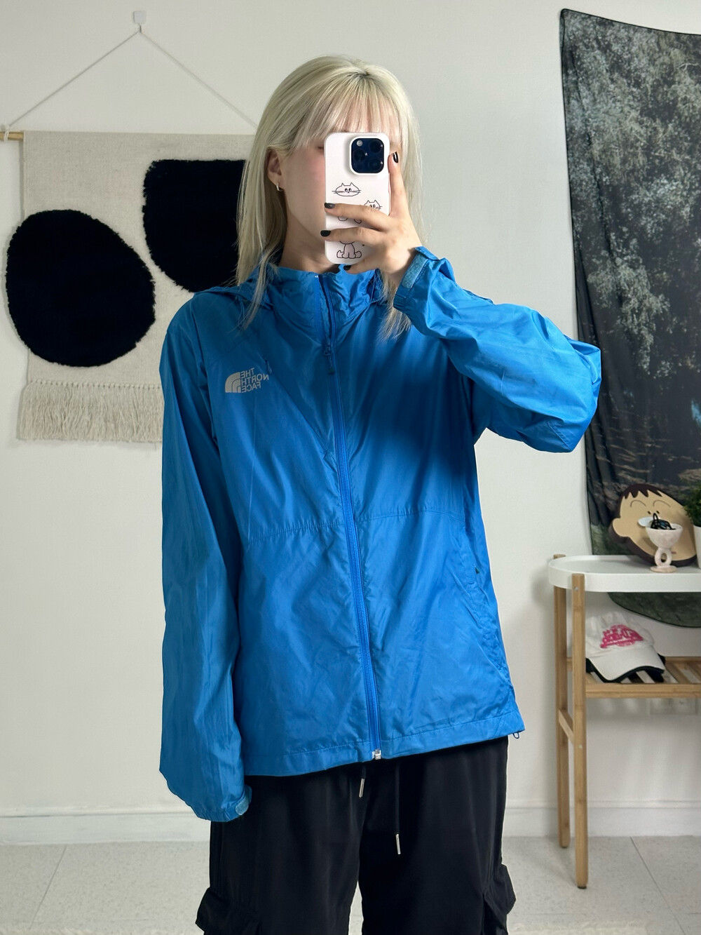 The north face windbreaker(blue)