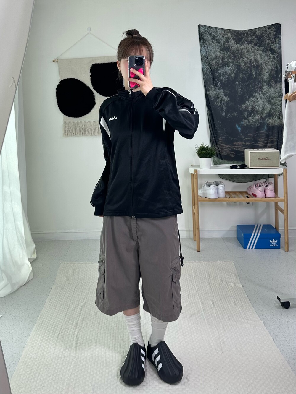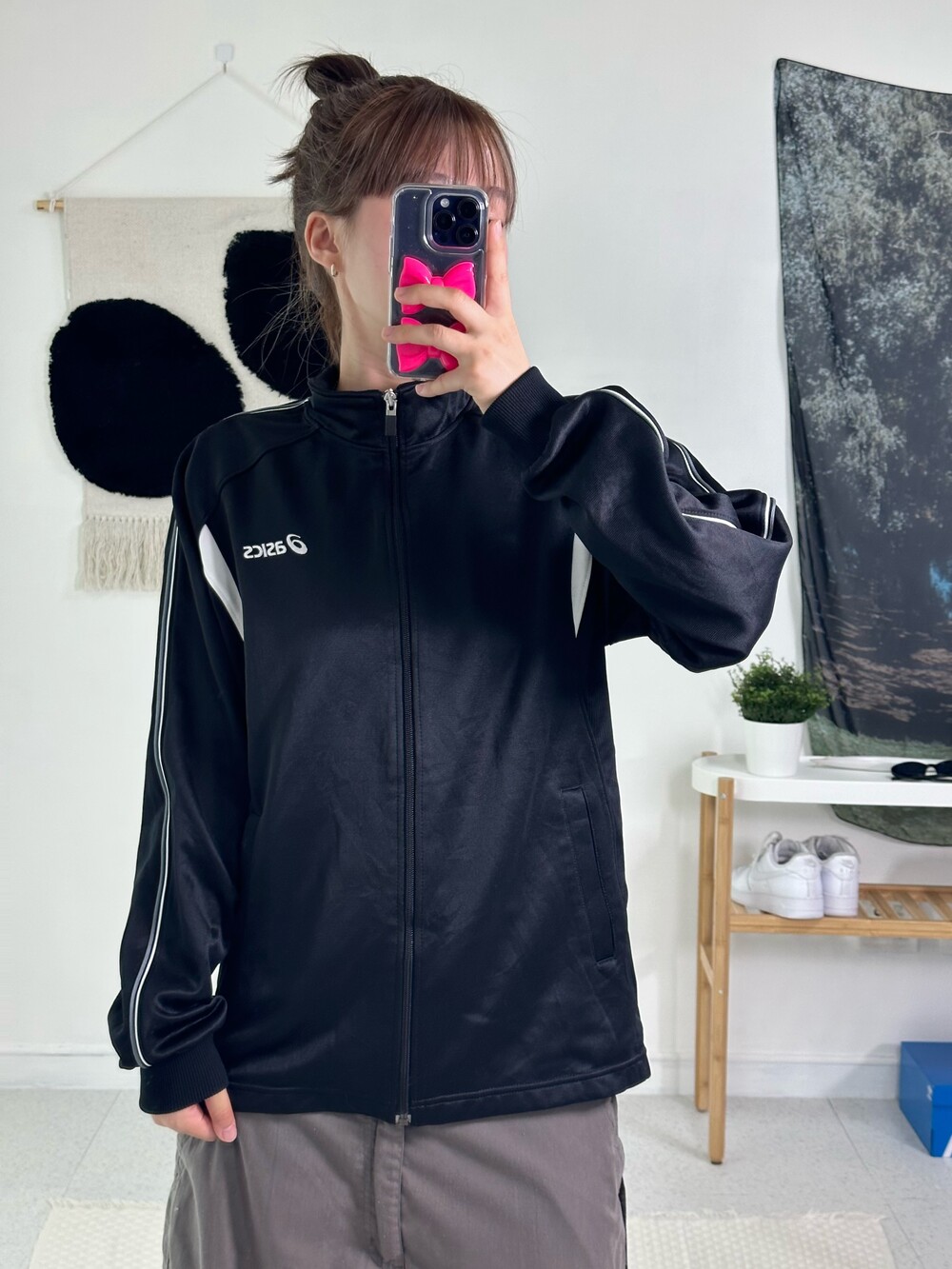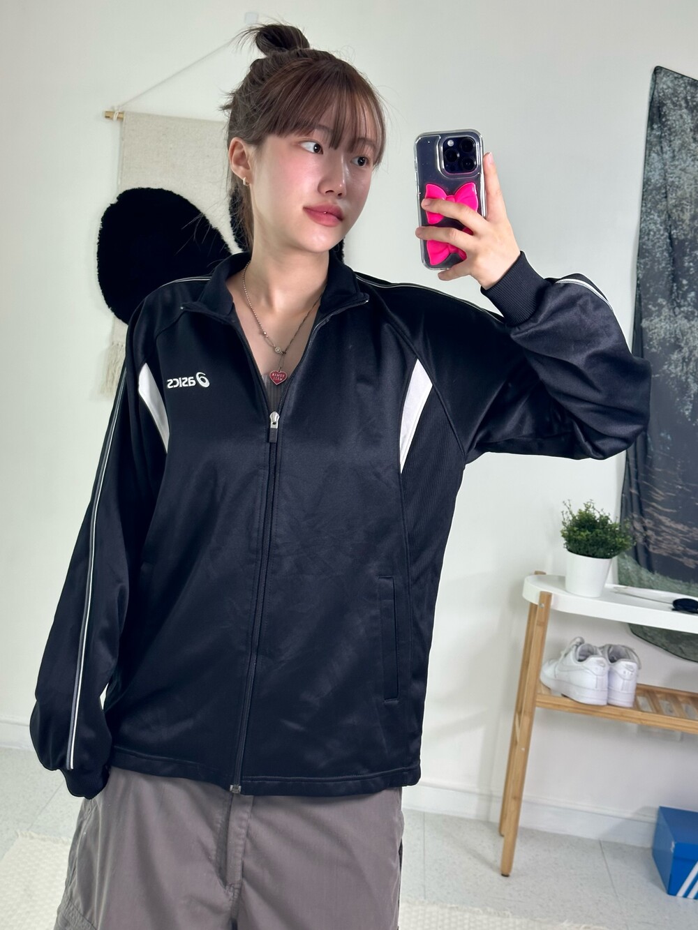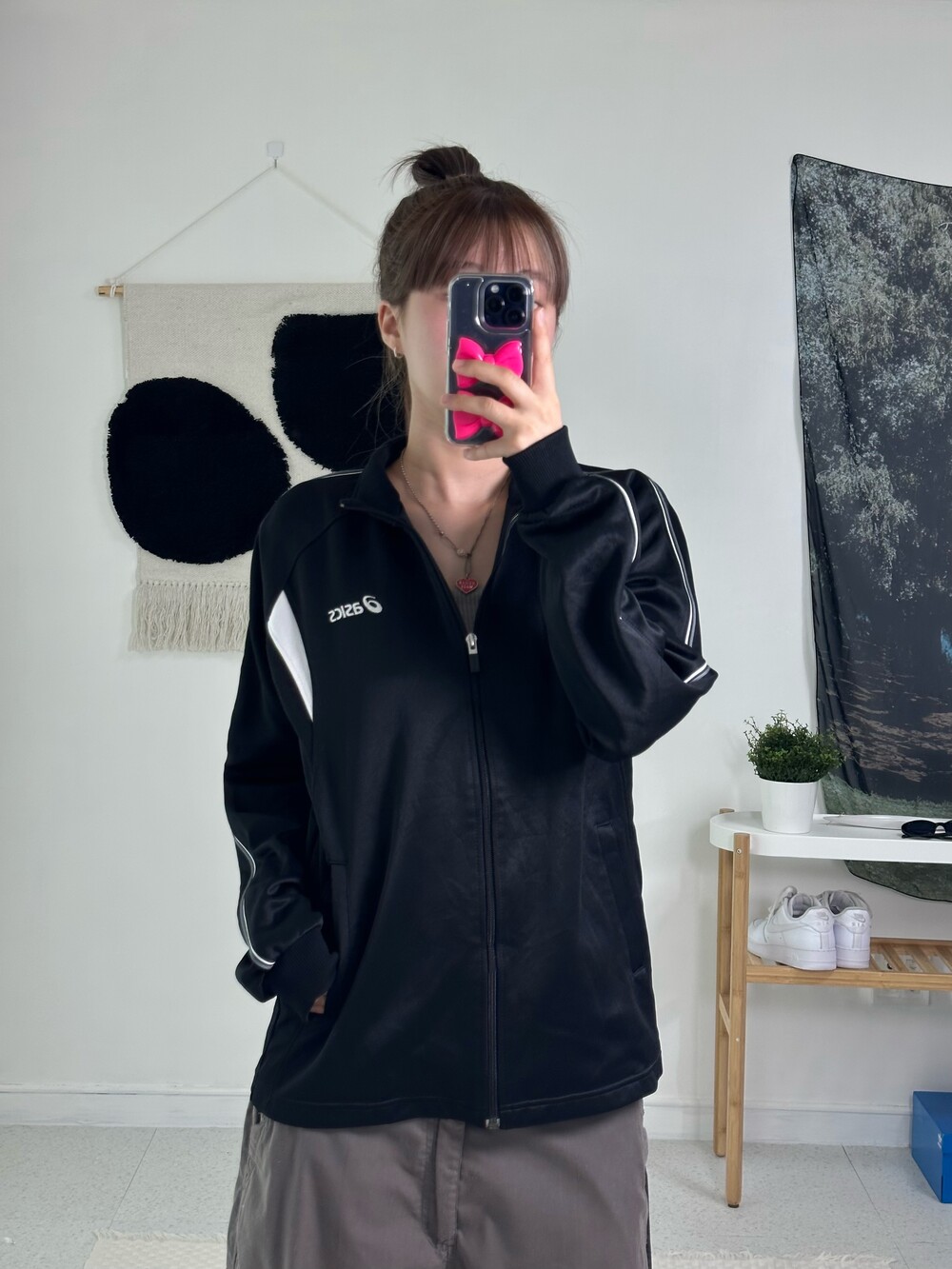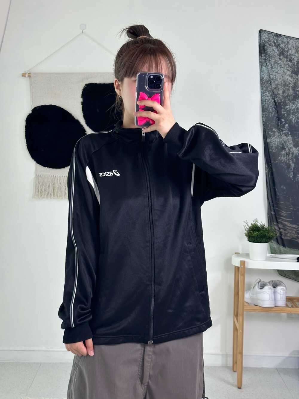 •블랙과 화이트의 범고래 스타일 아식스 져지에요! 낭낭한 루즈핏에 여리여리한 핏으로 연출되는 제품이라 더 자신있게 추천드릴 수 있어요<3 아식스 신발이랑 같이 코디해주면 넘 잘어울릴듯요ㅎㅎ