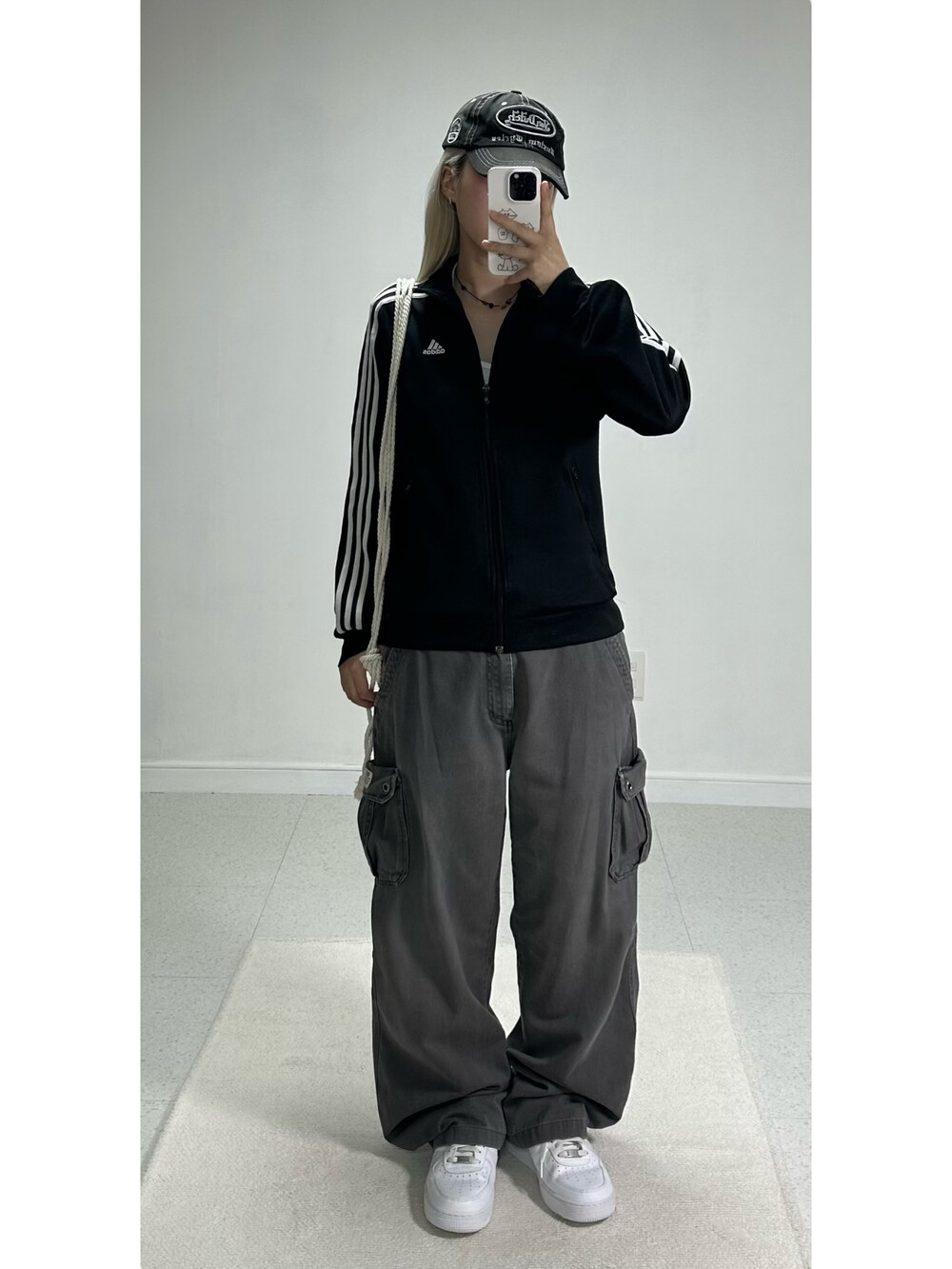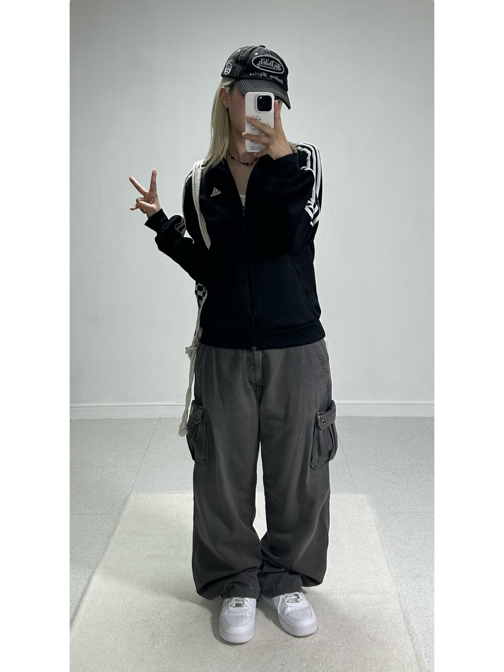 •오랜만에 제 심장을 두근거리게 한 그레이 카고팬츠가 나타났네요.. 완전 제 픽이구여.. 사이드 포켓도 귀엽게 들어가있고 와이드 루즈핏에 걸을때마다 멋스러움 뿜뿜이라 완전 강추 드려요!