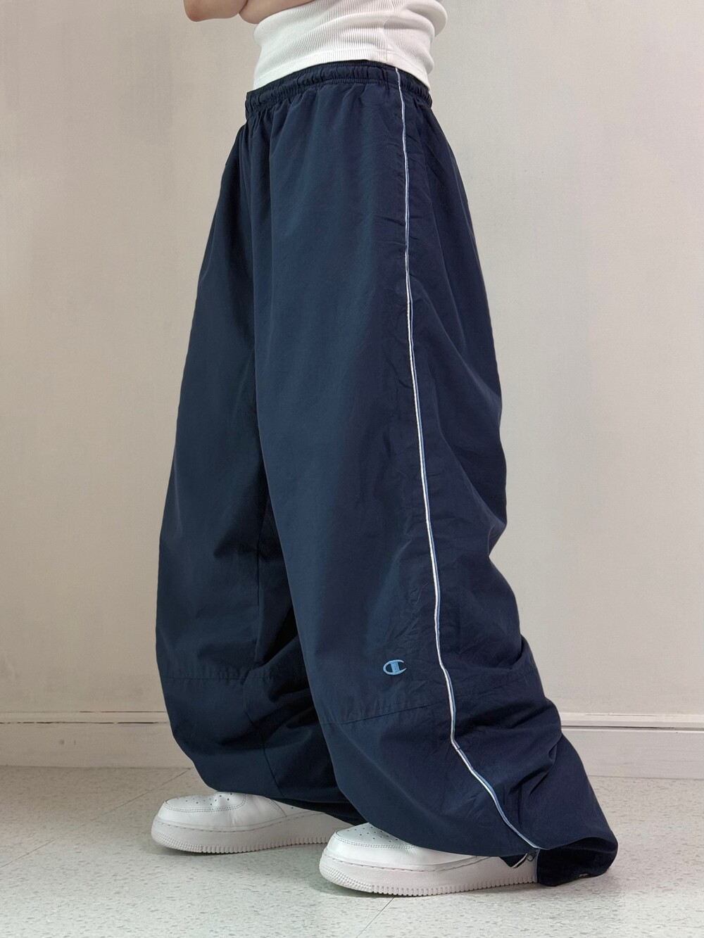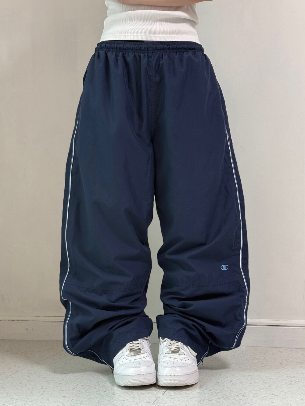 •챔피온 네이비 트랙팬츠 입니다! 무릎쪽 스카이블루 로고 넘 귀엽지요 히히 핏도 아방루즈하구 색감+핏 다 만족-!