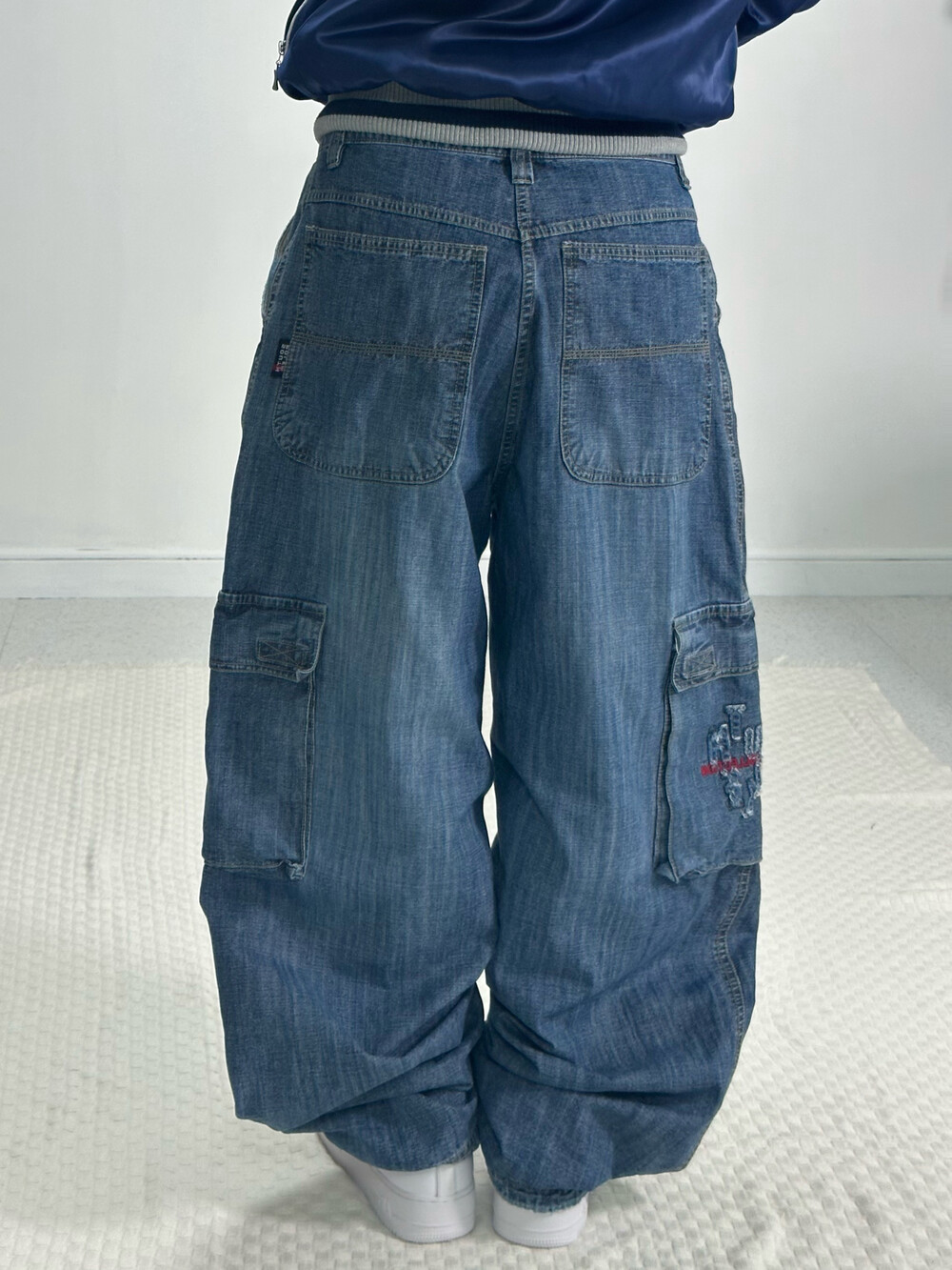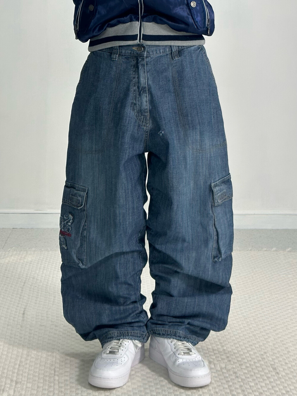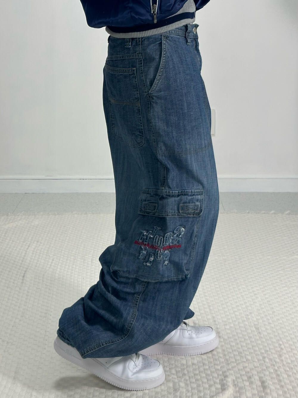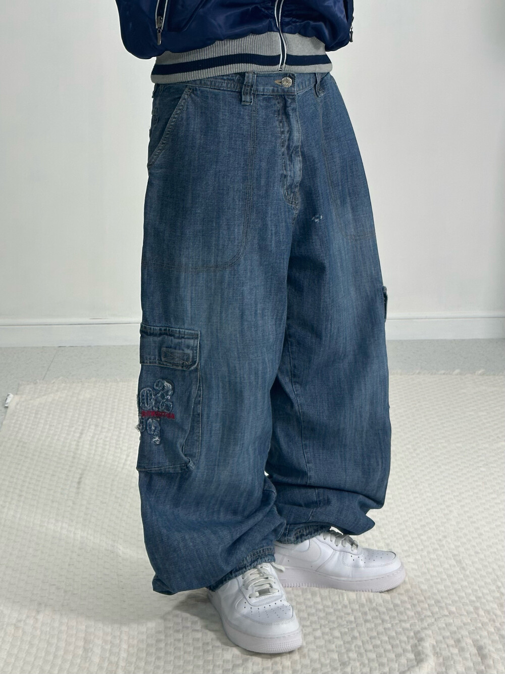 •완전 와이드핏 데님카고팬츠에요! 묵직하고 기장이 길어 밑단쪽으로 잡히는 자연스러운 주름이 멋스러운 팬츠입니다 ㅎㅎ 밑단이 살짝 조거 느낌이 있어 신발위로 안착됩니다 길어서 밑단 끌고다닐 걱정 없이 편안하게 입어주세요!:)