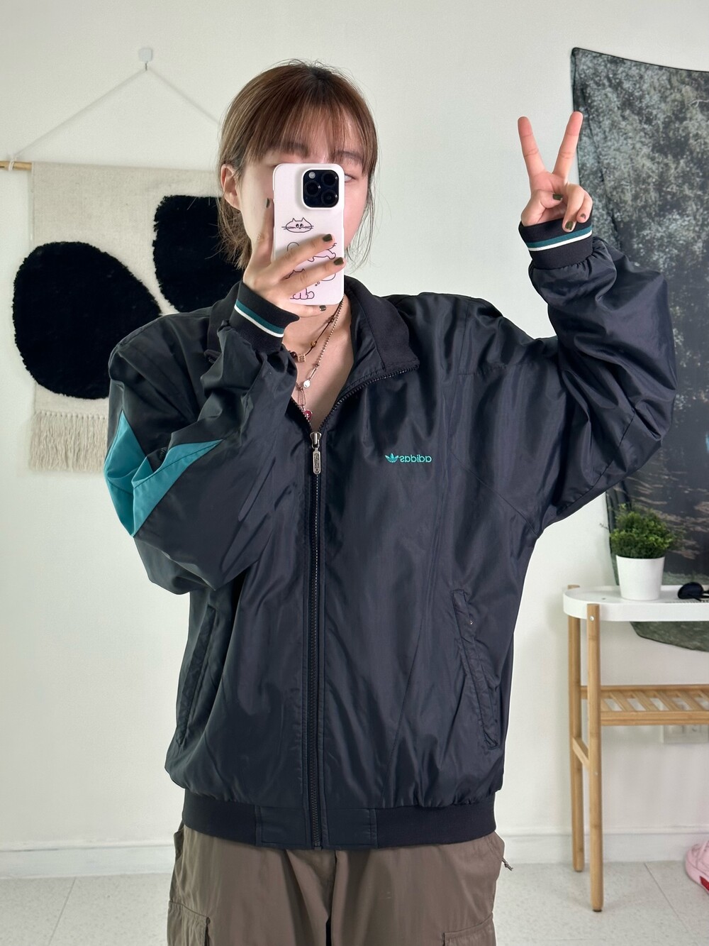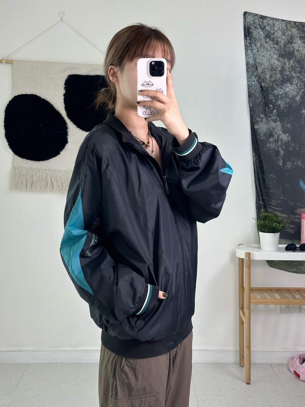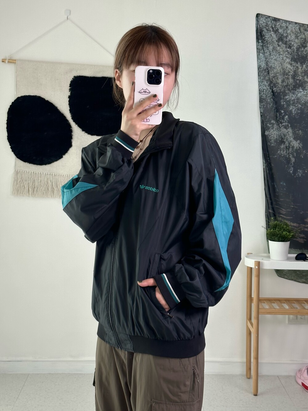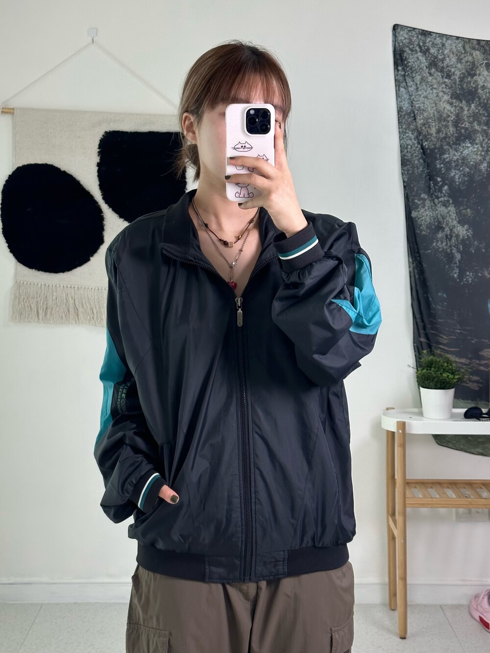•블랙,청록 조합이 올드스쿨 분위기를 뿜뿜 내는 집업이에요- 바스락 원단에 독특한 디자인을 가지고 있어 흔하지 않아 좋답니다! 아방하게 떨어지는 핏이라 큐트스포티 느낌으로 착용해주시면 됩니다ㅎㅎ 가을에는 무조건 필수템이니.. 살포시 추천드려봅니닷 시보리 상태도 아주 굿
