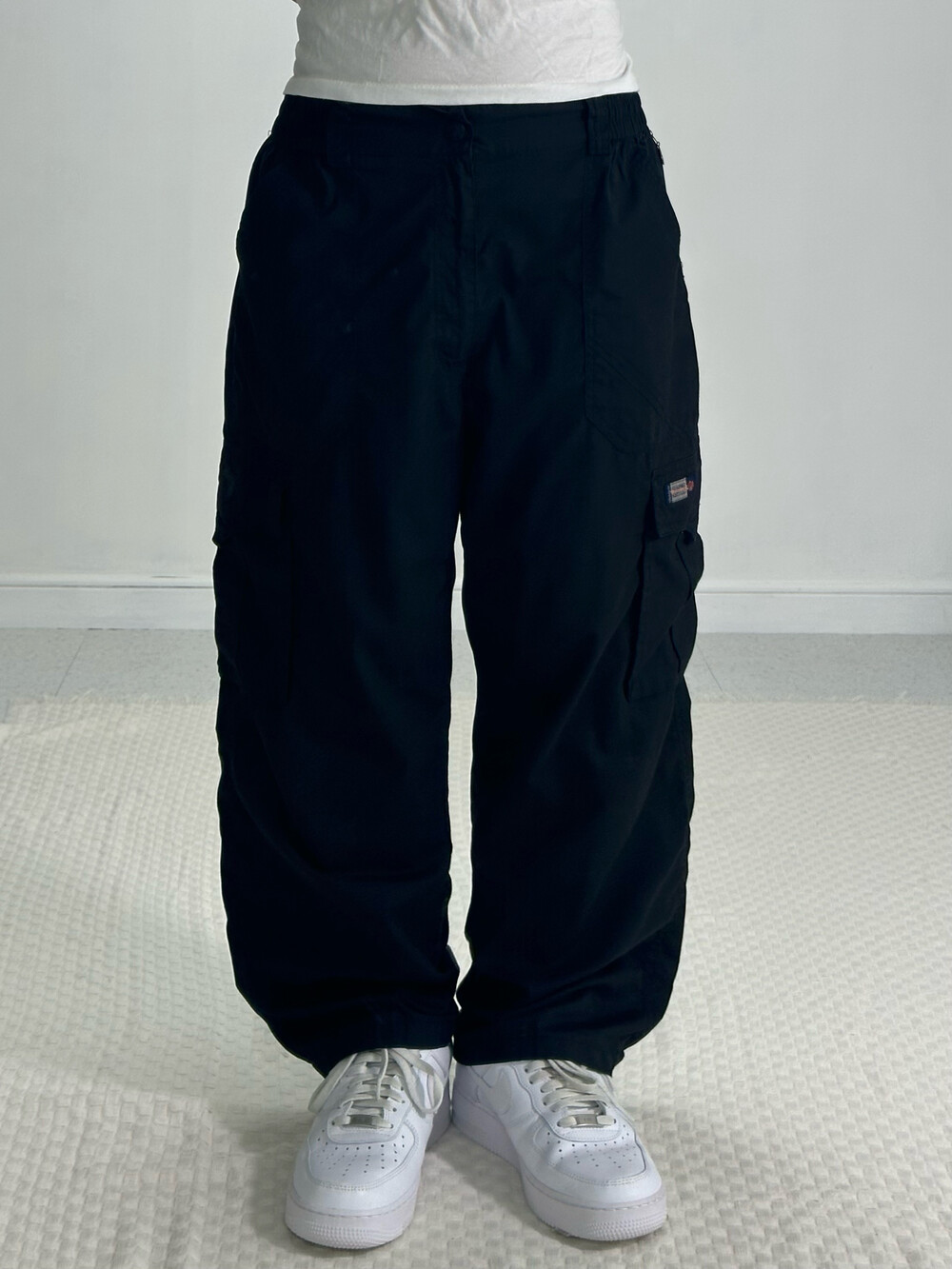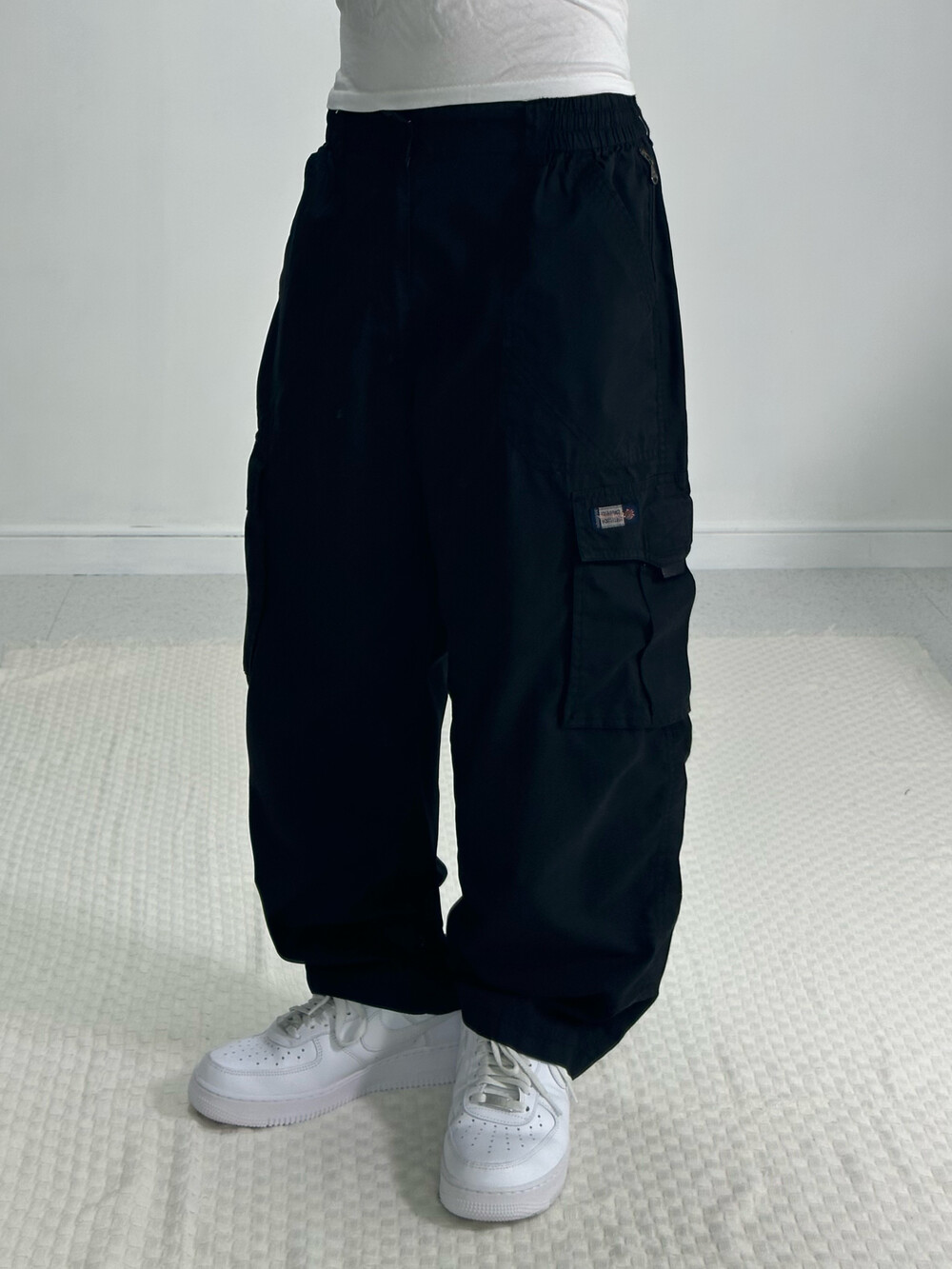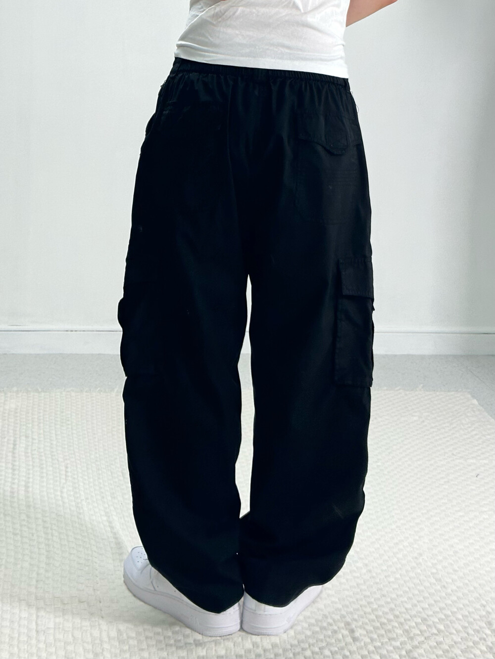 •무오데 인기 디자인 블랙카고팬츠에요! 원단이 가벼운걸 선호하시는분께 추천드리구! 깔끔하게 떨어지는 핏입니당-