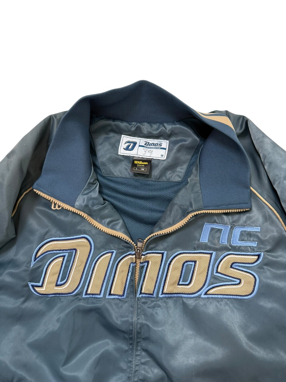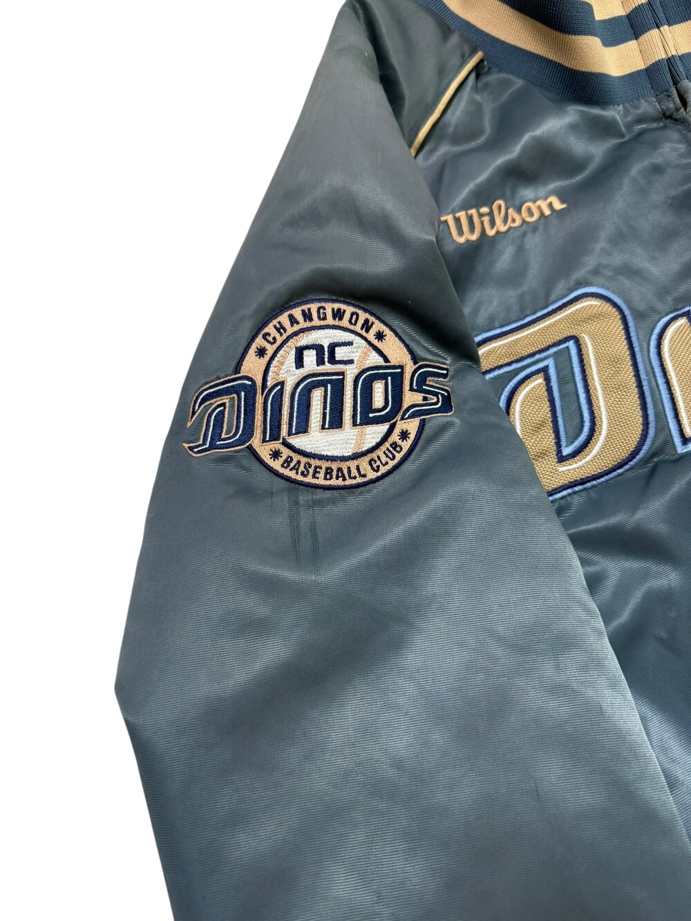 •윌슨 NC 다이노스 야구점퍼 입니다! 색감도 뮤트 블루에 골드 조합이라 독특하고 넘 예뿌요