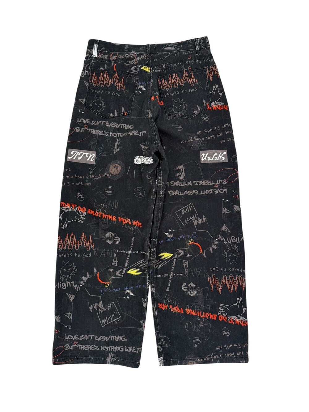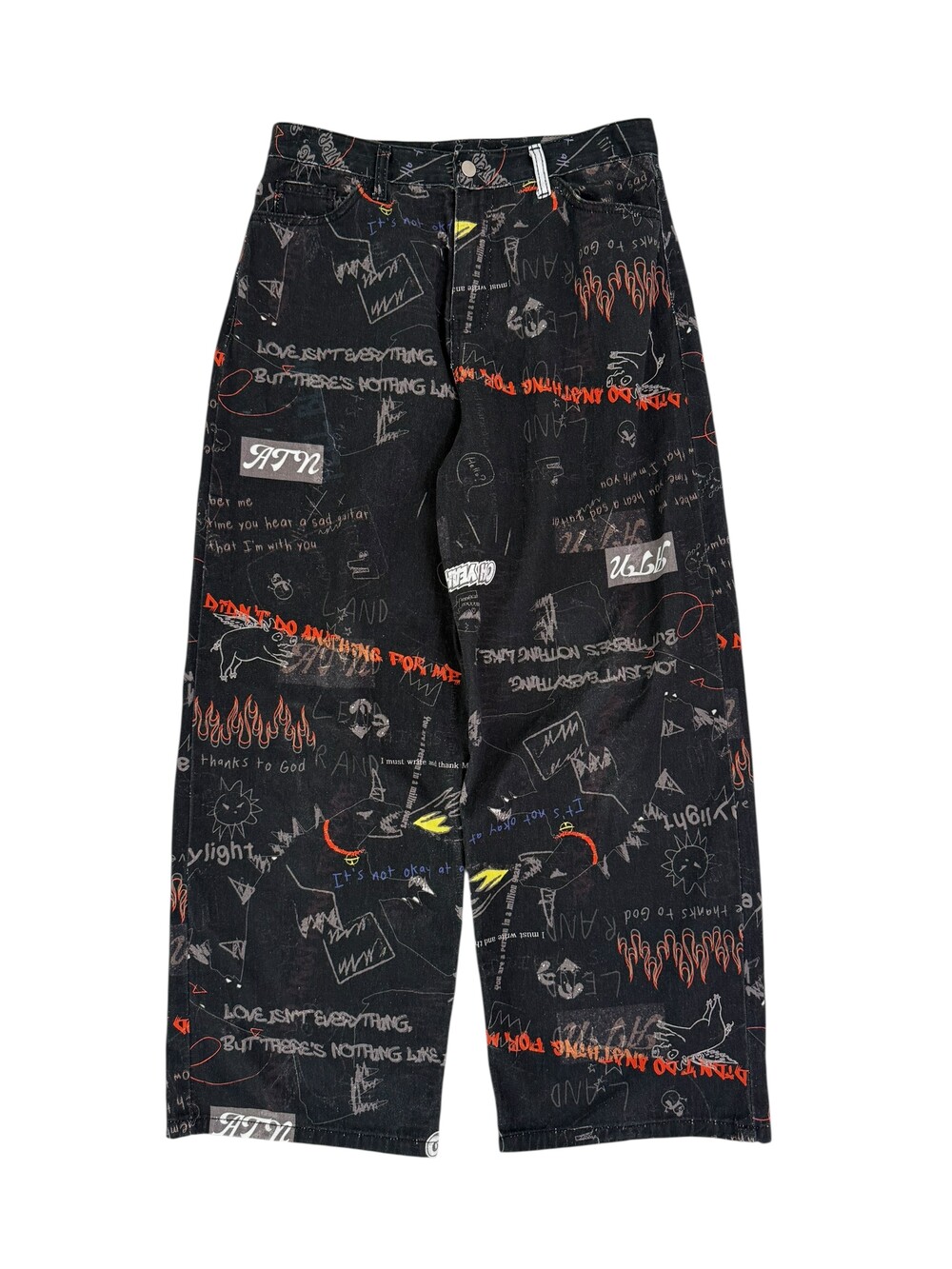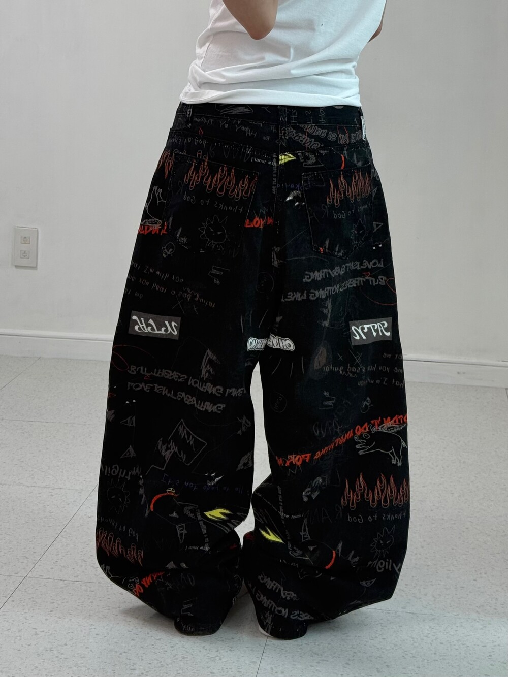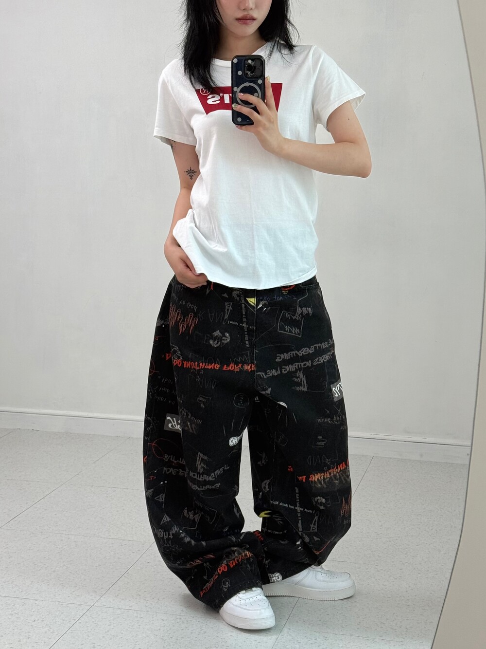 •힙한 와이드 후리추리한 핏이 멋진 블랙 페인팅st 팬츠 입니다! 올블랙 룩에 슥 입어주셔도 좋아요ㅎㅎ