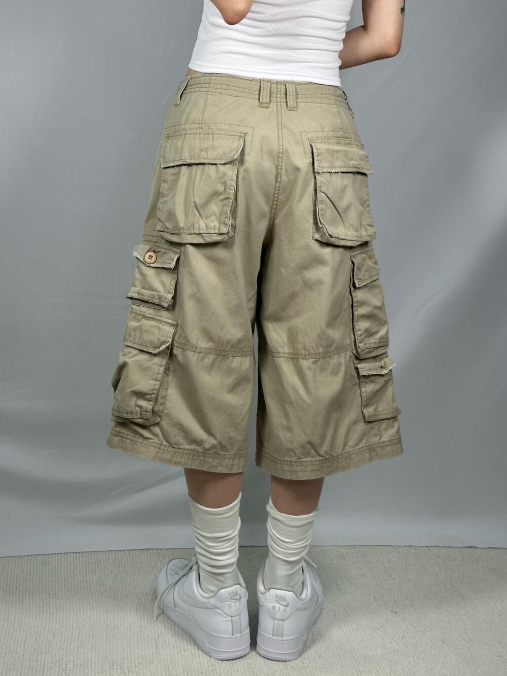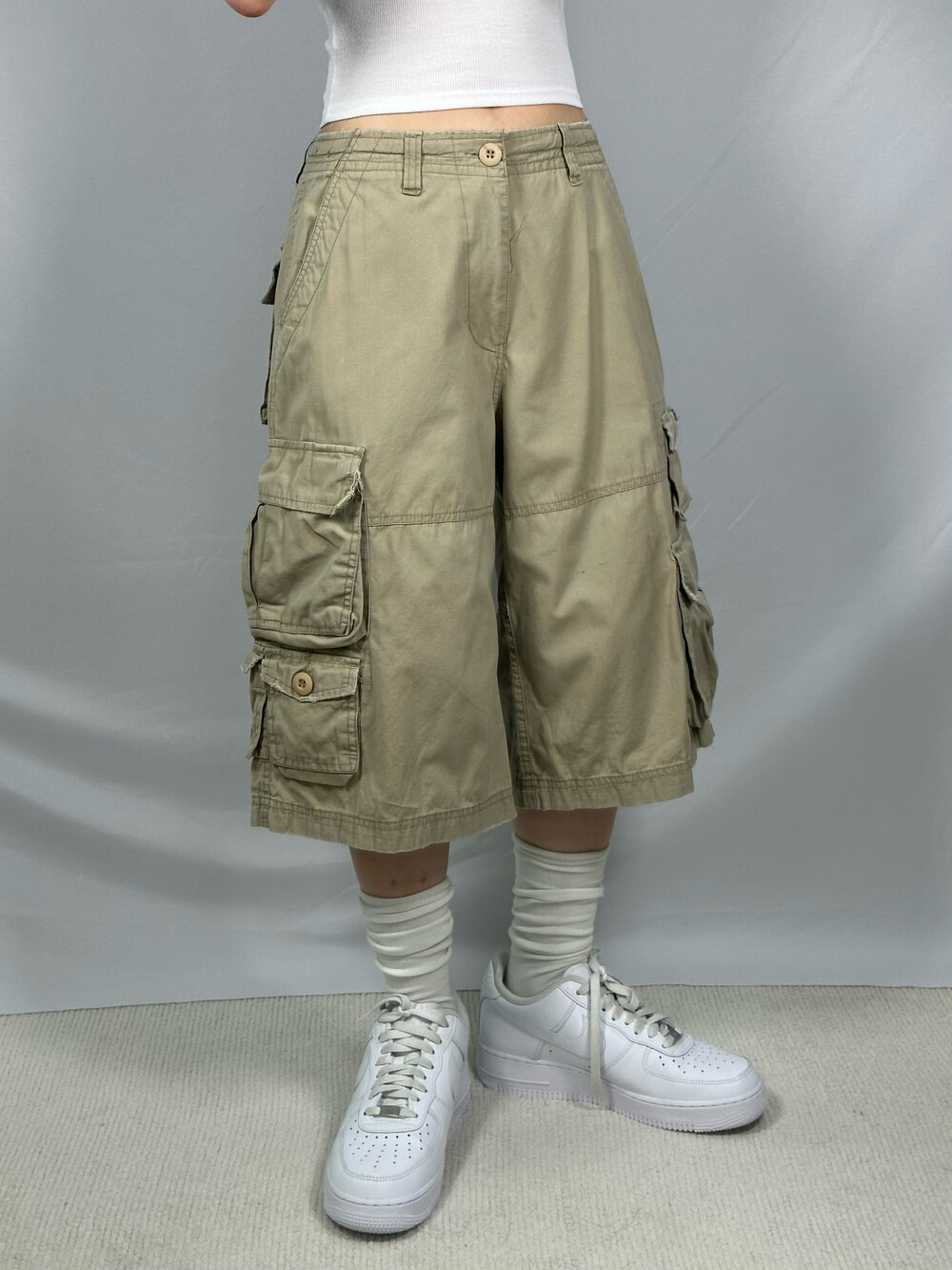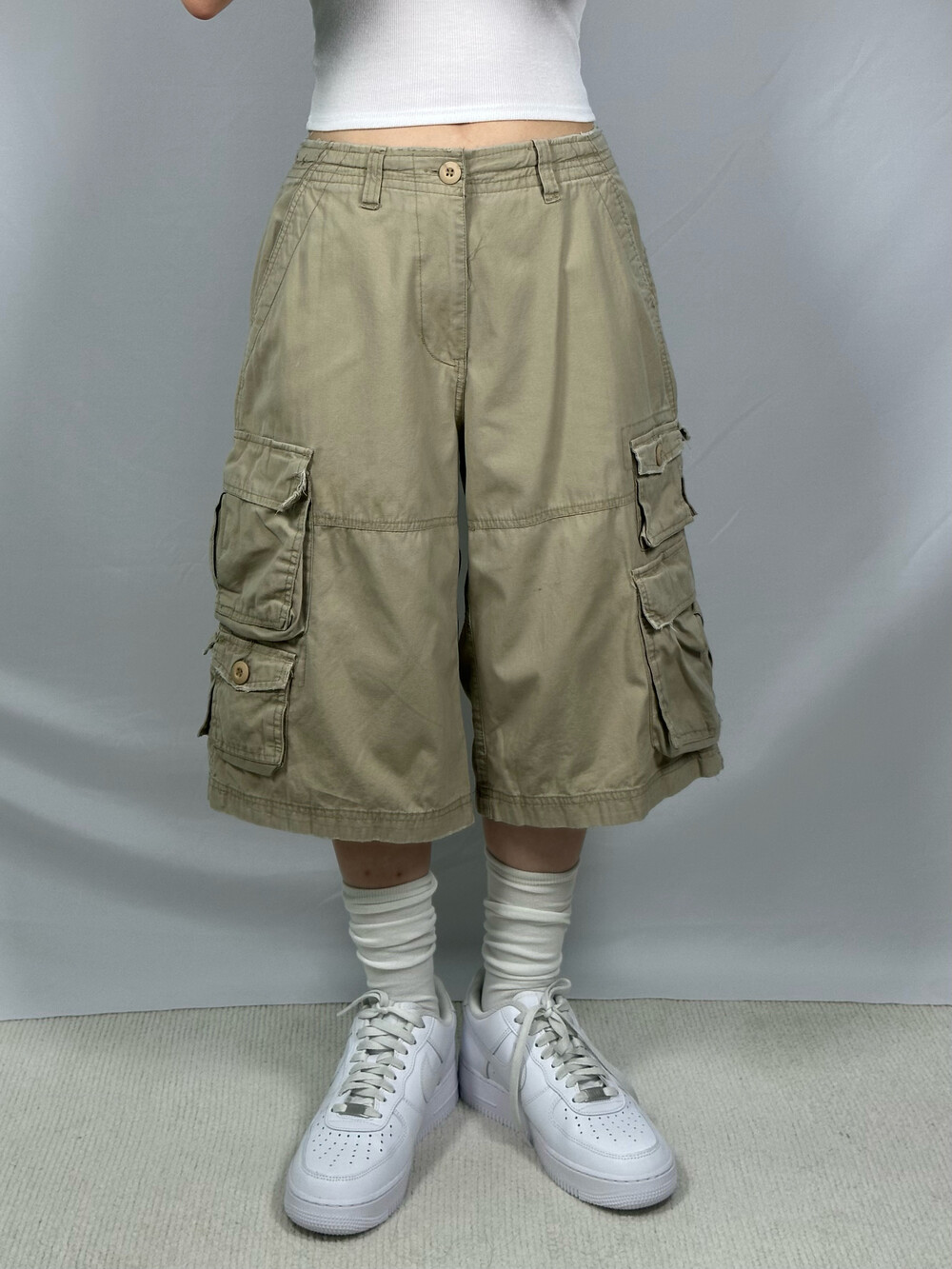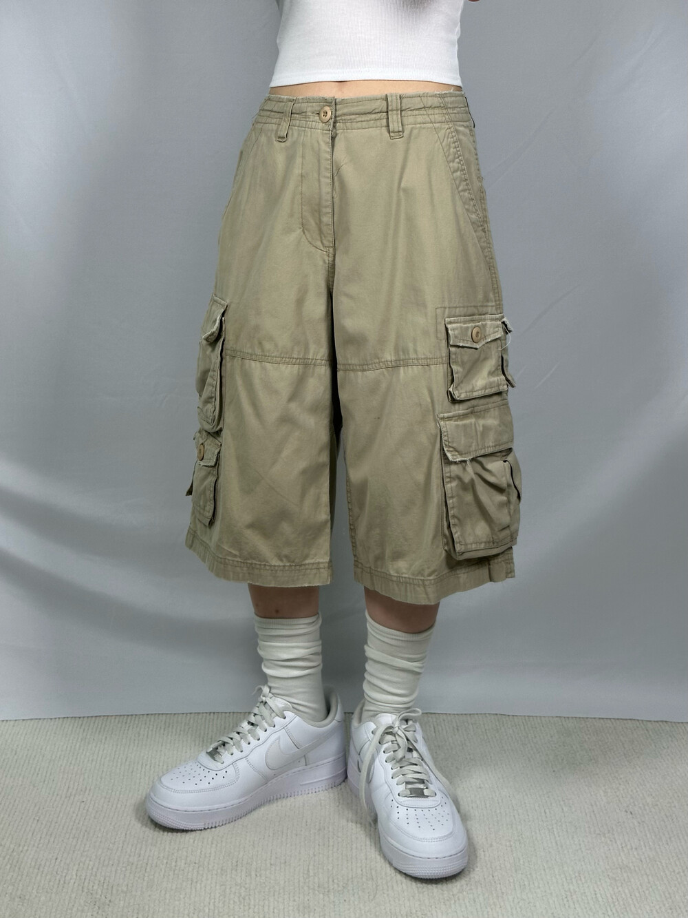 Beige loose fit half pant