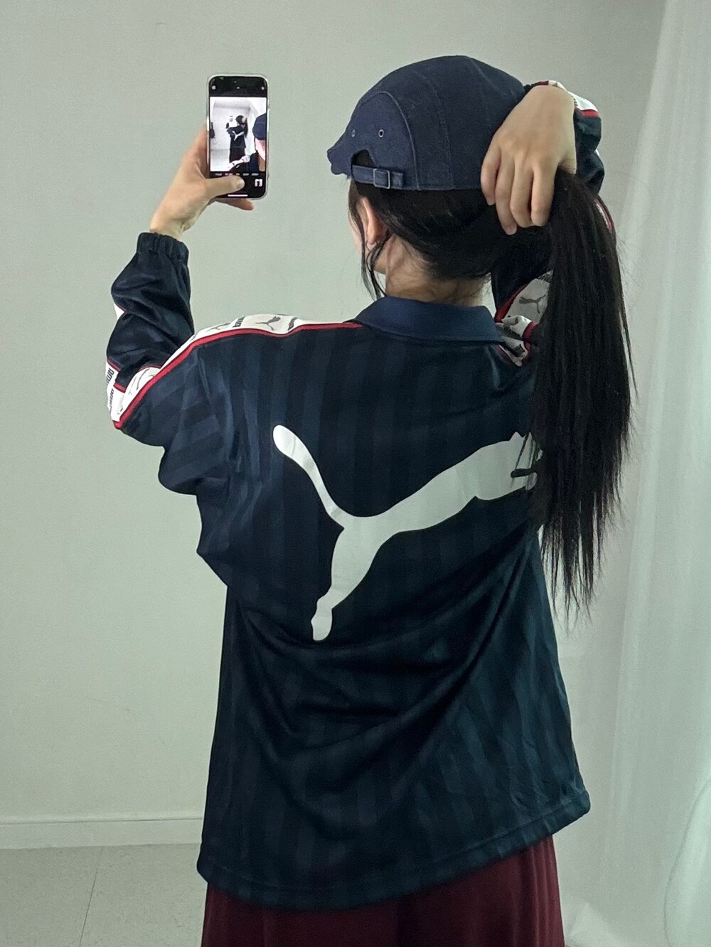 •아방핏 네이비 퓨마 져지에요! 사이드트랙이 넘 예쁘구 뒤에 빅로고가 포인트!