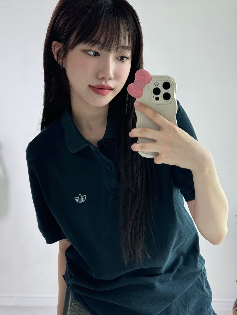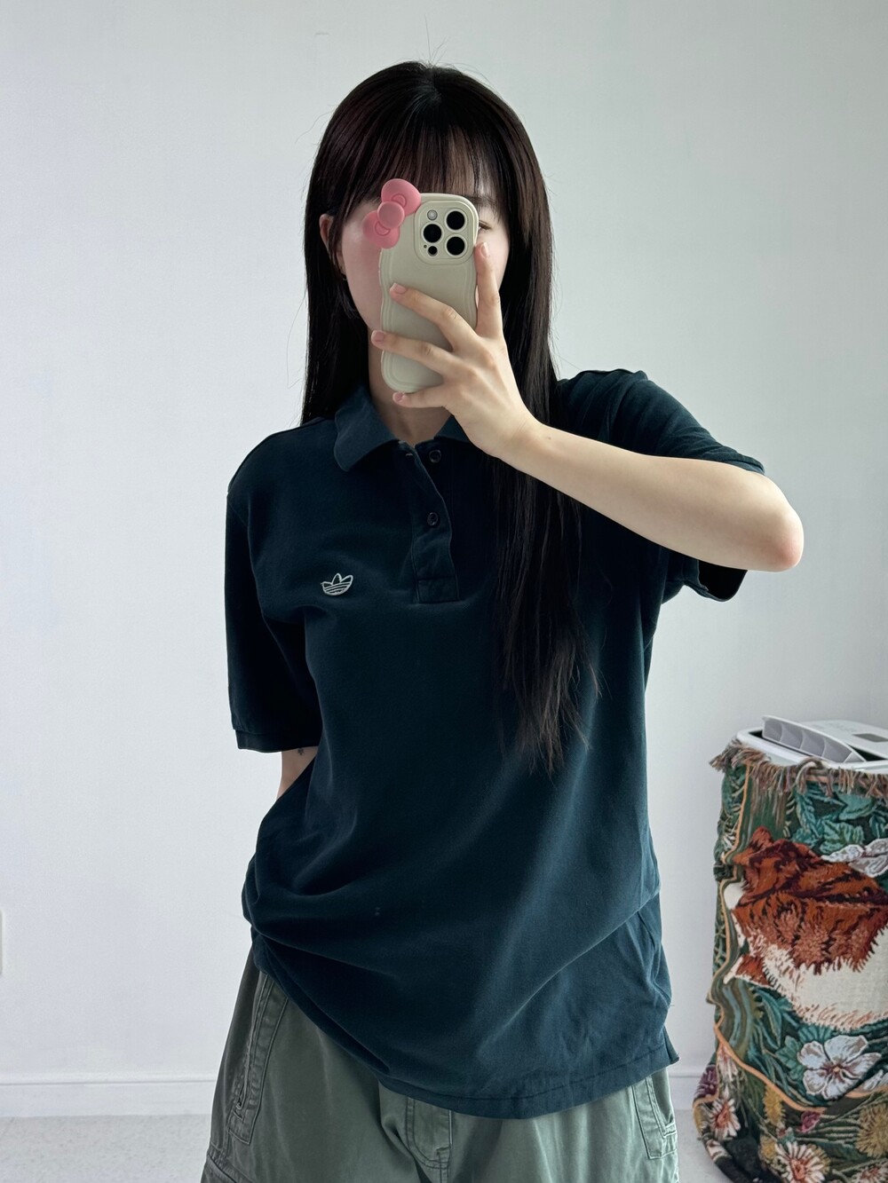 •아디다스 블랙 카라 반팔 입니닷. 미니 파이어버드 로고 패치가 넘 귀엽지요ㅎㅎ 핏도 후리추리.. 데일리 끝판왕이에요*^^*