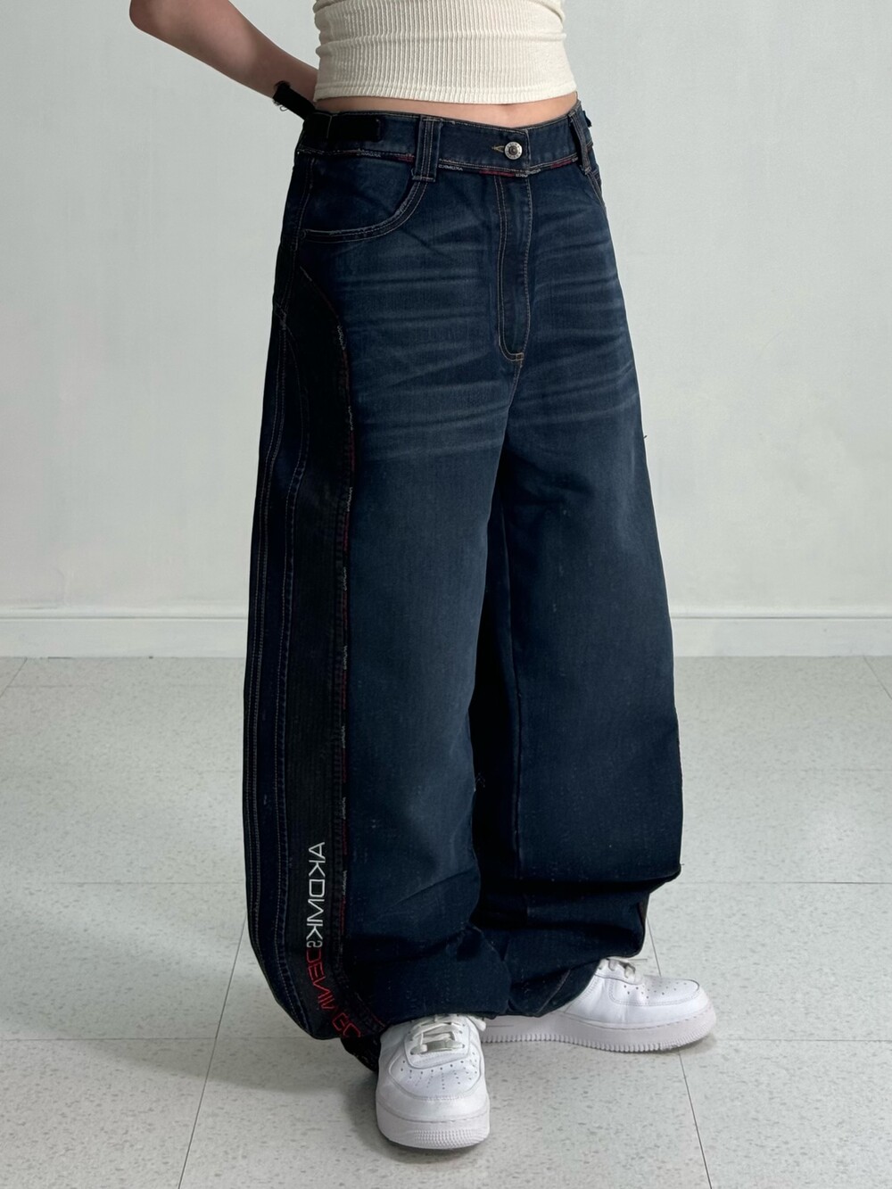 •와이드루즈묵직핏 데님팬츠 입니다! 사이드에 패치느낌으로 디자인이 들어가있어 디테일적으로 멋스러우며 롱한 기장이라 키가 크신 식구님들께서도 충분히 착용가능하신 아이템 입니다🖤