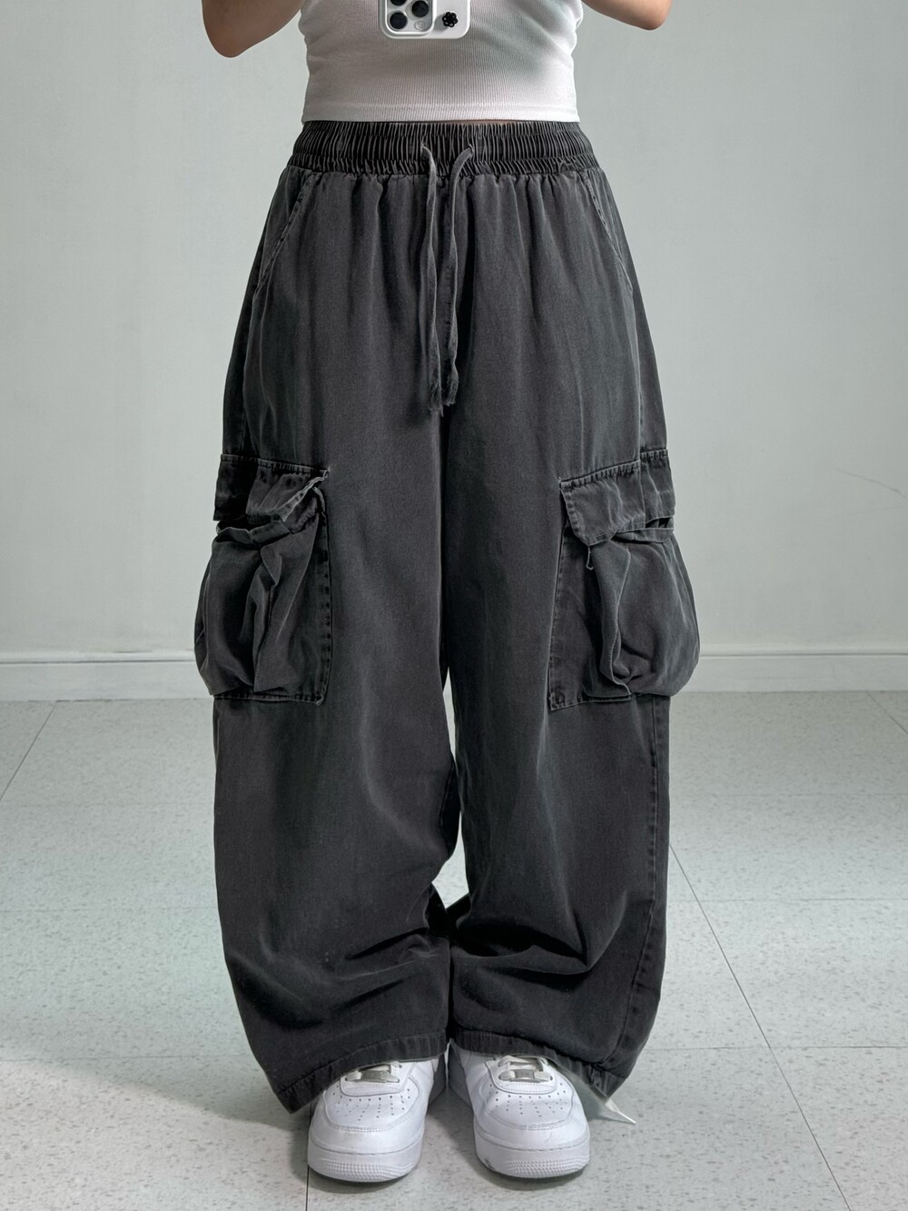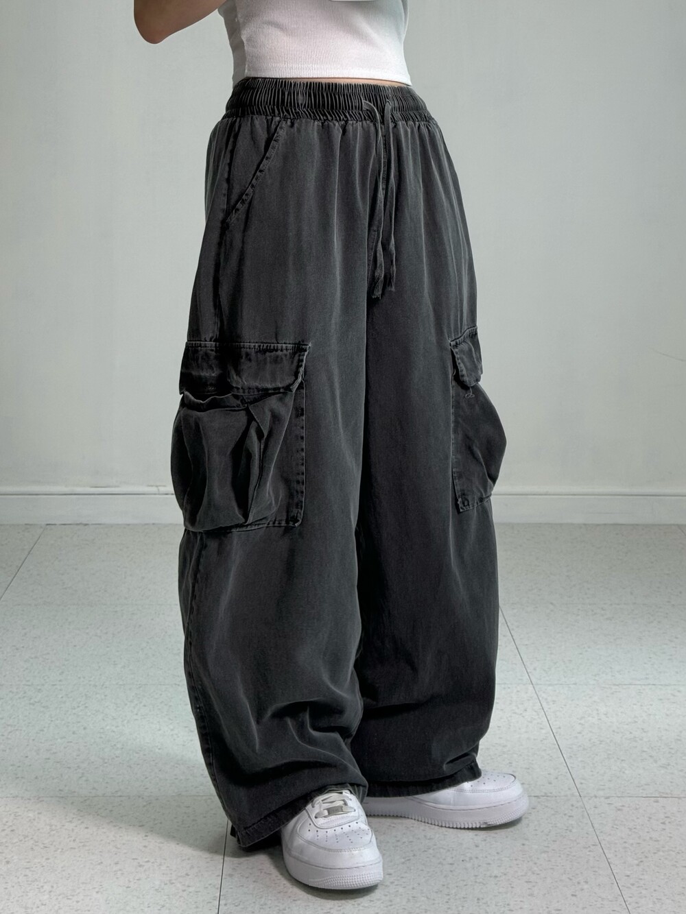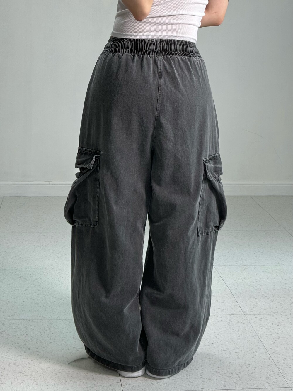 Gray wide cargo pants
