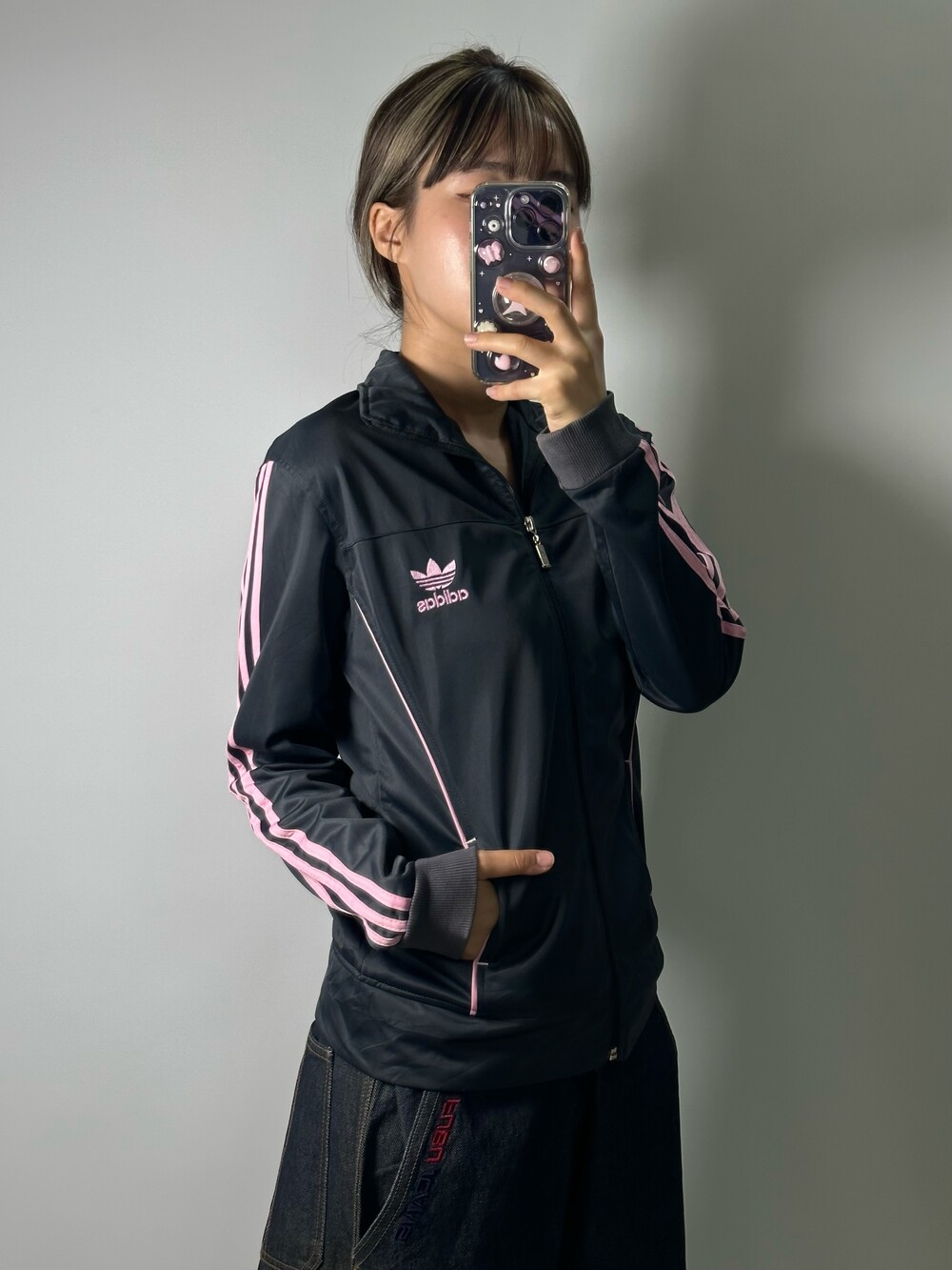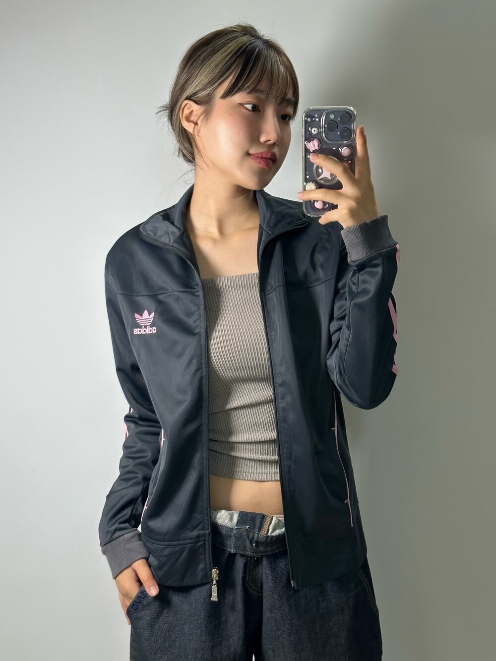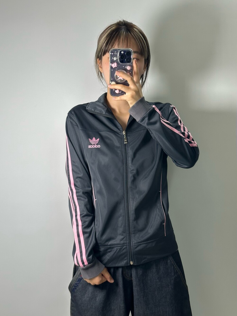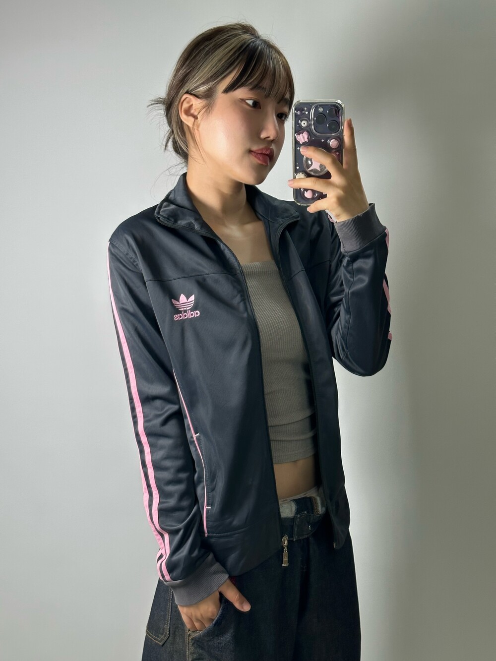 •대대장급 아디다스 져지에요! 핑크 그레이 조합은 정말 사랑이죠 ㅎㅎ 44-55사이즈 식구님께 추천드리고 상체에 딱 맞는 사이즈라 더 귀엽고 스포티하게 착용하기 좋은 제품이에요 :)