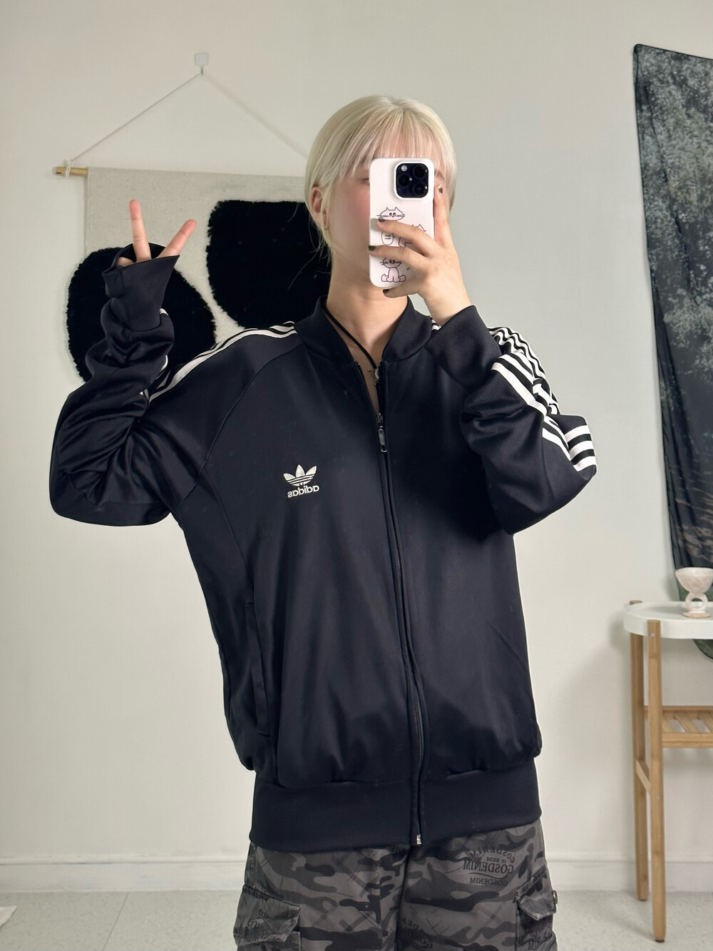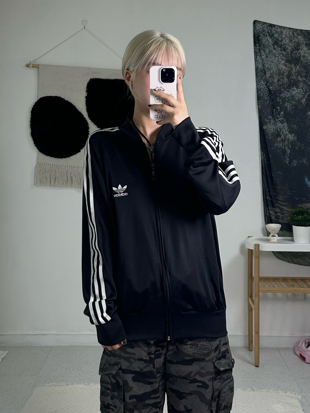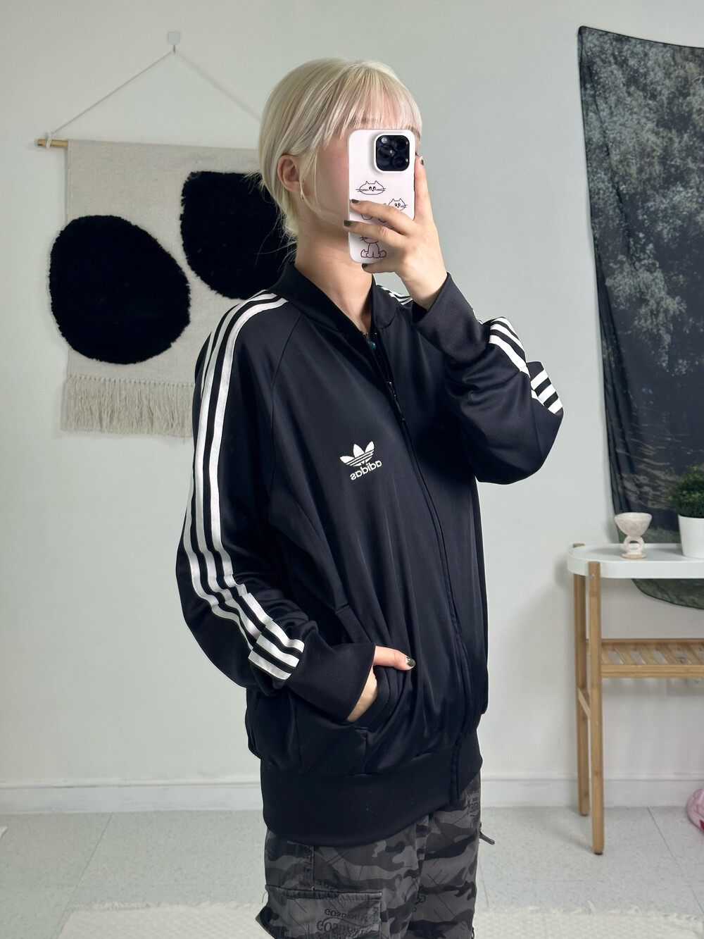•져지의 근본ㅎㅎ블랙앤화이트 조합 파이어버드 디자인 져지에요! 착용했을때 루즈핏으로 떨어지고 착용감이 굉장히 편안하답니다!! 휘뚤마뚤템 ㅎㅎ